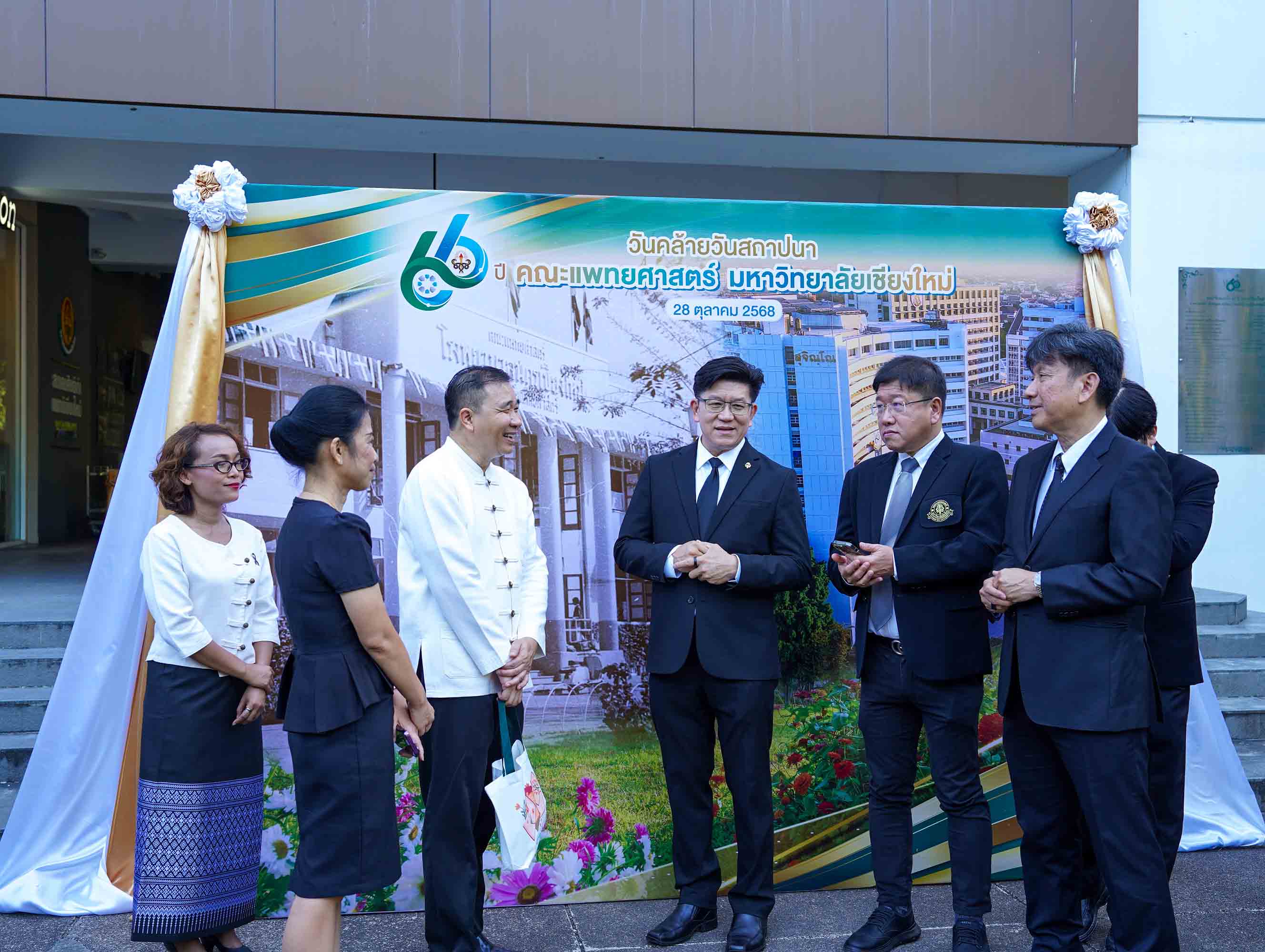 ศาสตราจารย์ ดร.สาคร พรประเสริฐ คณบดี ผู้ช่วยศาสตราจารย์ ดร.เพ็ญนภา คลังสินศิริกุล รองคณบดี ผู้ช่วยศาสตราจารย์ ดร.สุรัชณีย์ พัดงาม ผู้ช่วยคณบดี พร้อมด้วยบุคลากร คณะเทคนิคการแพทย์ มหาวิทยาลัยเชียงใหม่ ร่วมงานวันคล้ายวันสถาปนาคณะแพทยศาสตร์ มหาวิทยาลัยเชียงใหม่ ครบ 66 ปี โดยมี รองศาสตราจารย์ นายแพทย์ นเรนทร์ โชติรสนิรมิต ให้การต้อนรับ ณ อาคารเรียนรวม คณะแพทยศาสตร์ มหาวิทยาลัยเชียงใหม่ เมื่อวันอังคารที่ 28 ตุลาคม 2568