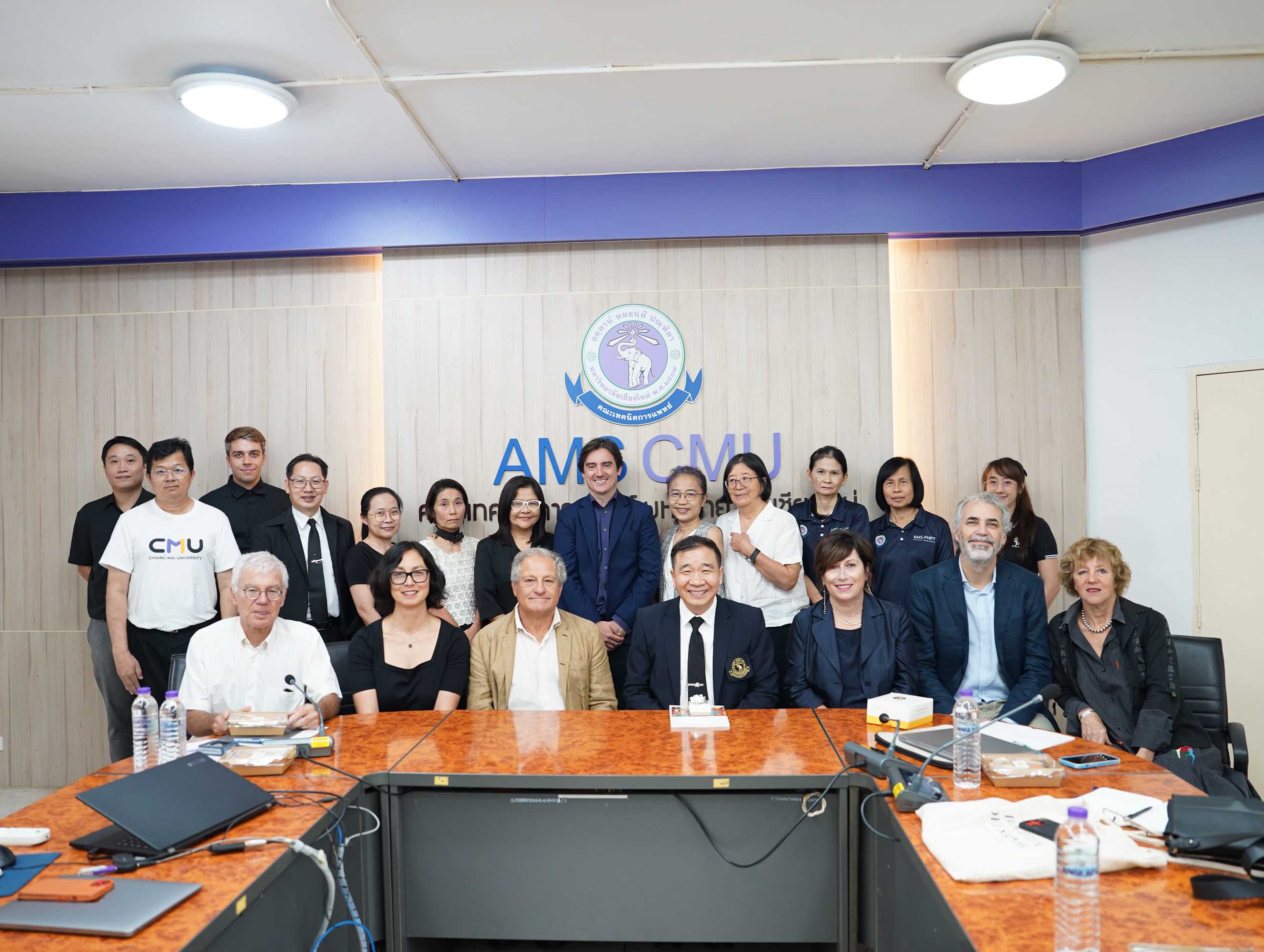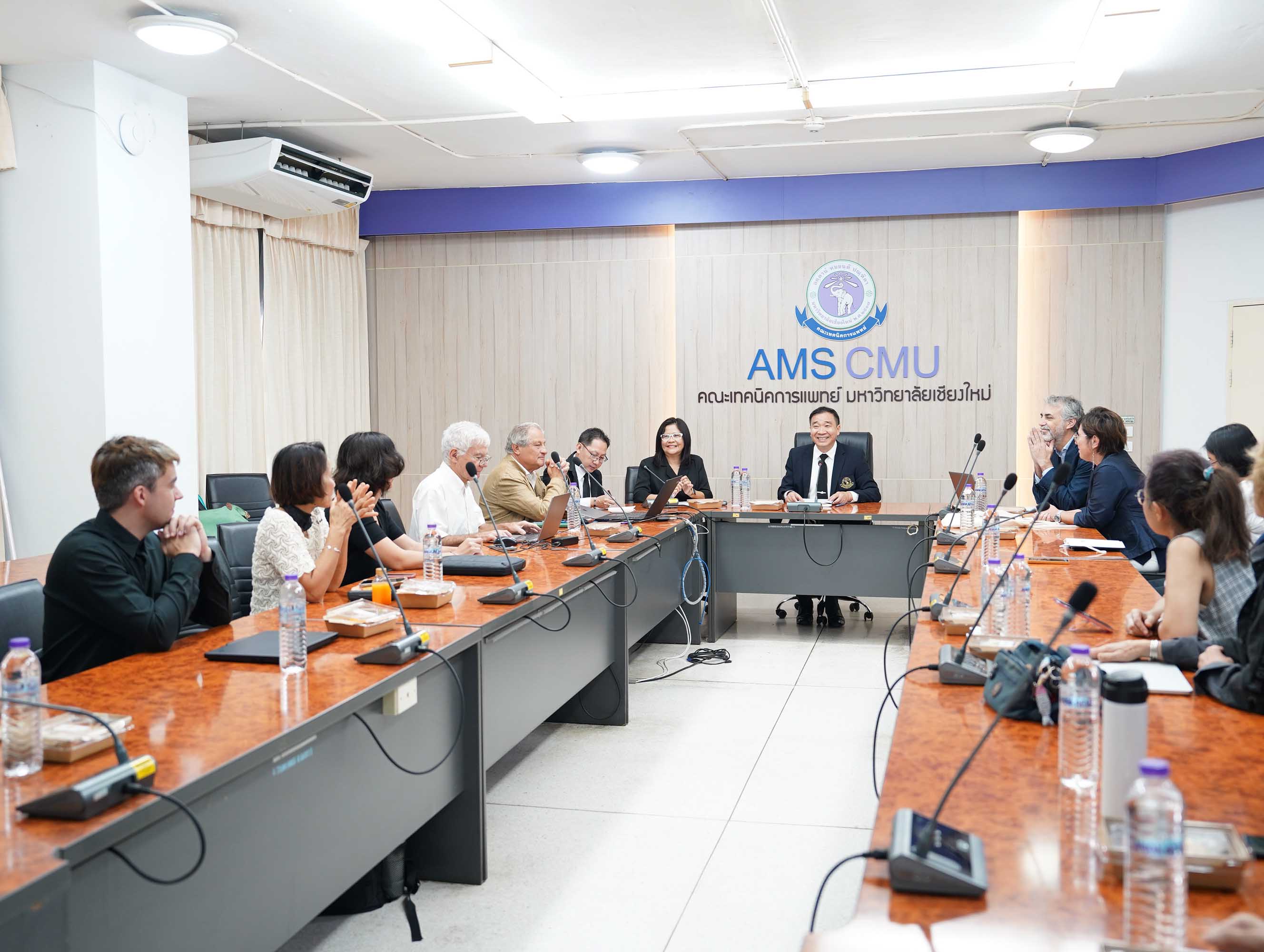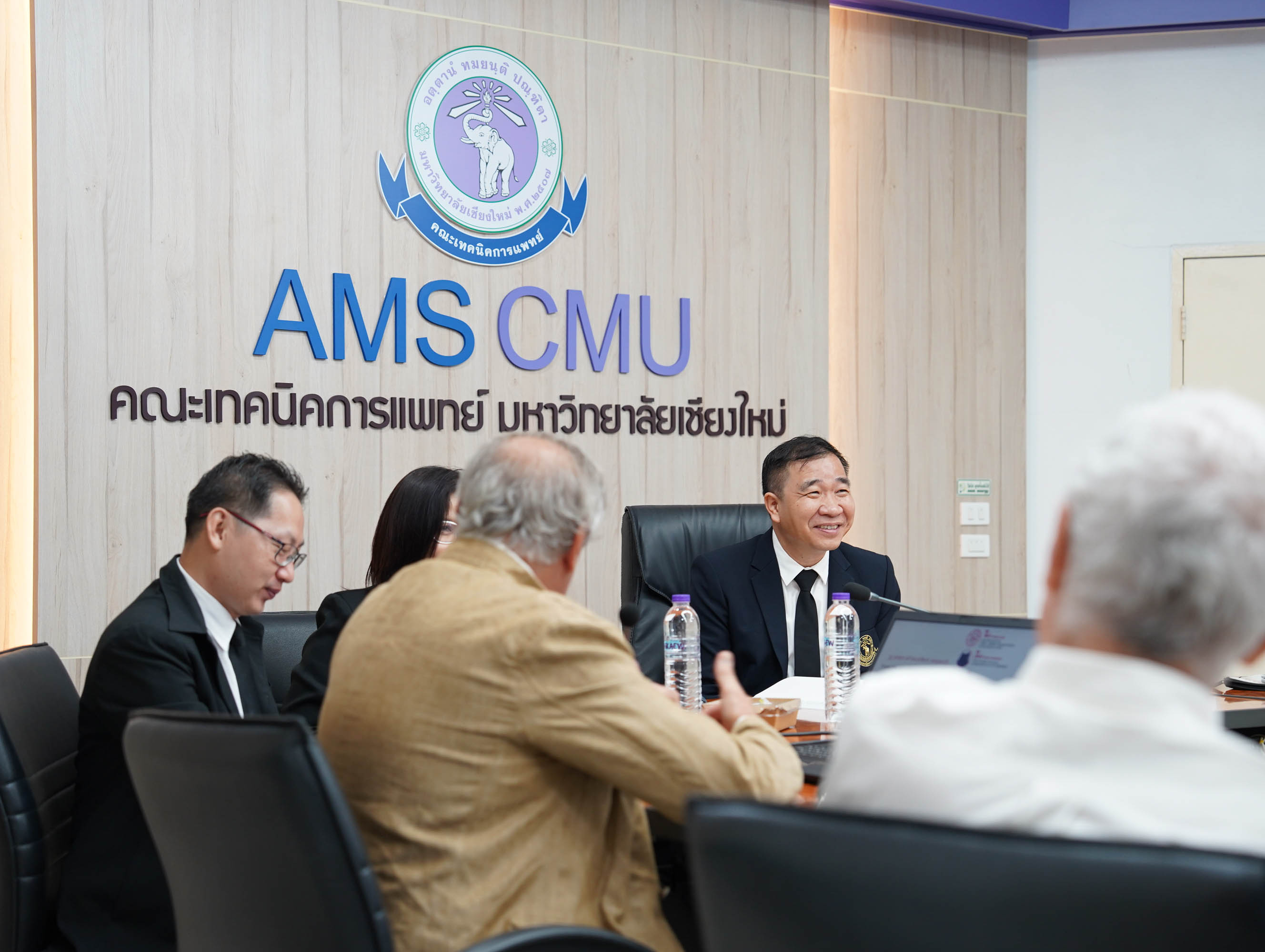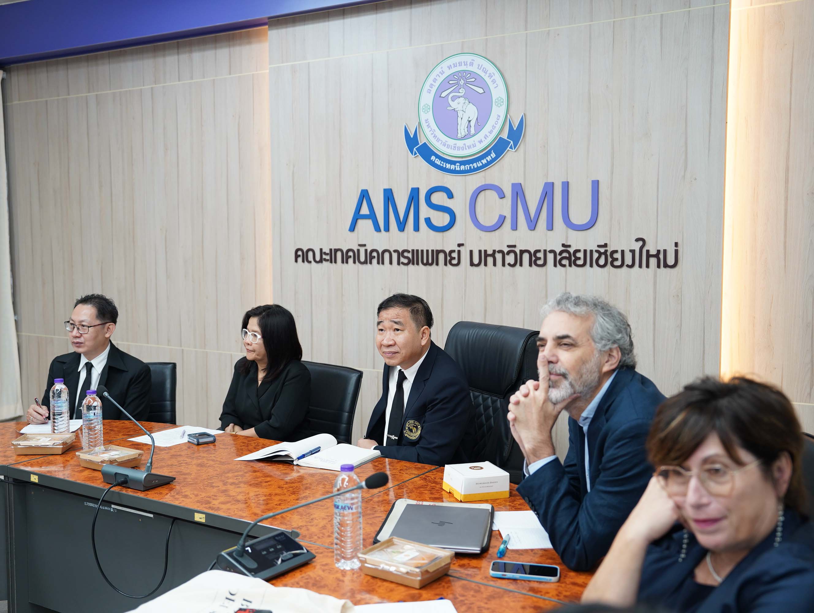คณะเทคนิคการแพทย์ มหาวิทยาลัยเชียงใหม่ นำโดย ศาสตราจารย์ ดร.สาคร พรประเสริฐ คณบดี รองศาสตราจารย์ ดร.อาทิตย์ พวงมะลิ รองคณบดี และ รองศาสตราจารย์ ดร.รัชดา เครสซี่ ผู้ช่วยคณบดี ให้การต้อนรับคณะผู้บริหารจาก Penta Foundation ประเทศอิตาลี ในโอกาสเดินทางมาเยี่ยมชมพื้นที่ดำเนินงานและติดตามความก้าวหน้าของ โครงการวิจัยภายใต้การดูแลของ AMS PHPT (Armed Forces Research Institute of Medical Sciences – Program for HIV Prevention and Treatment) ซึ่งดำเนินการร่วมกับคณะเทคนิคการแพทย์ มหาวิทยาลัยเชียงใหม่ ณ ห้องประชุม 1 ชั้น 1 อาคาร 2 คณะเทคนิคการแพทย์ มหาวิทยาลัยเชียงใหม่ เมื่อวันศุกร์ที่ 31 ตุลาคม 2568