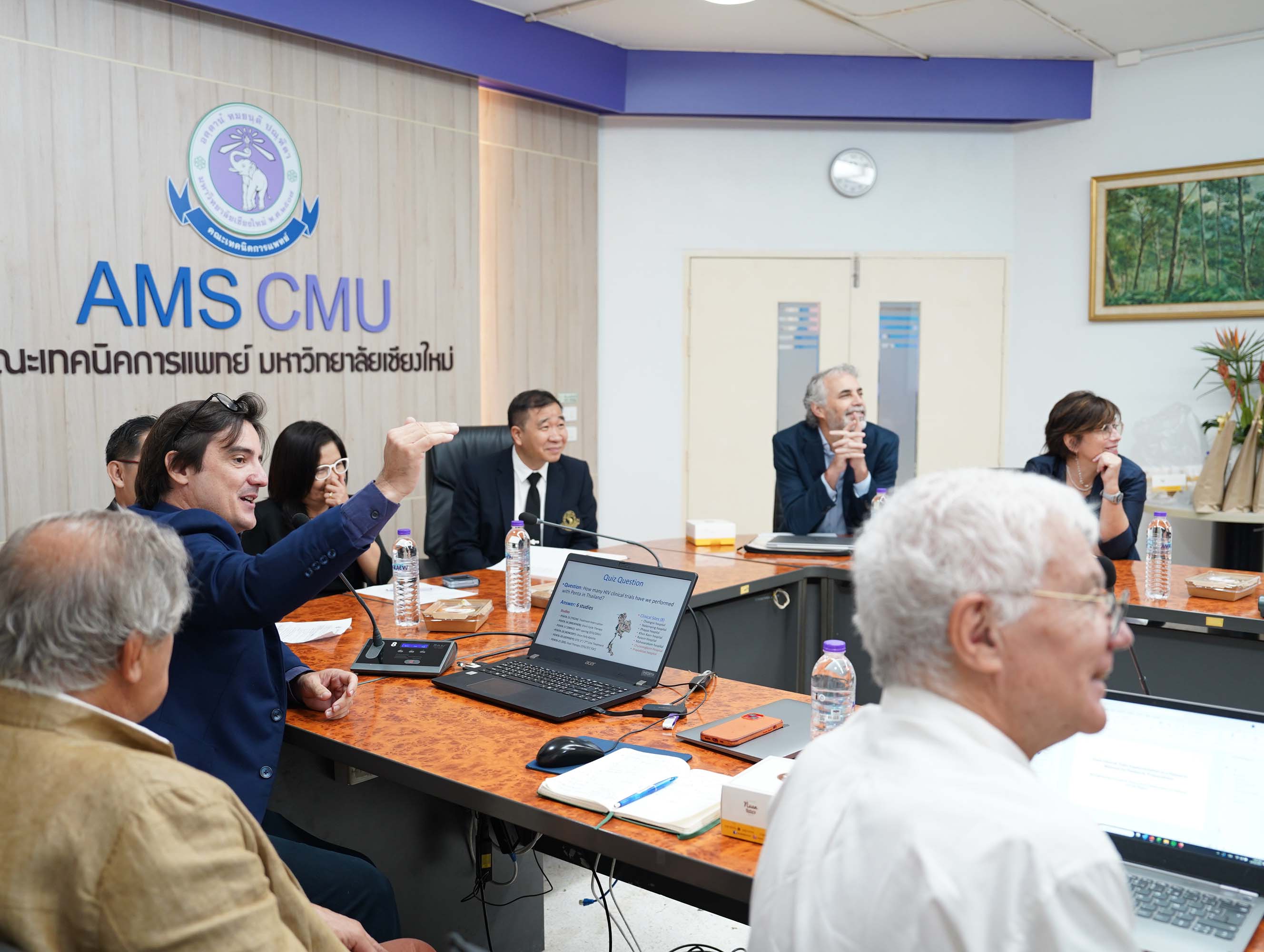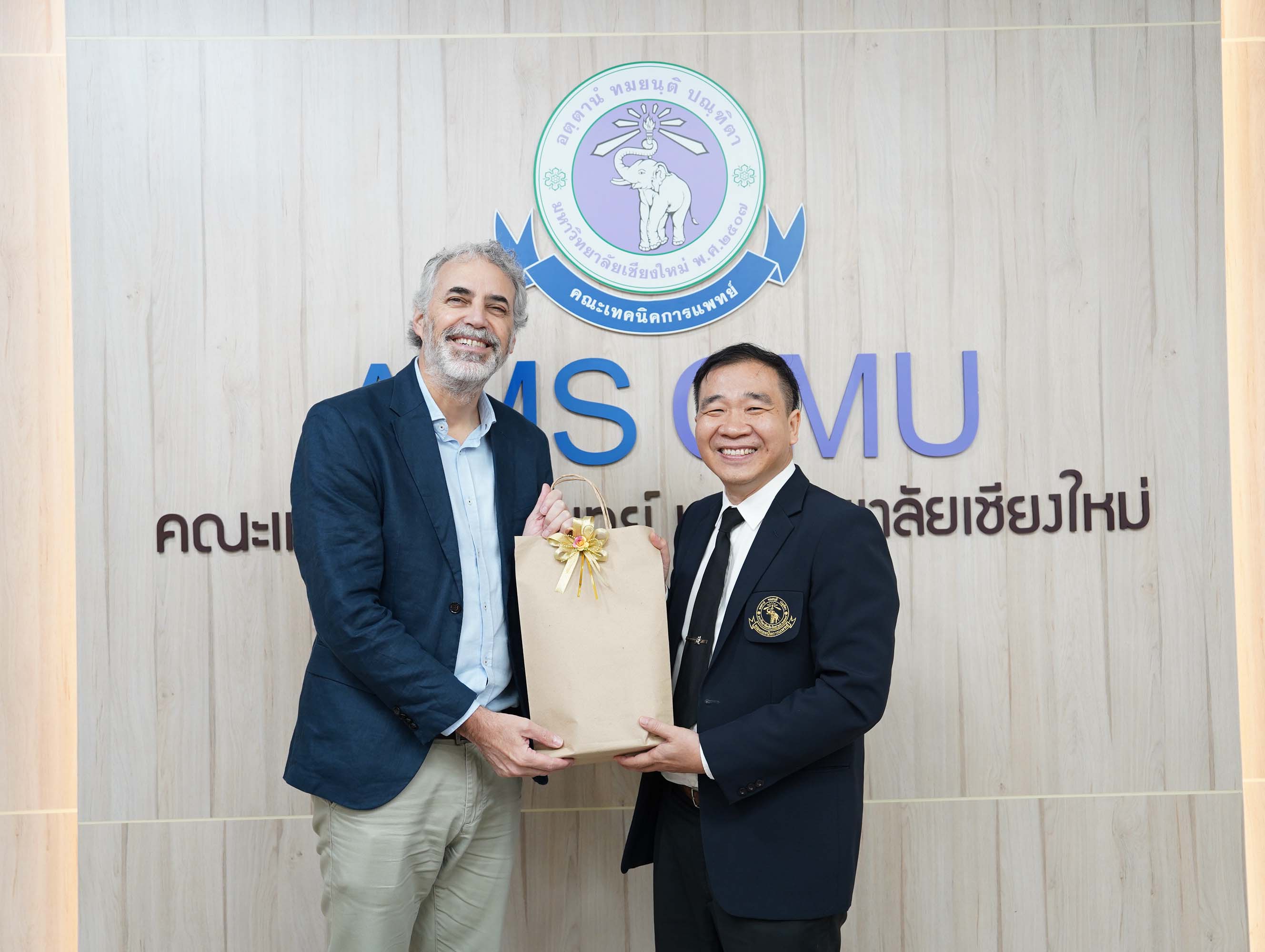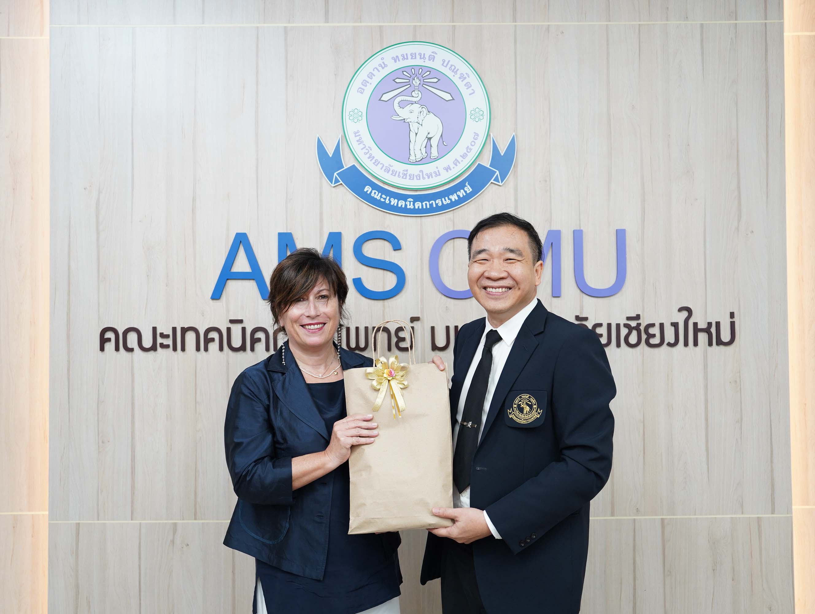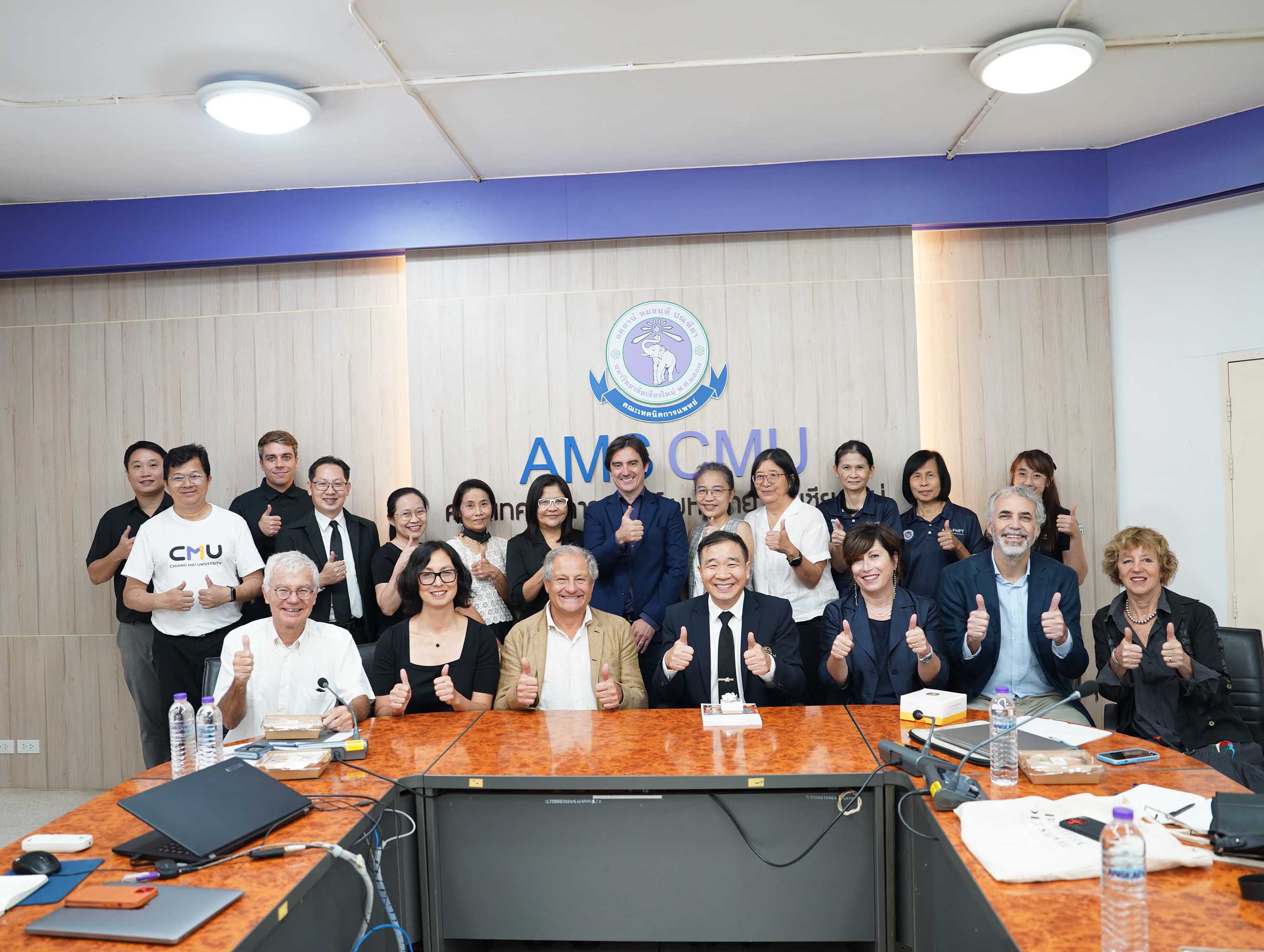 คณะเทคนิคการแพทย์ มหาวิทยาลัยเชียงใหม่ นำโดย ศาสตราจารย์ ดร.สาคร พรประเสริฐ คณบดี รองศาสตราจารย์ ดร.อาทิตย์ พวงมะลิ รองคณบดี และ รองศาสตราจารย์ ดร.รัชดา เครสซี่ ผู้ช่วยคณบดี ให้การต้อนรับคณะผู้บริหารจาก Penta Foundation ประเทศอิตาลี ในโอกาสเดินทางมาเยี่ยมชมพื้นที่ดำเนินงานและติดตามความก้าวหน้าของ โครงการวิจัยภายใต้การดูแลของ AMS PHPT (Armed Forces Research Institute of Medical Sciences – Program for HIV Prevention and Treatment) ซึ่งดำเนินการร่วมกับคณะเทคนิคการแพทย์ มหาวิทยาลัยเชียงใหม่ ณ ห้องประชุม 1 ชั้น 1 อาคาร 2 คณะเทคนิคการแพทย์ มหาวิทยาลัยเชียงใหม่ เมื่อวันศุกร์ที่ 31 ตุลาคม 2568