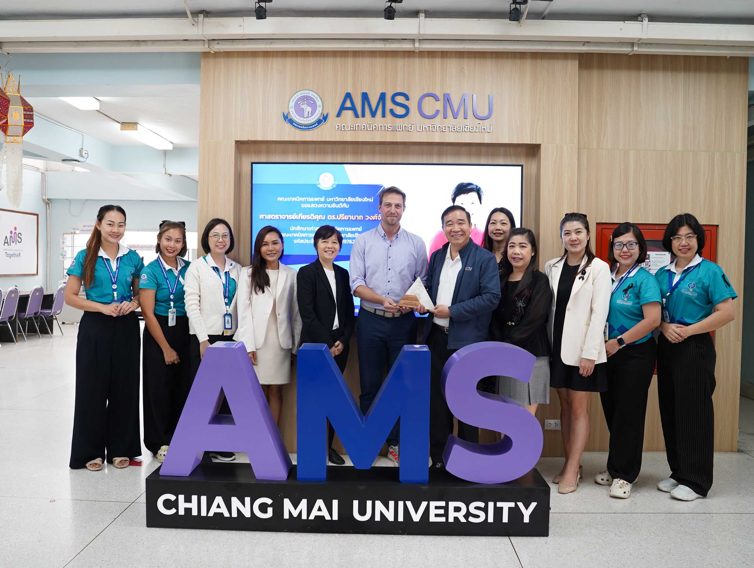 คณะเทคนิคการแพทย์ มหาวิทยาลัยเชียงใหม่ นำโดย ศาสตราจารย์ ดร.สาคร พรประเสริฐ คณบดี พร้อมด้วย หน่วยบริการจุลชีววิทยาคลินิกห้องปฏิบัติการตรวจพิเศษ ศูนย์สุขภาพพร้อม คณะเทคนิคการแพทย์ มหาวิทยาลัยเชียงใหม่ รับมอบโล่เกียรติคุณจาก บริษัท โรช ไดแอกโนสติกส์ (ประเทศไทย) จำกัด และสถาบันเทคโนโลยีแห่งเอเชีย (AIT) พร้อมกันนี้ ได้นำเสนอผลลัพธ์ของโครงการ Blue Lab ซึ่งสะท้อนถึงความมุ่งมั่นของห้องปฏิบัติการทางการแพทย์ ในการเป็นแบบอย่างด้านการจัดการสิ่งแวดล้อมอย่างยั่งยืน ณ ห้องผู้บริหาร ชั้น 1 อาคาร 2 คณะเทคนิคการแพทย์ มหาวิทายาลัยเชียงใหม่ เมื่อวันอังคารที่ 25 พฤศจิกายน 2568