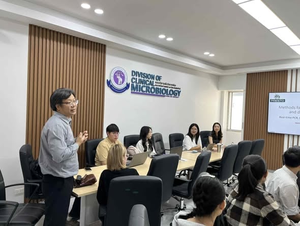 แขนงวิชาจุลชีววิทยาคลินิก ภาควิชาเทคนิคการแพทย์ คณะเทคนิคการแพทย์ มหาวิทยาลัยเชียงใหม่ ร่วมกับโครงการ International Joint Laboratory-PRESTO จัดอบรมเชิงปฏิบัติการในหัวข้อ “Pathogen detection and diversity analysis – Introduction to bio-informatics” โดยมี ผู้ช่วยศาสตราจารย์ ดร.กัญญา ปรีชาศุทธิ์ หัวหน้าแขนงวิชาจุลชีววิทยาคลินิก เป็นประธาน ในการนี้ได้รับเกียรติจากวิทยากรผู้เชี่ยวชาญ Dr. Vanina Guernier (IEES, IRD) และ Mr. Mathis Arnal (PRESTO - MIVEGEC, IRD) ร่วมถ่ายทอดองค์ความรู้ โดยมุ่งเน้นการเพิ่มพูนทักษะด้านการตรวจวินิจฉัยระดับโมเลกุล (Molecular Diagnostics) และพื้นฐานทางชีวสารสนเทศ (Bioinformatics) ให้แก่นักวิจัยและผู้สนใจจากทั้งในประเทศไทย สปป.ลาว และ สหรัฐอเมริกา ขอขอบพระคุณการสนับสนุนจาก French National Research Institute for Sustainable Development (IRD) ณ อาคาร 3 ชั้น 6 คณะเทคนิคการแพทย์ มหาวิทยาลัยเชียงใหม่ ระหว่างวันที่ 24 - 28 พฤศจิกายน 2568