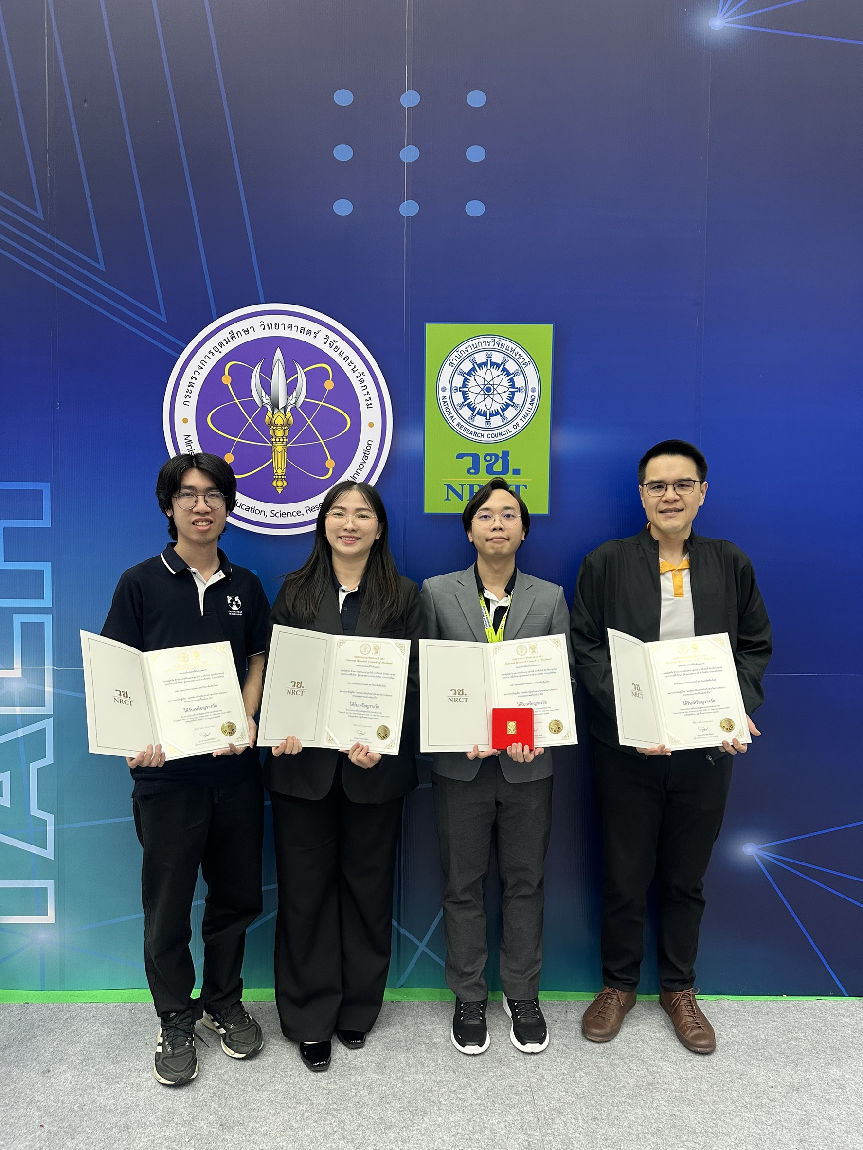 นายณัฐดนัย ฮิราตะ นายหิรัณยกุล มูลรังษี และนางจีรนันท์ อัครชัยจารุภรณ์ นักศึกษาปริญญาโท หลักสูตรวิทยาศาสตรมหาบัณฑิต สาขาวิชาวิทยาศาสตร์รังสีการแพทย์ (หลักสูตรนานาชาติ) คณะเทคนิคการแพทย์ มหาวิทยาลัยเชียงใหม่ คว้ารางวัลเหรียญทอง ระดับอุดมศึกษา สาขาสุขภาพและการแพทย์ จากการนำเสนอผลงานวิจัย เรื่อง ซอฟต์แวร์อัจฉริยะสําหรับช่วยวิเคราะห์ผลการควบคุมคุณภาพเครื่องเอ็มอาร์ไอ ในการแข่งขัน I-NEW GEN AWARD 2026 โดยมี ผู้ช่วยศาสตราจารย์ ดร.กิตติชัย วรรธนะจิตติกุล อาจารย์ประจำภาควิชารังสีเทคนิค เป็นอาจารย์ที่ปรึกษา การแข่งขันครั้งนี้จัดขึ้นระหว่างวันที่ 5 – 9 มกราคม 2569 ณ ศูนย์นิทรรศการและการประชุมไบเทค บางนา กรุงเทพฯ