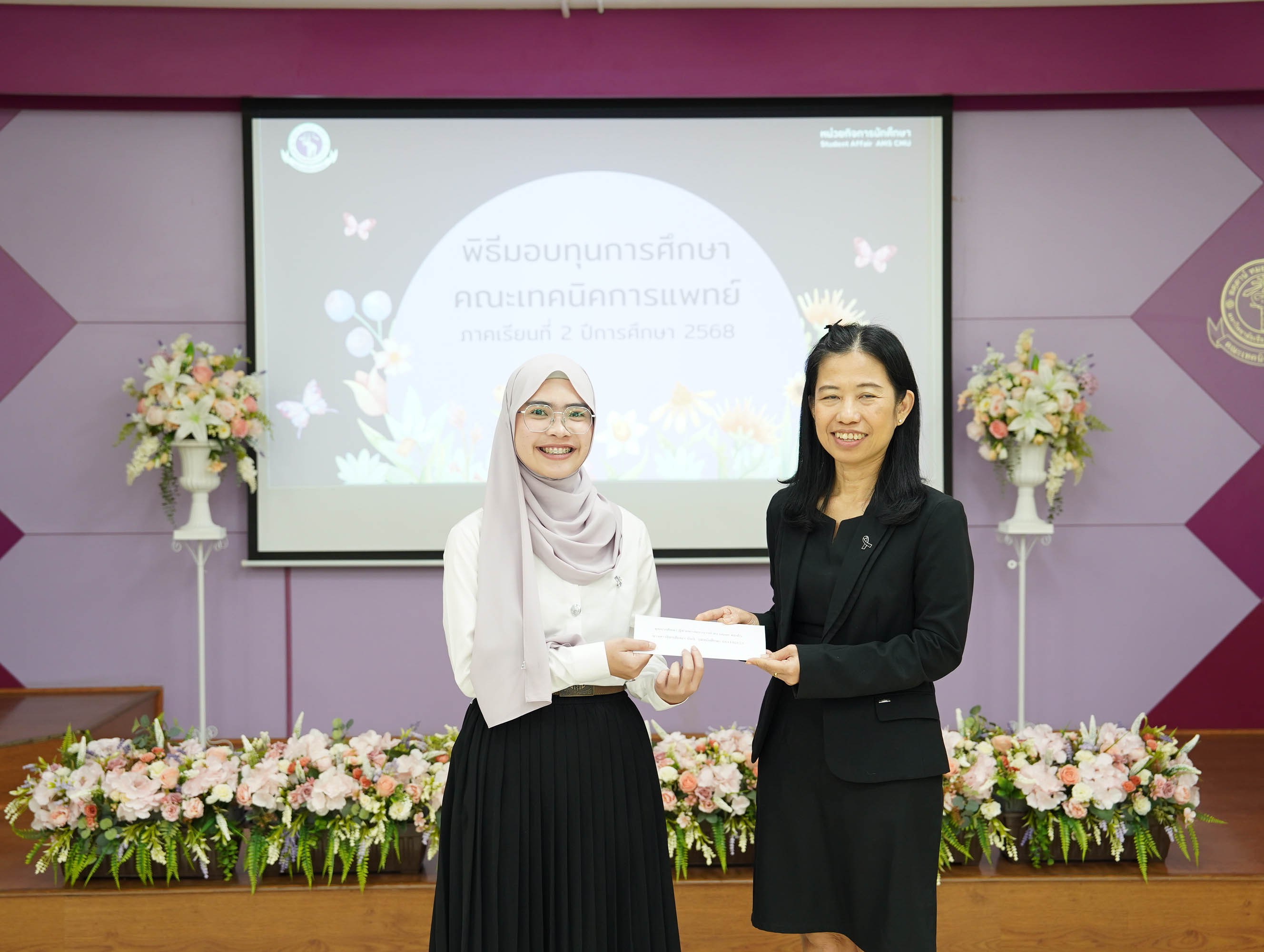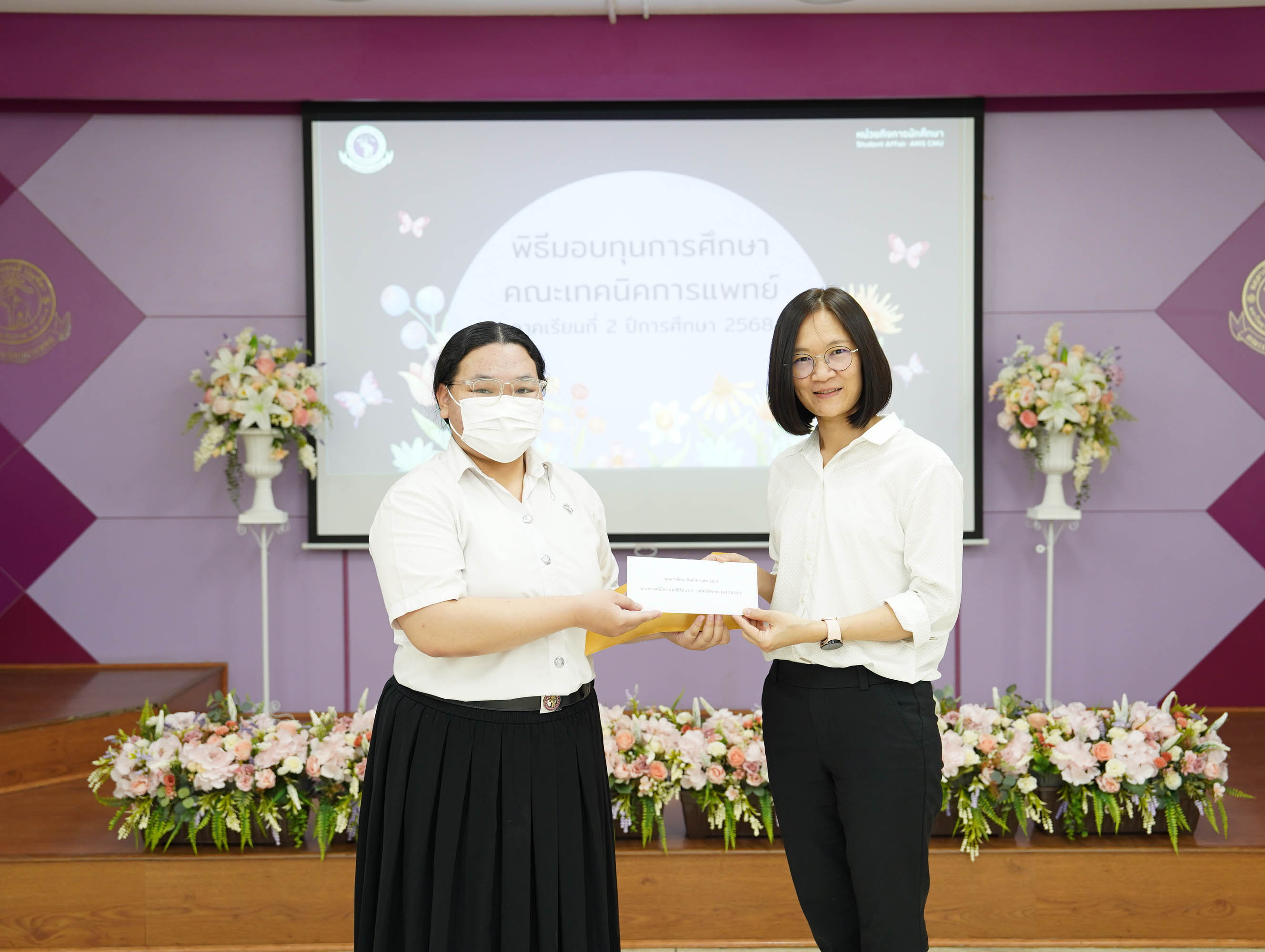 ศาสตราจารย์ ดร.สาคร พรประเสริฐ คณบดีคณะเทคนิคการแพทย์ มหาวิทยาลัยเชียงใหม่ เป็นประธานในพิธี มอบทุนการศึกษา ประจำภาคการศึกษาที่ 2 ปีการศึกษา 2568 โดยคณะกรรมการพิจารณาคัดเลือกนักศึกษารับทุนการศึกษา จำนวนทั้งสิ้น 24 ราย ซึ่งทางคณะเทคนิคการแพทย์ ได้จัดสรรทุนการศึกษา จากแหล่งงบประมาณเงินบริจาคจากผู้มีจิตศรัทธา มูลนิธิ บริษัท และศิษย์เก่า จำนวนทั้งสิ้น 535,000 บาท ณ ห้องบรรยายศิษย์เก่าสัมพันธ์ อาคาร 2 คณะเทคนิคการแพทย์ มหาวิทยาลัยเชียงใหม่ เมื่อวันพฤหัสบดีที่ 8 มกราคม 2569