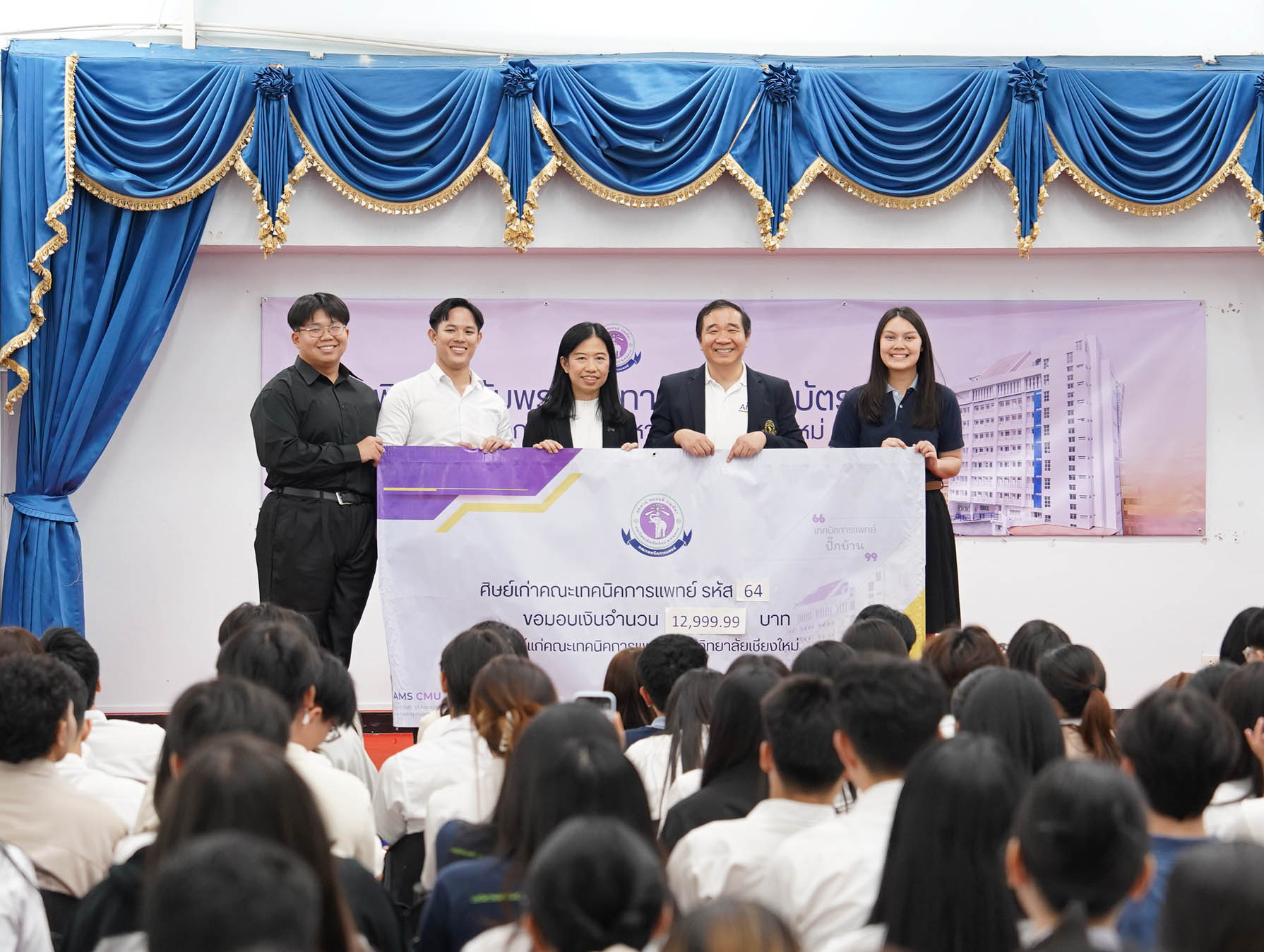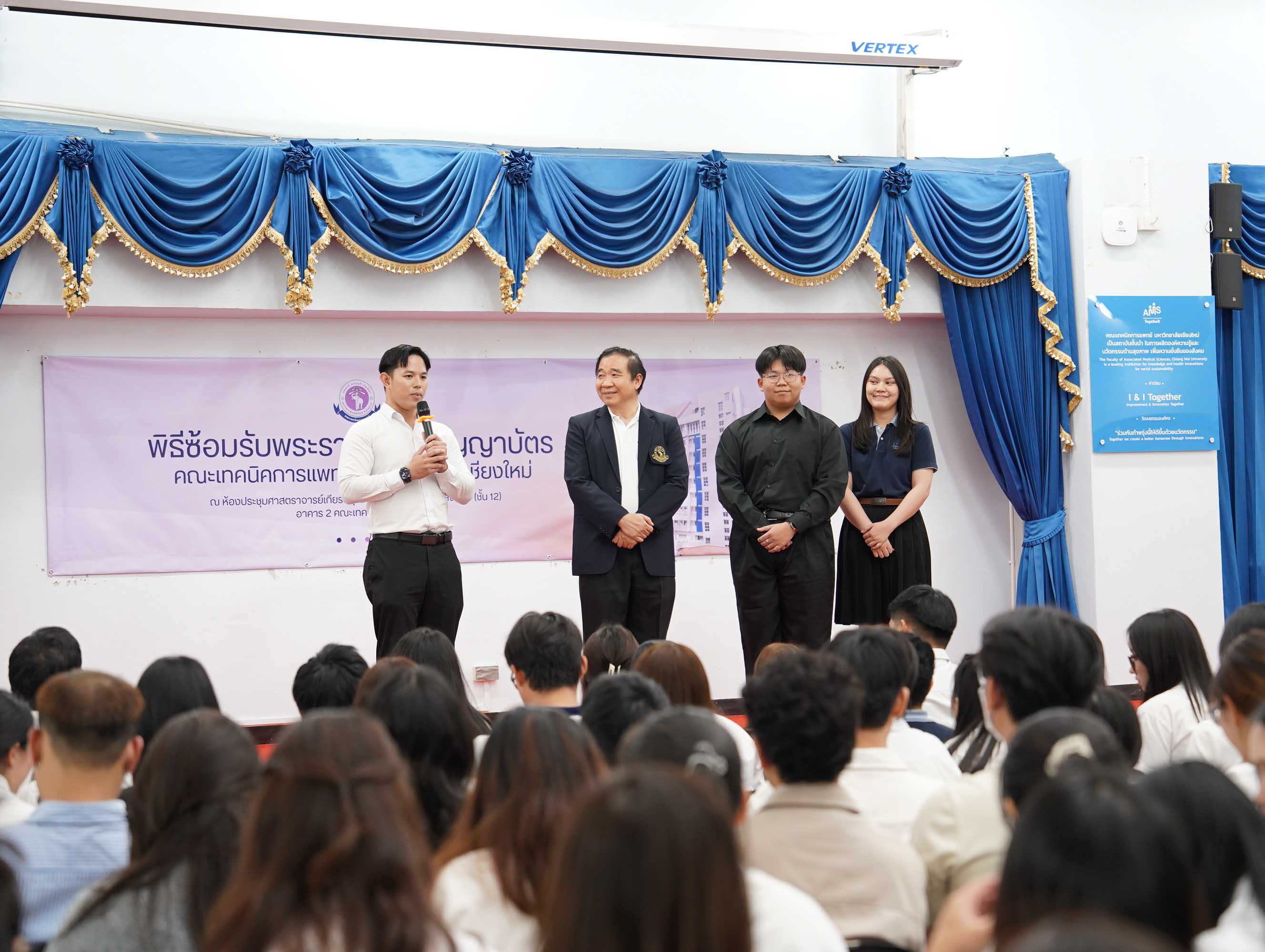 คณะเทคนิคการแพทย์ มหาวิทยาลัยเชียงใหม่ จัดงานพิธีฝึกซ้อมบัณฑิตเข้ารับพระราชทานปริญญาบัตร และงานรับขวัญบัณฑิตคณะเทคนิคการแพทย์ รุ่นที่ 60 โดยมี ศาสตราจารย์ ดร.สาคร พรประเสริฐ คณบดี ผู้ช่วยศาสตราจารย์ ดร.เพ็ญนภา คลังสิรศิริกุล รองคณบดี และผู้ช่วยศาสตราจารย์ ดร.วาสนา ศิริรังษี นายกสมาคมศิษย์เก่าคณะเทคนิคการแพทย์ กล่าวต้อนรับและแสดงความยินดีกับบัณฑิตใหม่ ทั้งนี้ ผู้แทนบัณฑิต กล่าวขอบคุณและมอบเงินบริจาคเพื่อนำไปพัฒนาคณะ จำนวน 12,999.99 บาท ณ ห้องประชุม ศ.เกียรติคุณ นพ.ชัยโรจน์ แสงอุดม อาคาร 2 คณะเทคนิคการแพทย์ มหาวิทยาลัยเชียงใหม่ เมื่อวันที่ 18 มกราคม 2569