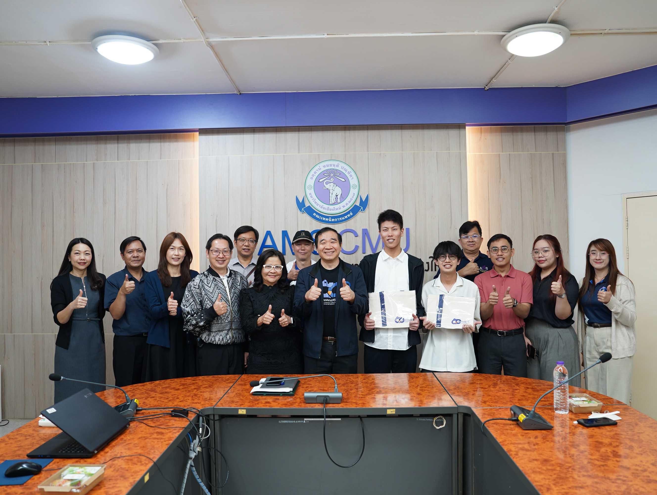 Professor Dr. Sakorn Pornprasert, Dean of the Faculty of Associated Medical Sciences (AMS), Chiang Mai University, along with Associate Professor Dr. Aatit Paungmali, Associate Dean, Associate Professor Dr. Ratchada Cressey, Assistant Dean, and Associate Professor Dr. Sawitree Chiampanichayakul, Head of the Department of Medical Technology, together with faculty members, extended a warm welcome to Mr. Keisuke Shimamoto and Mr. Ryoya Murakami.