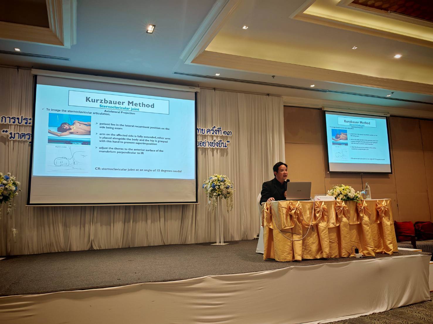 ผู้ช่วยศาสตราจารย์ ดร.สมพงษ์ ศรีบุรี บรรยายในหัวข้อ Special X-ray Views in Orthopedics พร้อมร่วมเสวนาในประเด็น “บทบาทกรรมการวิชาชีพและเส้นทางสู่สภาวิชาชีพอย่างไร้รอยต่อ” เพื่อแลกเปลี่ยนมุมมองด้านวิชาชีพและการพัฒนาระบบกำกับมาตรฐานทางรังสีการแพทย์