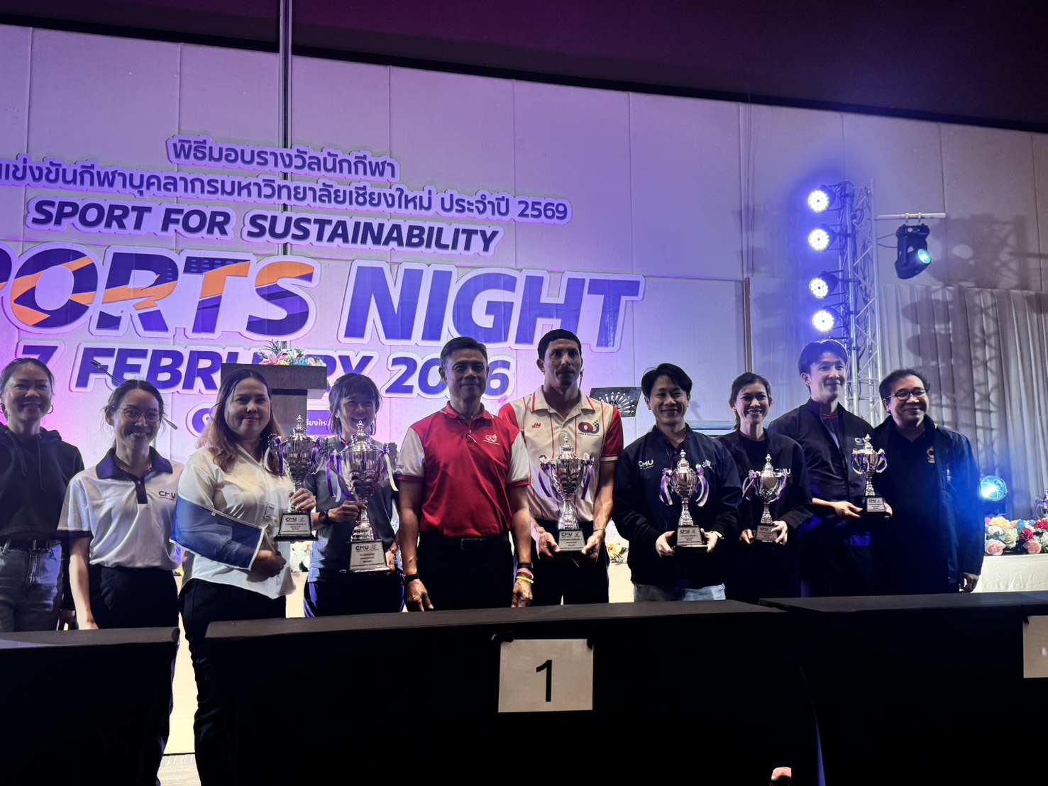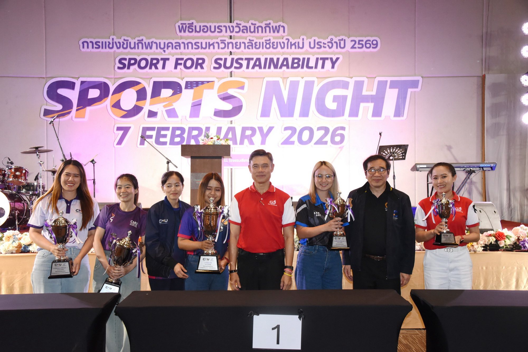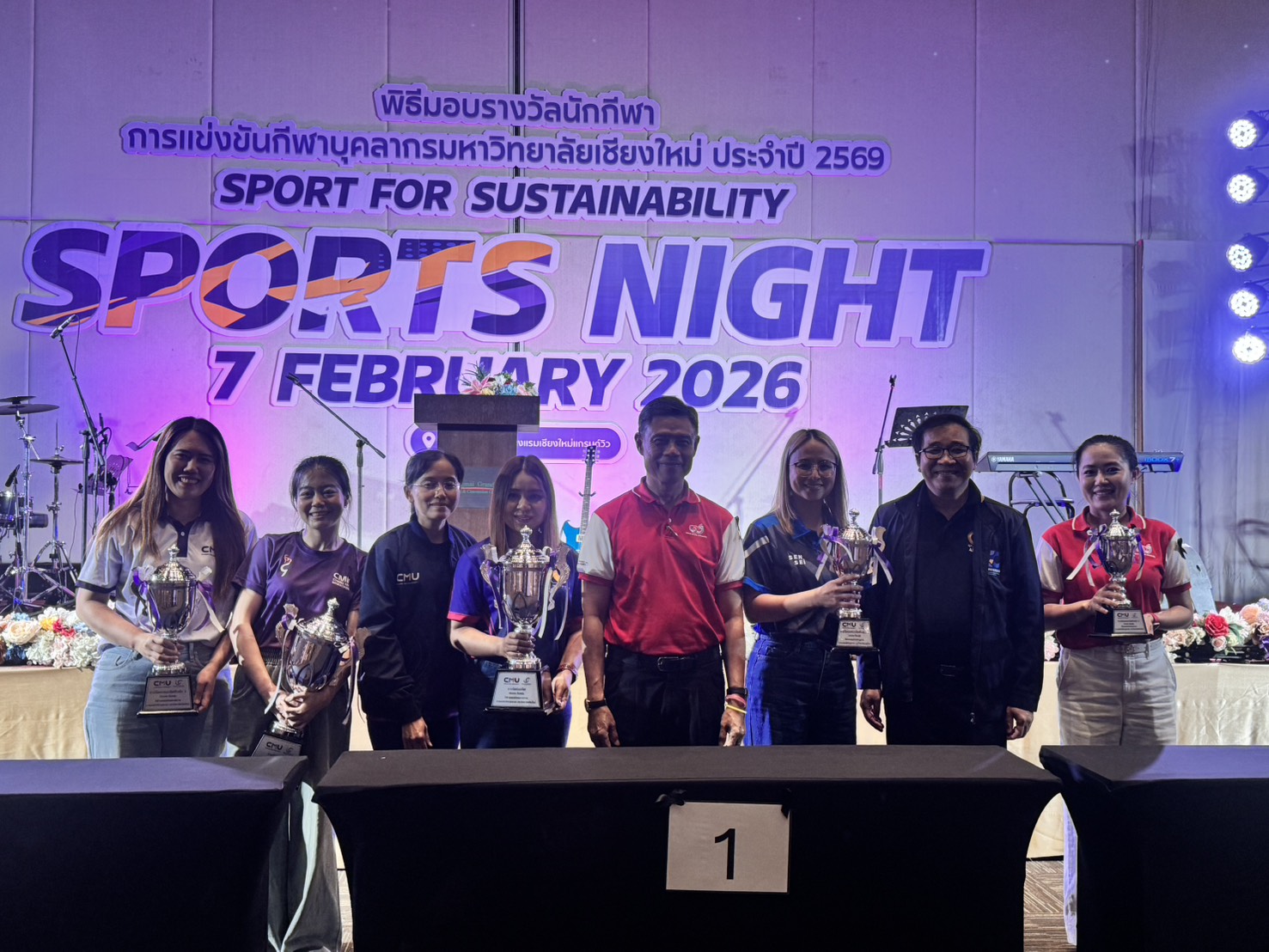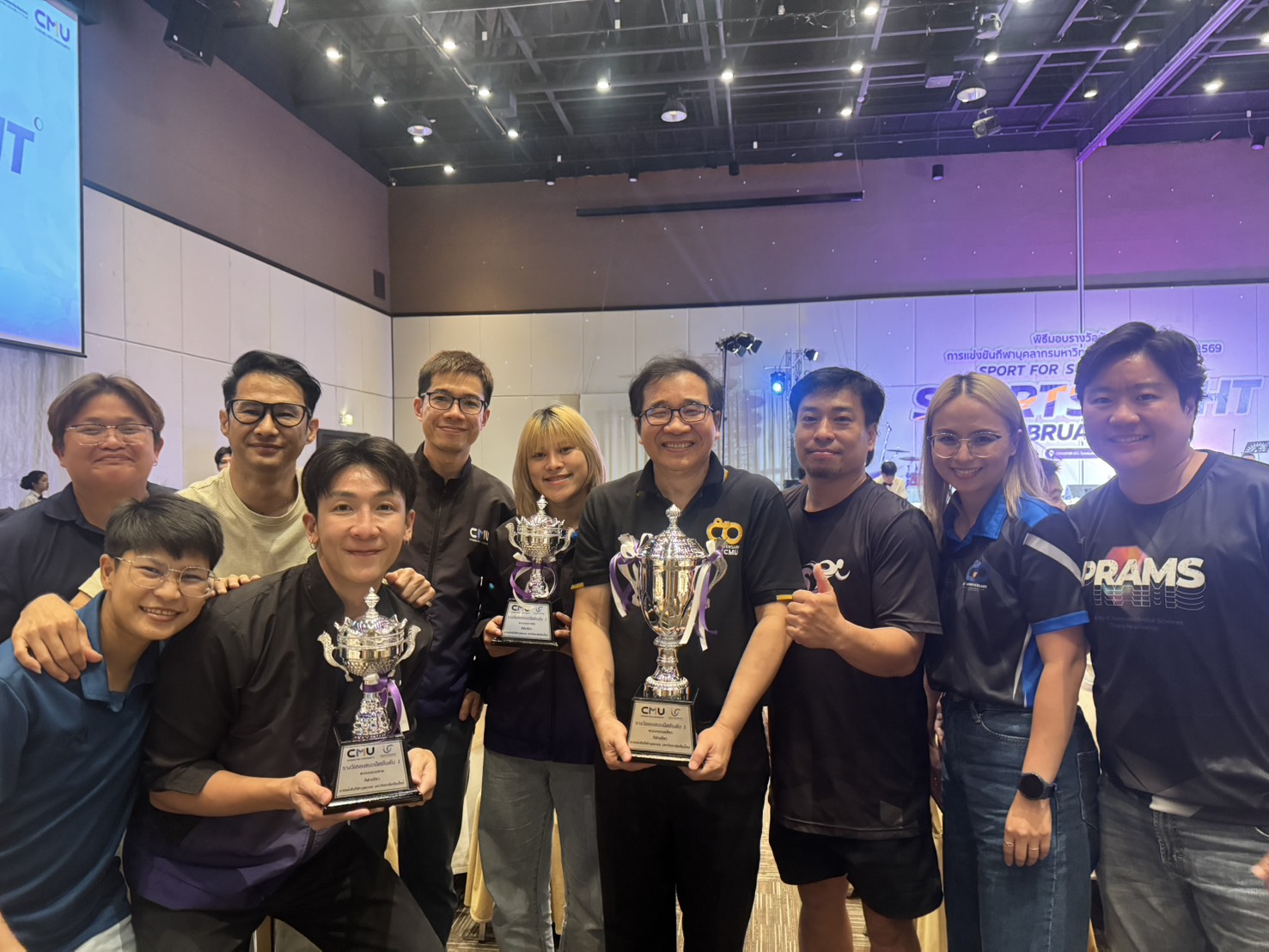 คณะเทคนิคการแพทย์ มหาวิทยาลัยเชียงใหม่ นำโดย ศาสตราจารย์ (เชี่ยวชาญพิเศษ) ดร.สาคร พรประเสริฐ คณบดี ผู้ช่วยศาสตราจารย์ ดร.สุรัชณีย์ พัดงาม ผู้ช่วยคณบดี พร้อมด้วย นักกีฬาบุคลากรคณะเทคนิคการแพทย์ มหาวิทยาลัยเชียงใหม่ ร่วมรับรางวัลในการแข่งขันกีฬาบุคลากรมหาวิทยาลัยเชียงใหม่ ประจำปี 2569 (CMU Sports Night 2026) โดยมี ศาสตราจารย์ ดร.นายแพทย์ พงษ์รักษ์ ศรีบัณฑิตมงคล อธิการบดีมหาวิทยาลัยเชียงใหม่ เป็นประธานในพิธี ณ ห้องประชุมศูนย์ประชุมนานาชาติ โรงแรมเชียงใหม่แกรนด์วิว วันเสาร์ที่ 7 กุมภาพันธ์ 2569