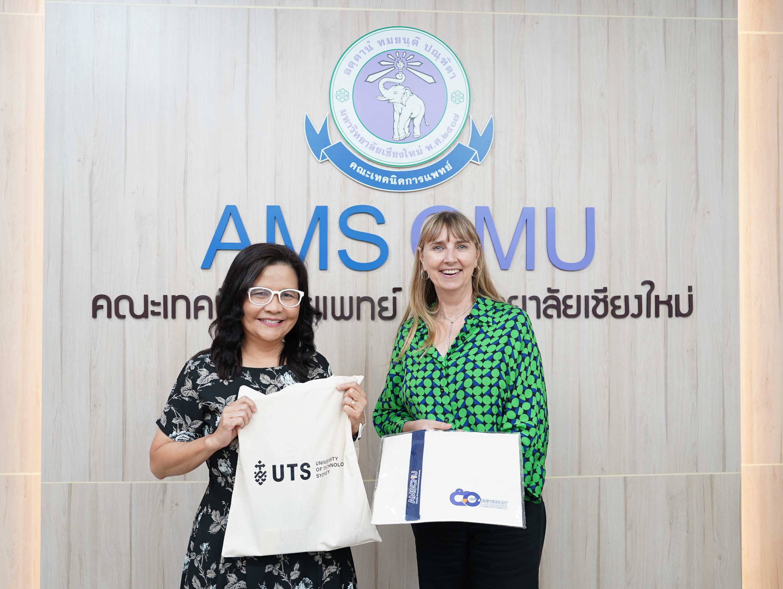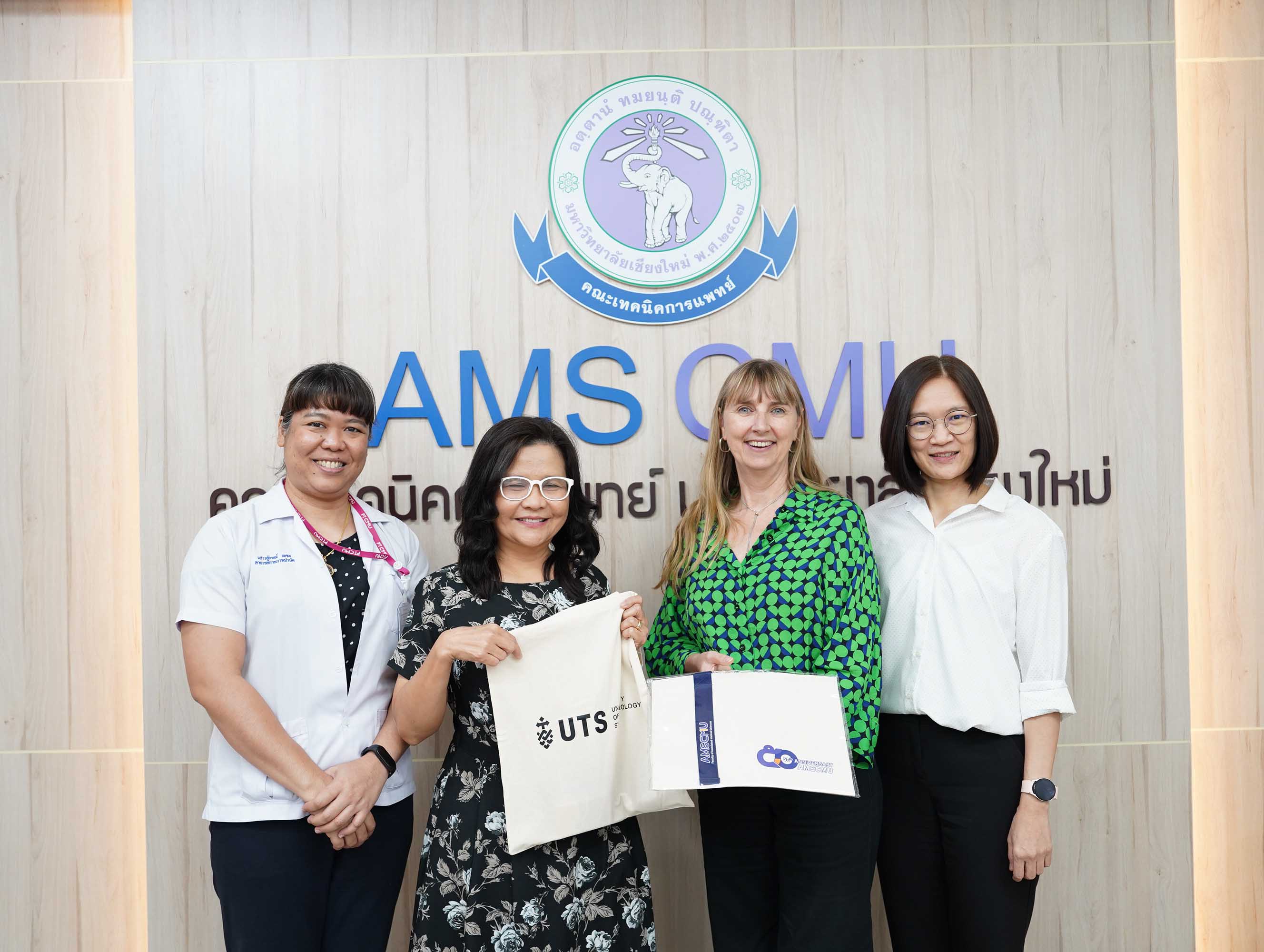 รองศาสตราจารย์ ดร.รัชดา เครสซี่ ผู้ช่วยคณบดี พร้อมด้วย รองศาสตราจารย์ ดร.สุรีพร อุทัยคุปต์ หัวหน้าภาควิชากายภาพบำบัด และ ผู้ช่วยศาสตราจารย์ ดร.เสาวลักษณ์ เดชะ อาจารย์ประจำภาควิชากายภาพบำบัด คณะเทคนิคการแพทย์ มหาวิทยาลัยเชียงใหม่ ให้การต้อนรับ Professor Angela Dawson, Associate Dean Research จาก Faculty of Health, University of Technology Sydney ประเทศออสเตรเลีย ในโอกาสเยี่ยมเยือนคณะฯ เพื่อแสวงหาความร่วมมือในการสร้างหลักสูตร Double Degree Program ร่วมกัน ณ ห้องประชุมชั้น 1 อาคาร 2 คณะเทคนิคการแพทย์ มหาวิทยาลัยเชียงใหม่ เมื่อวันจันทร์ที่ 2 มีนาคม 2569