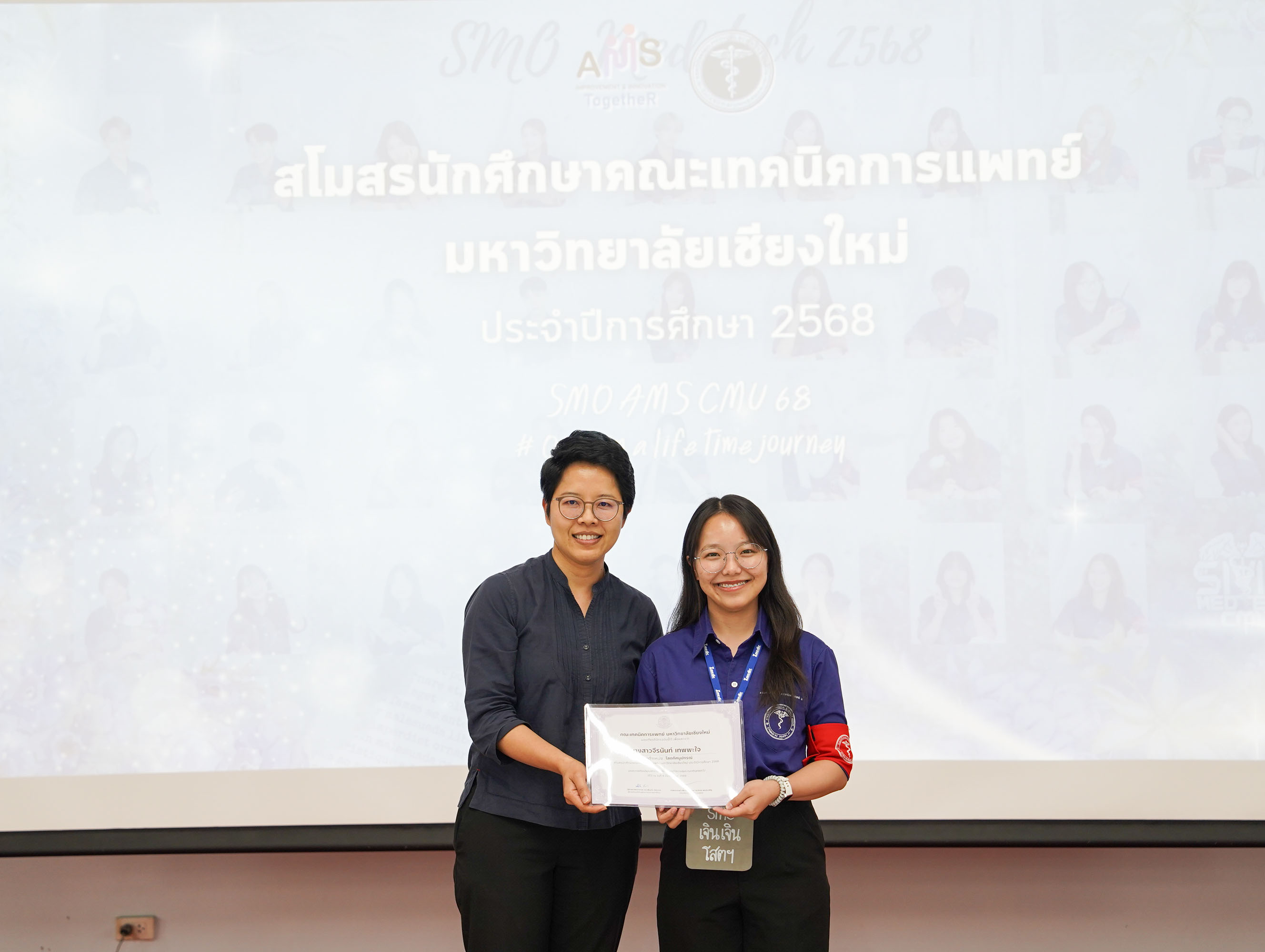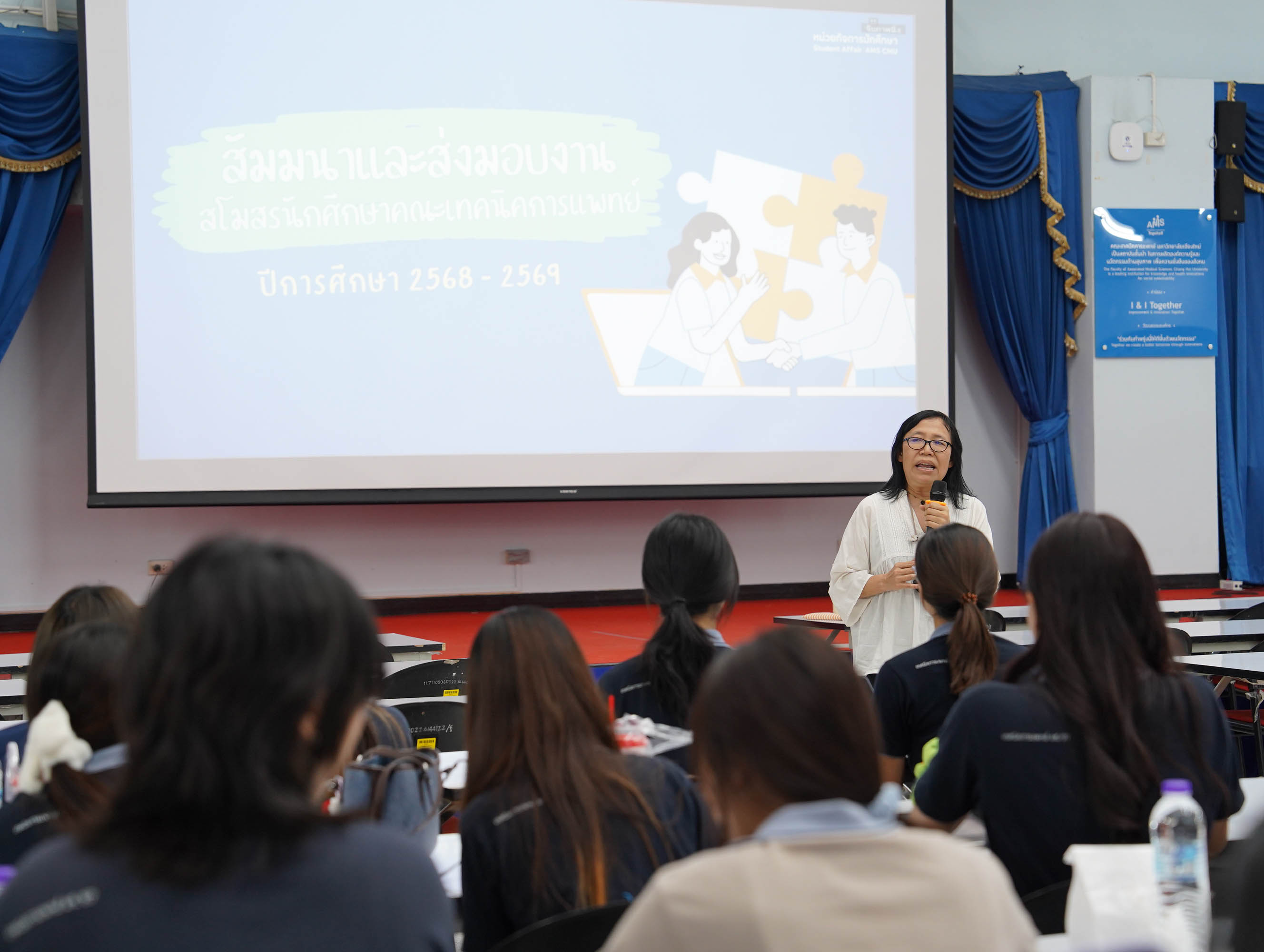 หน่วยกิจการนักศึกษา คณะเทคนิคการแพทย์ มหาวิทยาลัยเชียงใหม่ จัดโครงการ สัมมนาและส่งมอบงานสโมสรนักศึกษาคณะเทคนิคการแพทย์ ปีการศึกษา 2568 - 2569 โดยมี ผู้ช่วยศาสตราจารย์ ดร.เพื่อนใจ รัตตากร ผู้ช่วยคณบดี เป็นประธาน เพื่อแลกเปลี่ยนประสบการณ์ และวางแผนแนวทางการดำเนินงานจากคณะกรรมการสโมสรนักศึกษาชุดเก่า สู่คณะกรรมการสโมสรนักศึกษาชุดใหม่ เป็นการเตรียมความพร้อมในการดำเนินงานของคณะกรรมการสโมสรนักศึกษาชุดใหม่ให้เข้าใจในบทบาทหน้าที่ ปัญหา แนวทางแก้ไข ตลอดจนการวางแผนงานขั้นตอนการจัดกิจกรรม พร้อมยกระดับประสิทธิภาพการบริหารงานสโมสรนักศึกษาให้สามารถขับเคลื่อนกิจกรรมต่าง ๆ ได้อย่างมีคุณภาพและได้ผลลัพธ์ที่ดี