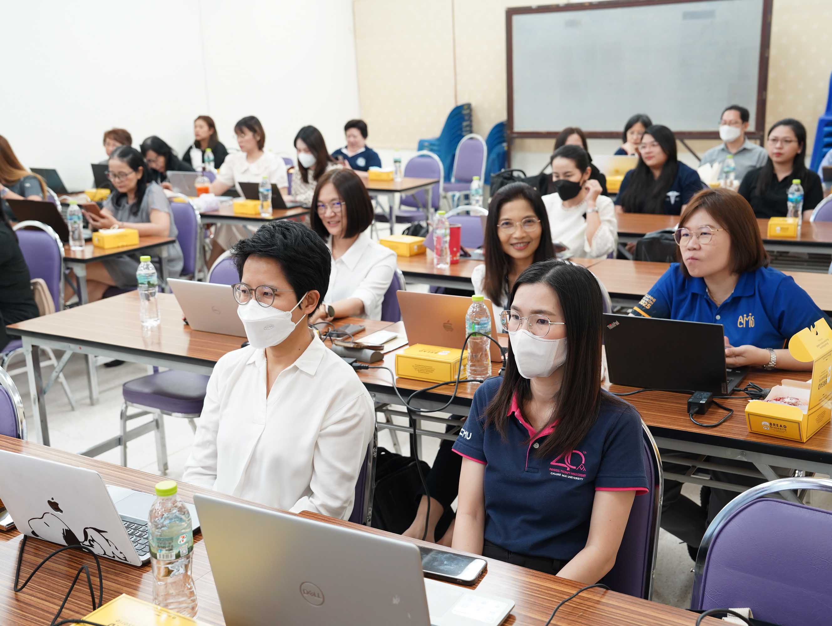 ในโอกาสเดียวกันนี้ ยังมีเสวนาและแลกเปลี่ยนประสบการณ์: Process and Mentoring System for Timely Graduation โดย ศาสตราจารย์ (เชี่ยวชาญพิเศษ) ดร.สาคร พรประเสริฐ คณบดี คณะเทคนิคการแพทย์ มหาวิทยาลัยเชียงใหม่ ผู้ช่วยศาสตราจารย์ ดร.ณฐุปกรณ์ เดชสุภา หัวหน้าภาควิชารังสีเทคนิค รองศาสตราจารย์ ดร.สุรีพร อุทัยคุปต์ หัวหน้าภาควิชากายภาพบำบัด รองศาสตราจารย์ ดร.สุจิตรพร เลอศิลป์ อาจารย์ประจำภาควิชากิจกรรมบำบัด เพื่อแลกเปลี่ยนเรียนรู้ถึงบทบาทของอาจารย์ที่ปรึกษาปริญญานิพนธ์ในการดูแล ให้คำปรึกษาและติดตามการทำวิทยานิพนธ์ของนักศึกษาเพื่อให้สำเร็จการศึกษาตามระยะเวลาของหลักสูตร