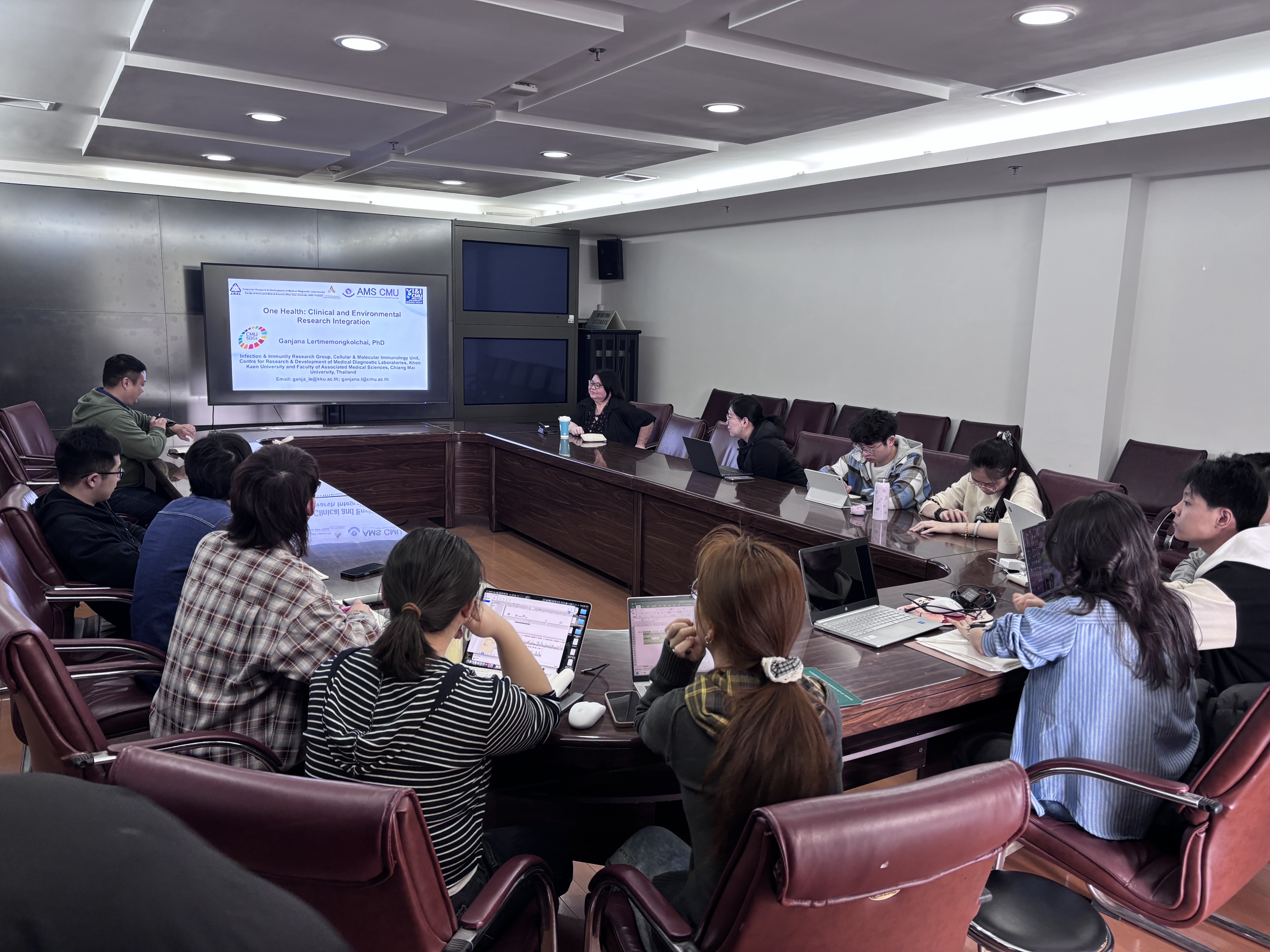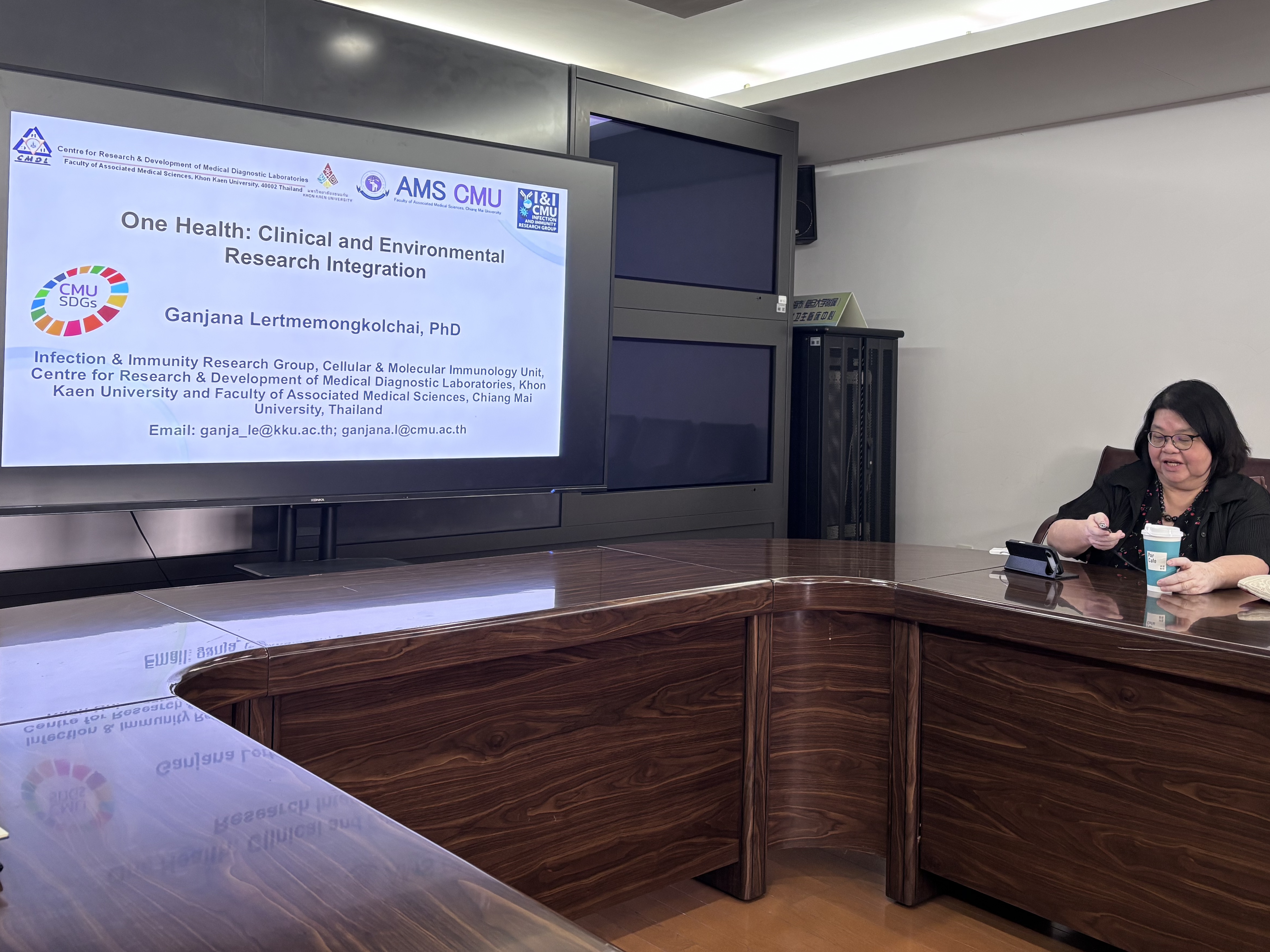 กลุ่มวิจัยโรคติดเชื้อและภูมิคุ้มกัน คณะเทคนิคการแพทย์ มหาวิทยาลัยเชียงใหม่ นําโดย ดร.กาญจนา เลิศมีมงคลชัย เข้าเยี่ยมติดตามการสร้างความร่วมมือและประชุมแลกเปลี่ยนทางวิชาการ พร้อมนำเสนอภาพรวมผลวิจัยของกลุ่ม ภายใต้แนวคิดสุขภาพหนึ่งเดียว (One Health) รวมถึงความคืบหน้า การแลกเปลี่ยนนักวิจัยและนักศึกษา ตลอดจนการจัดทําโครงการเสนอแหล่งทุนสนับสนุนกิจกรรม ร่วมกับสถาบันวิจัยระดับแนวหน้าทั้ง 3 แห่ง ณ สาธารณรัฐประชาชนจีน ได้แก่
