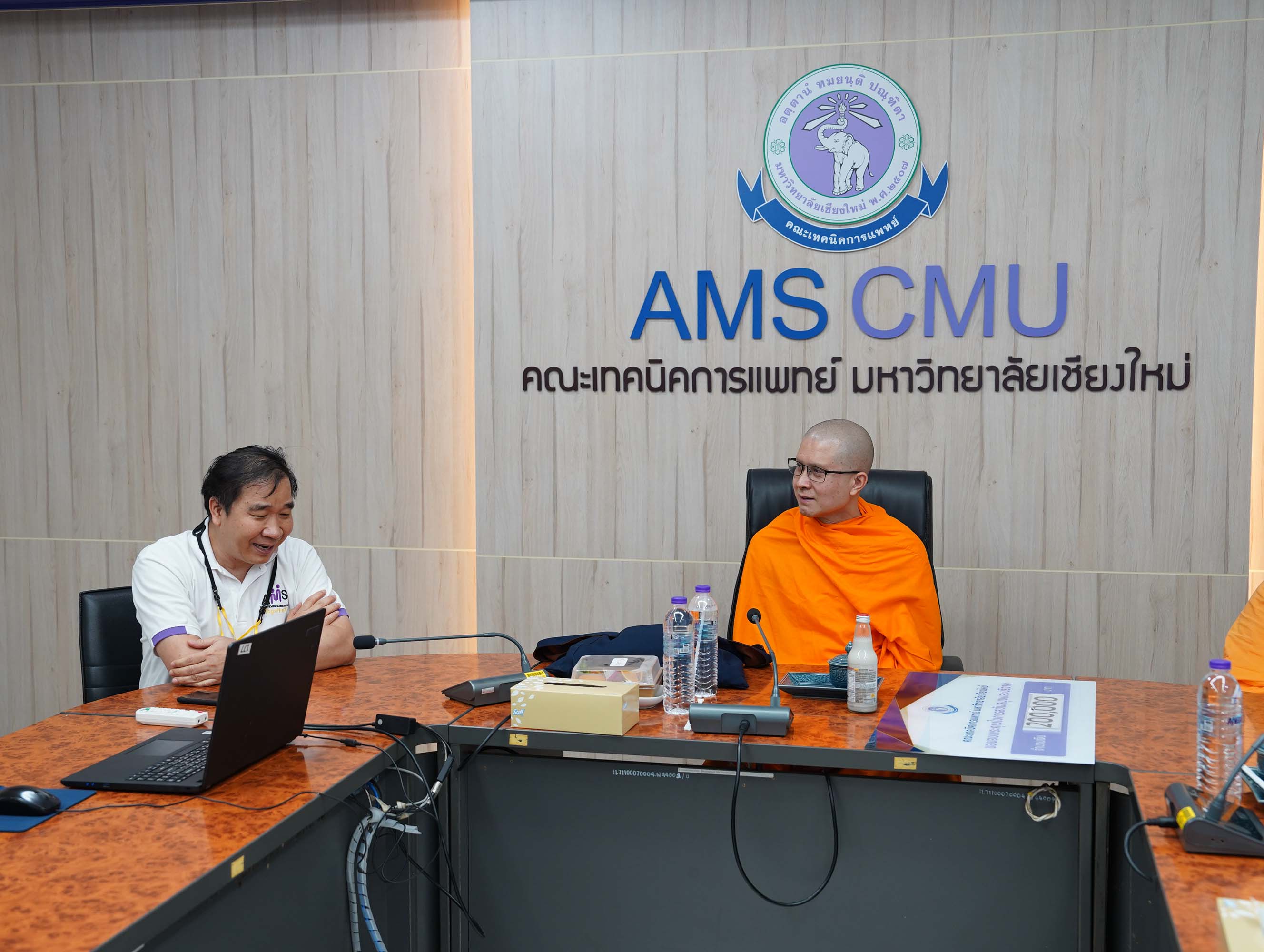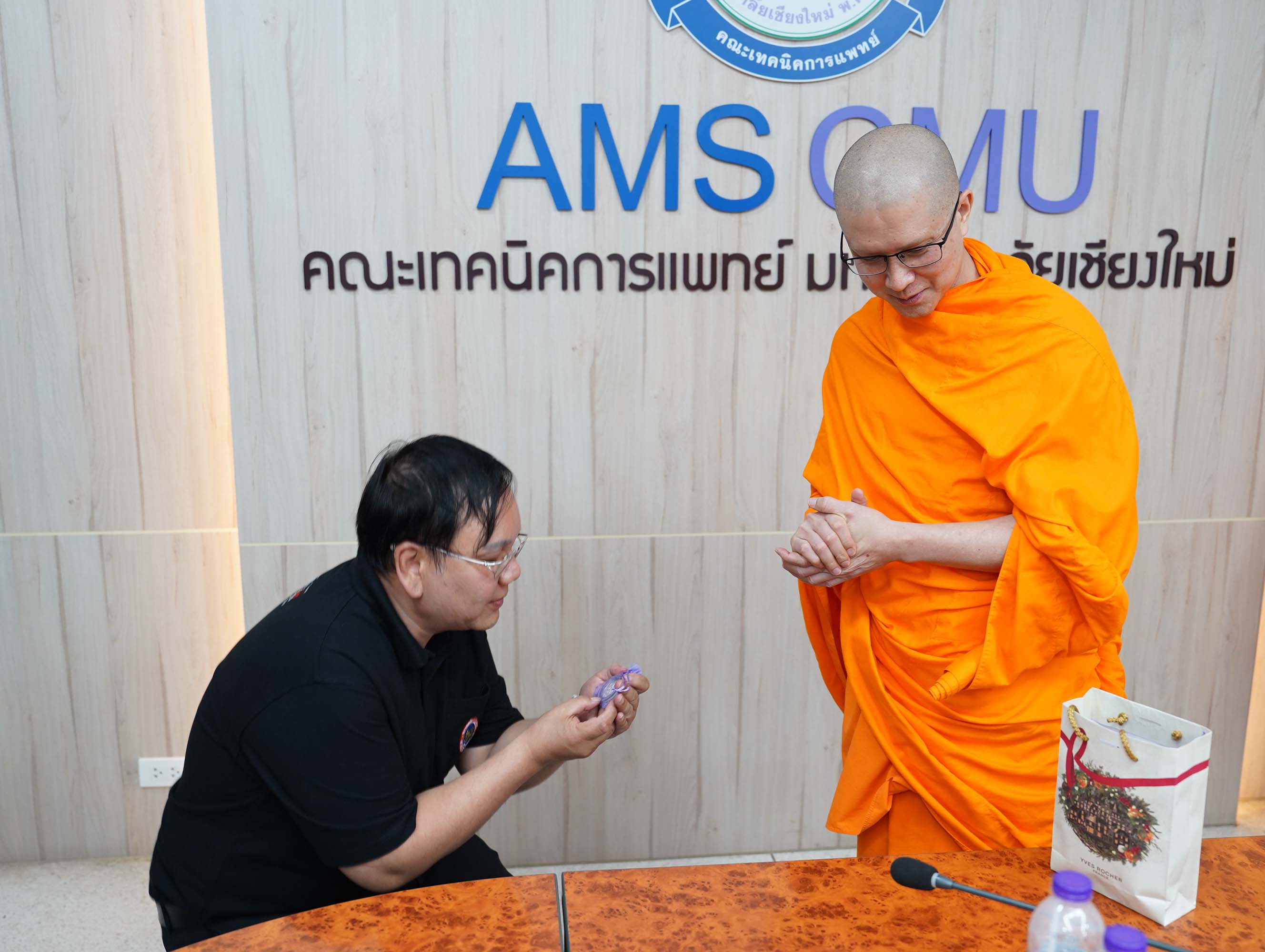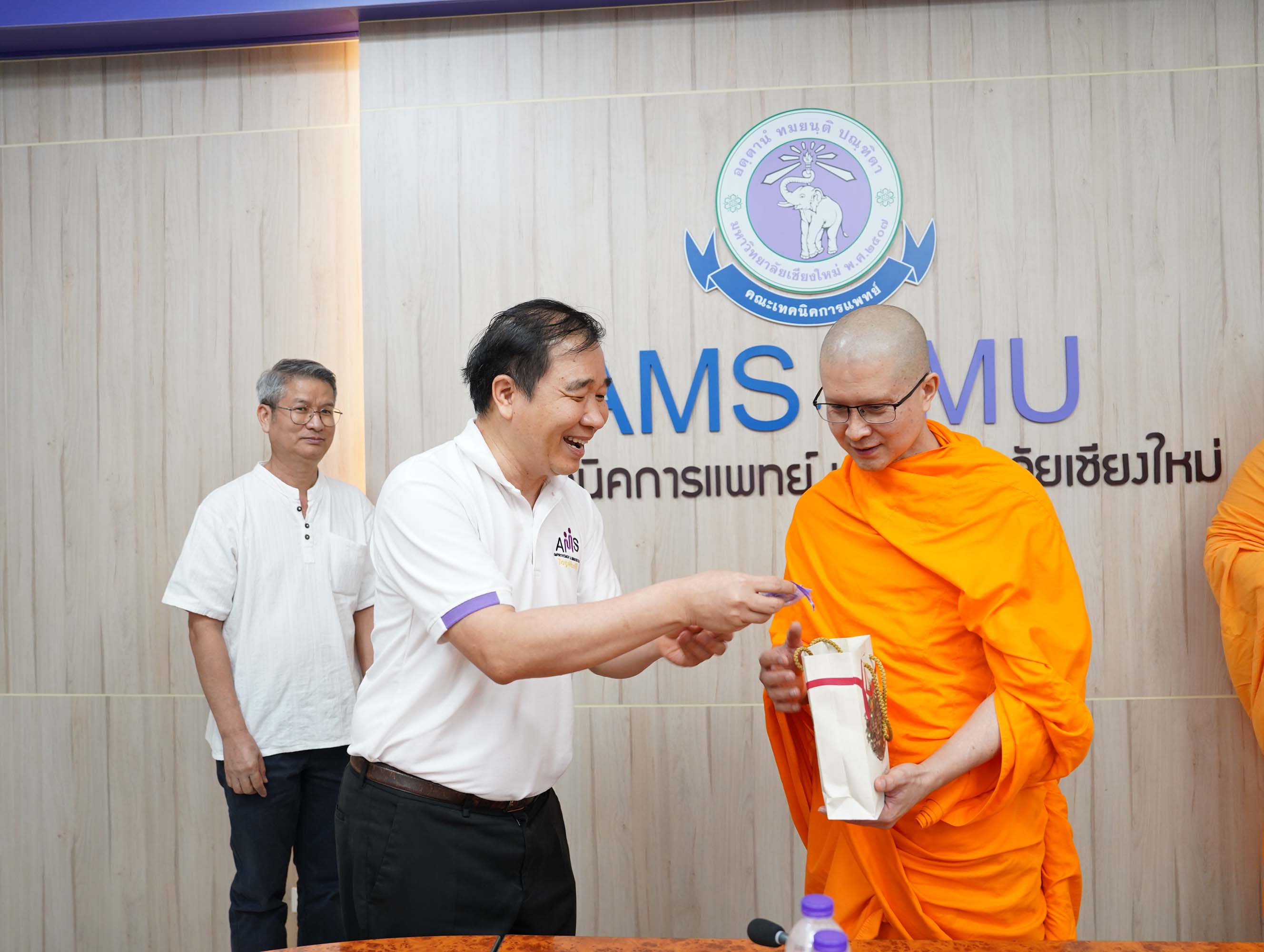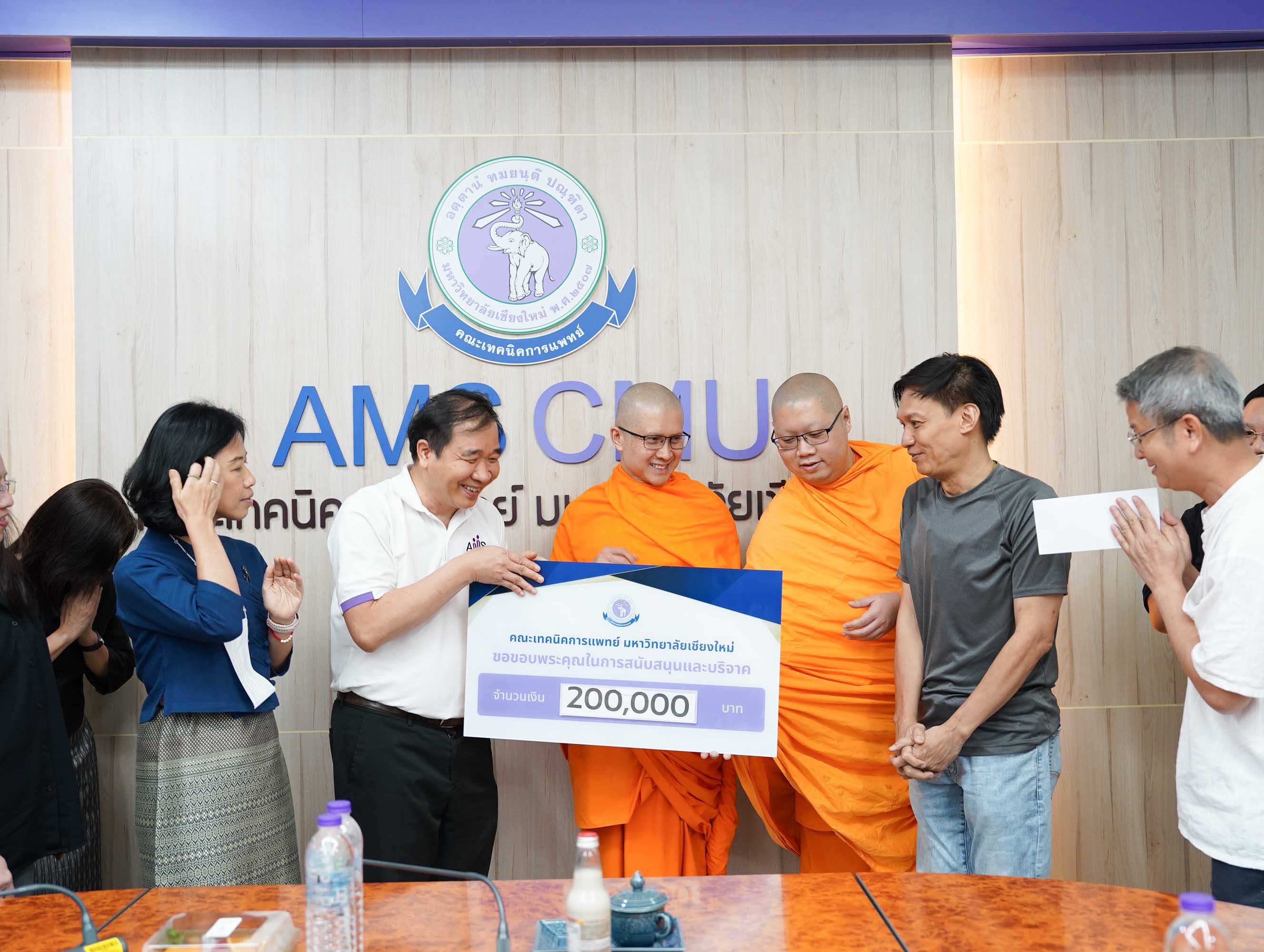 พระอาจารย์ ดร.ณรงค์ชัย ฐานชโย และศิษย์เก่าคณะเทคนิคการแพทย์ มหาวิทยาลัยเชียงใหม่ รหัส 33 มอบเงินจำนวน 200,000 บาท เพื่อสมทบทุนโครงการปรับปรุงห้องประชุมและห้องบรรยายของคณะเทคนิคการแพทย์ มหาวิทยาลัยเชียงใหม่ พร้อมกันนี้ คุณสว่าง ไชยโส ได้ร่วมมอบเงินสมทบทุนเพิ่มเติมอีกจำนวน 5,000 บาท รวมเป็นเงินทั้งสิ้น 205,000 บาท โดยมี ศาสตราจารย์ (เชี่ยวชาญพิเศษ) ดร.สาคร พรประเสริฐ คณบดี ผู้ช่วยศาสตราจารย์ ดร.เพ็ญนภา คลังสินศิริกุล รองคณบดี พร้อมด้วยผู้บริหาร คณะเทคนิคการแพทย์ มหาวิทยาลัยเชียงใหม่ เป็นผู้รับมอบ ณ ห้องประชุมชั้น 1 อาคาร 2 คณะเทคนิคการแพทย์ มหาวิทยาลัยเชียงใหม่ เมื่อวันศุกร์ที่ 3 เมษายน 2569