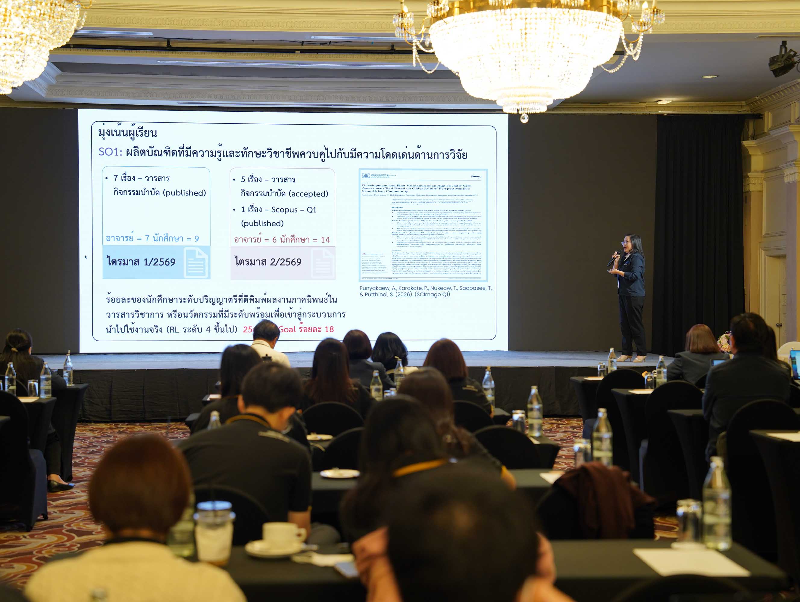 ภายในงานมีการนำเสนอผลดำเนินงานประจำปีงบประมาณ 2569 ไตรมาสที่ 2 ของหน่วยงานของคณะฯ ได้แก่ ภาควิชาเทคนิคการแพทย์ ภาควิชารังสีเทคนิค ภาควิชากิจกรรมบำบัด ภาควิชากายภาพบำบัด สำนักงานคณะฯ และ ศูนย์บริการเทคนิคการแพทย์คลินิก นอกจากนี้ยังมีพิธีมอบของที่ระลึกแก่นักกีฬาคณะเทคนิคการแพทย์ ที่ได้เข้าร่วมการแข่งขันกีฬาบุคลากรมหาวิทยาลัยเชียงใหม่ ประจำปี 2569