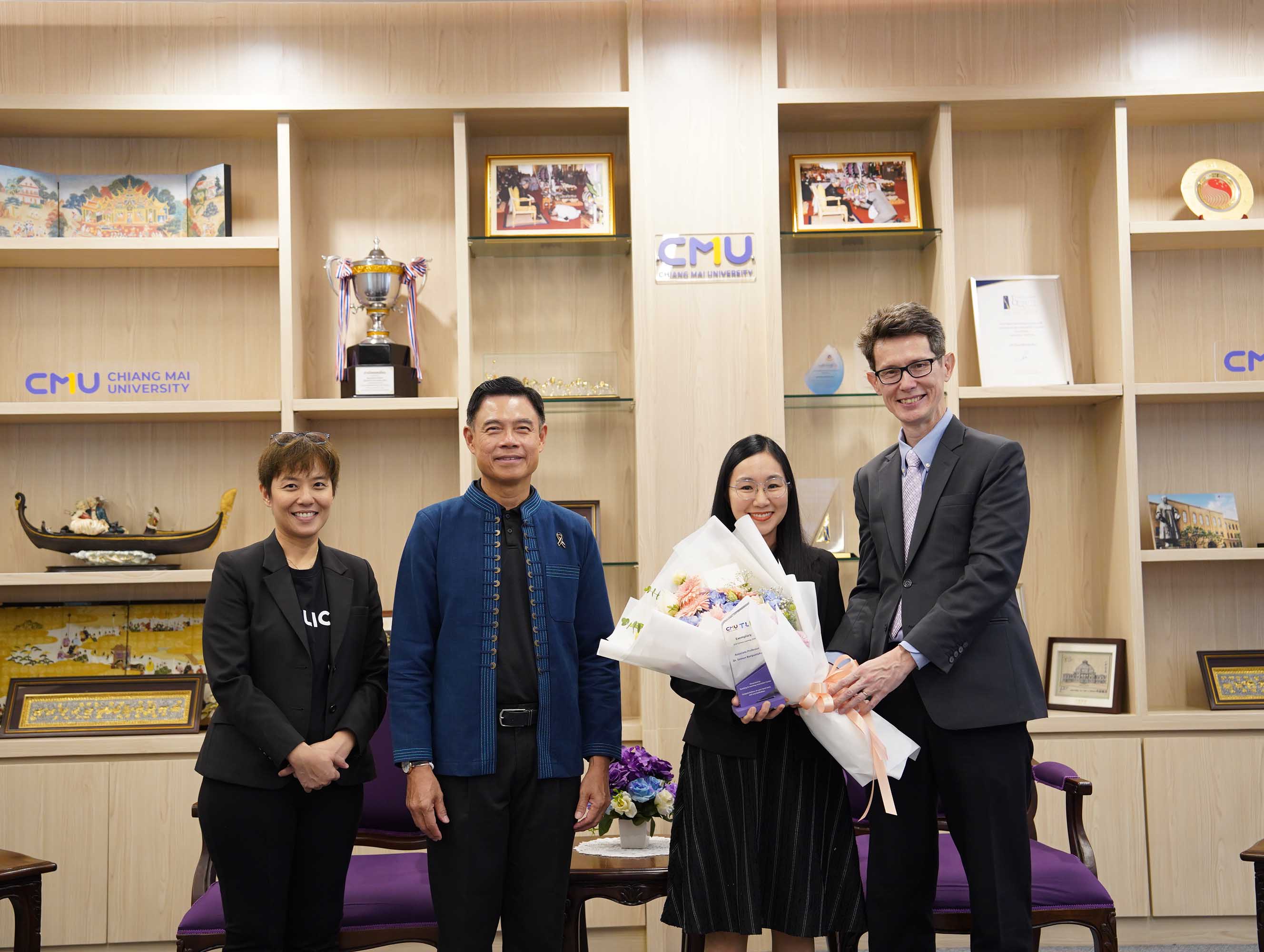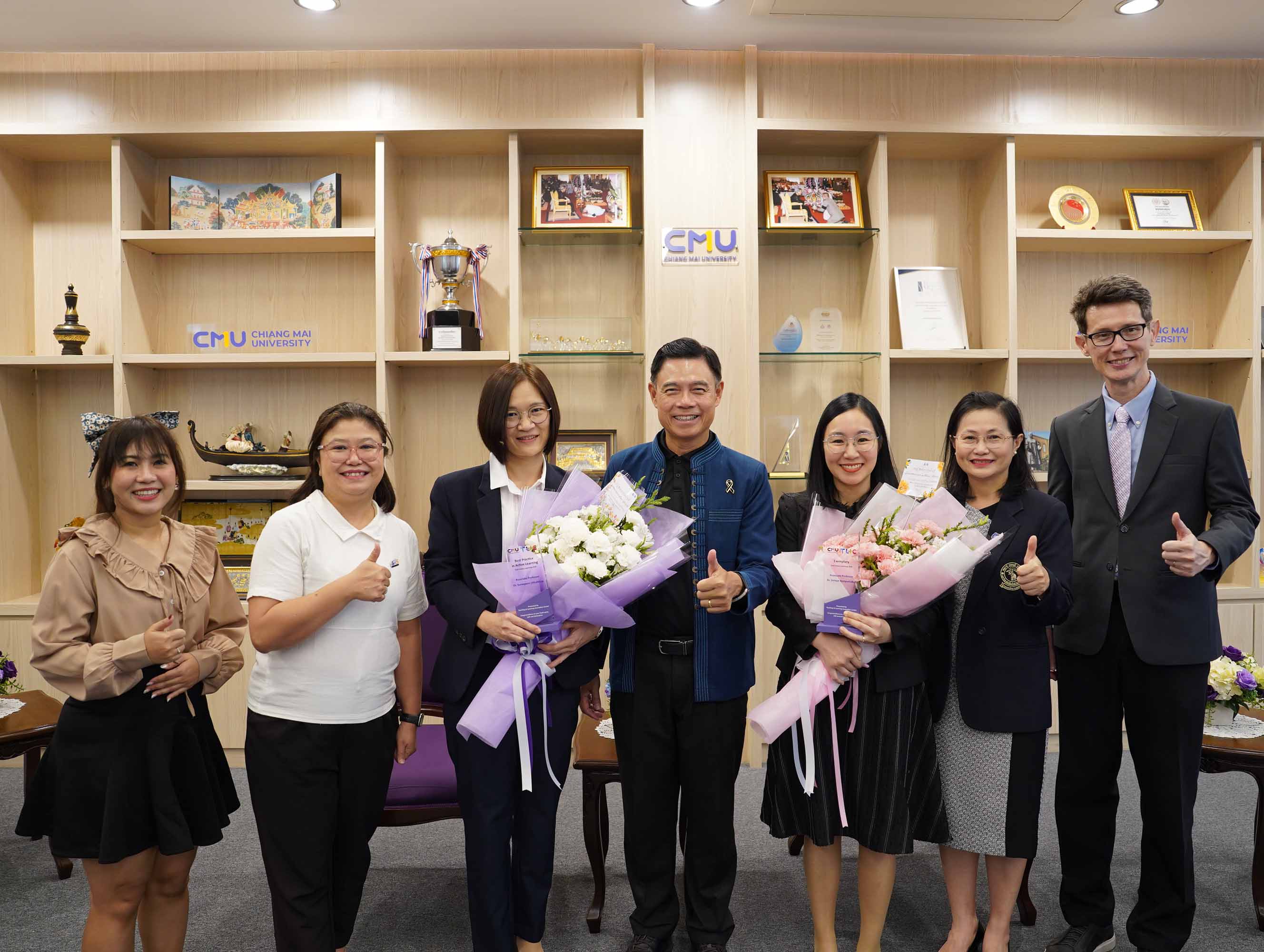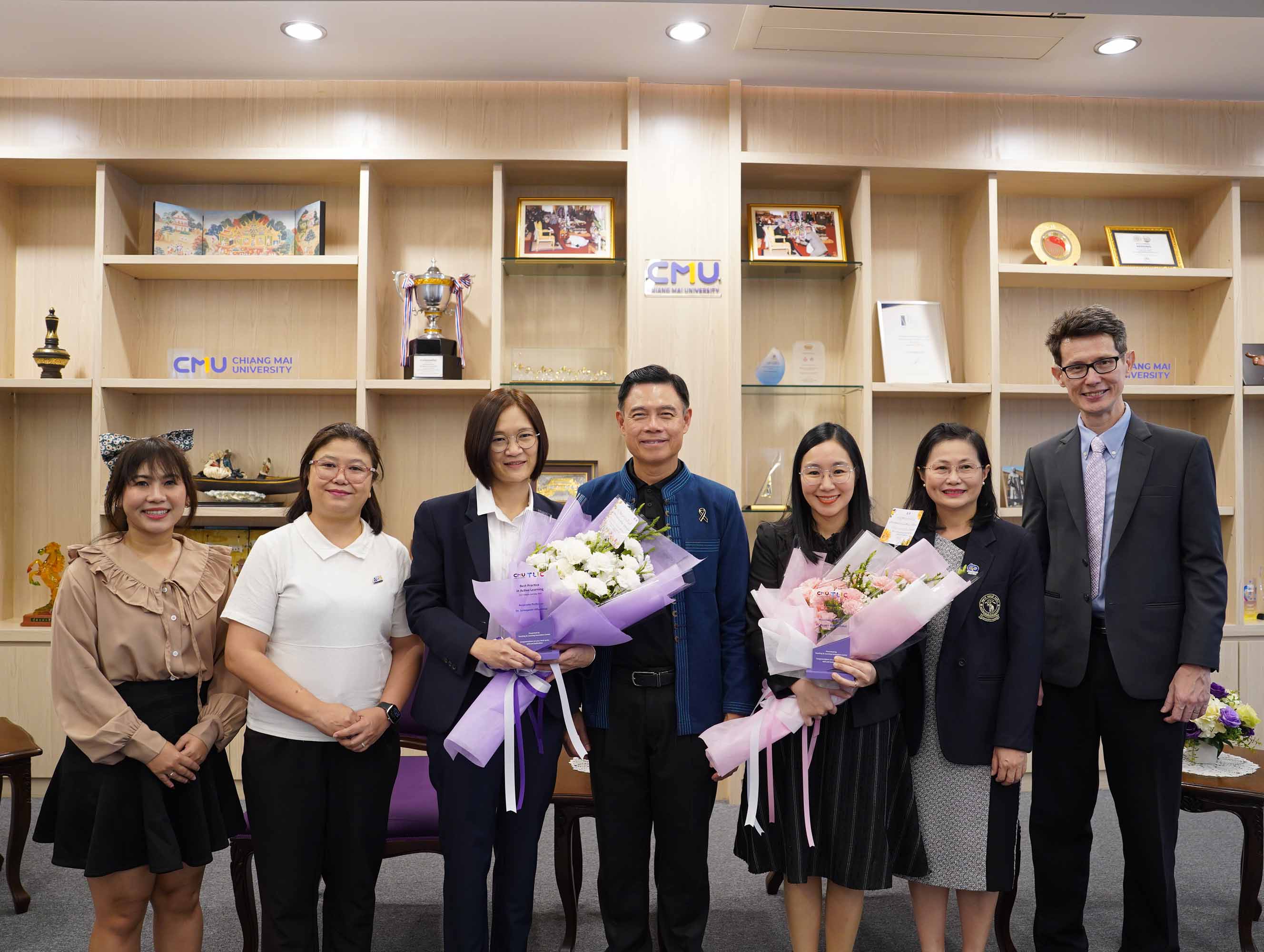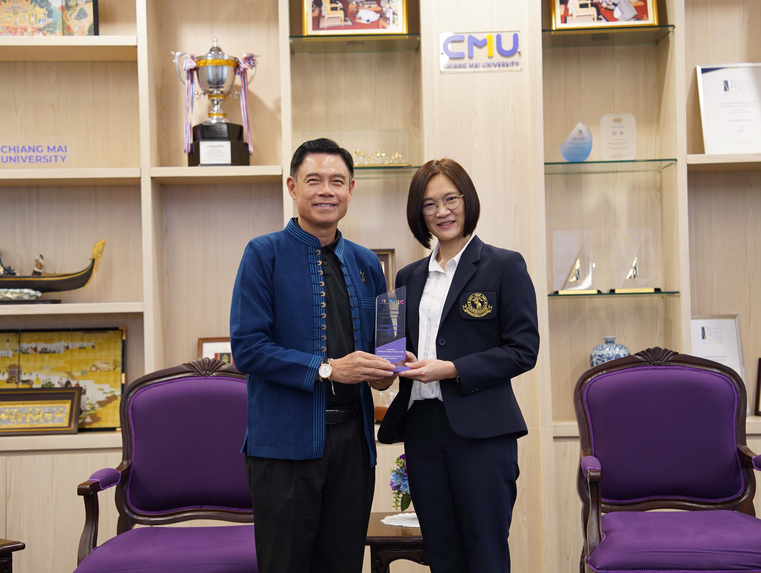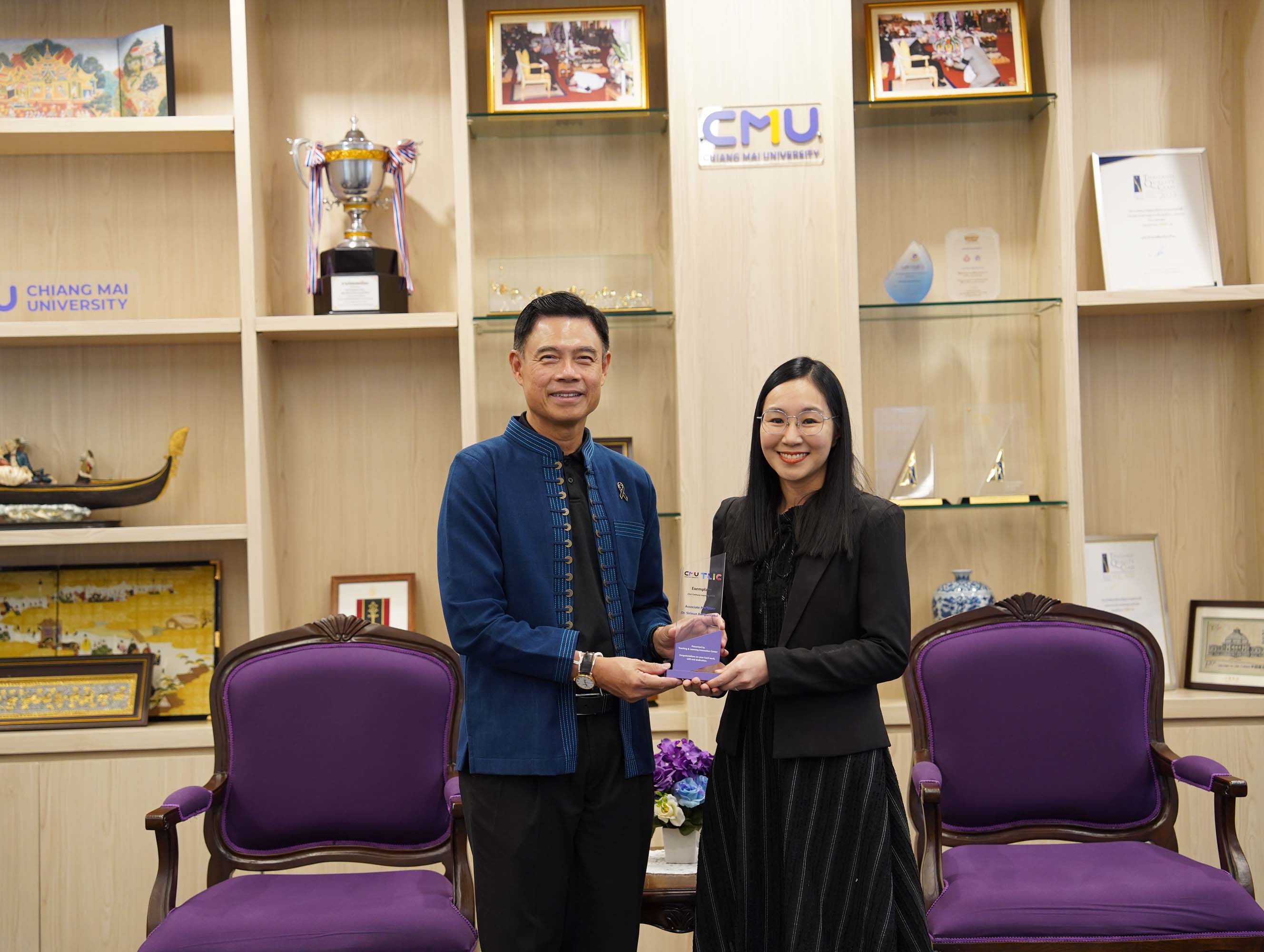 ศาสตราจารย์ ดร.นพ.พงษ์รักษ์ ศรีบัณฑิตมงคล อธิการบดีมหาวิทยาลัยเชียงใหม่ ให้เกียรติมอบรางวัลแก่อาจารย์ผู้มีผลงานโดดเด่นด้านการจัดการเรียนการสอน โดยมีอาจารย์จากภาควิชากายภาพบำบัด คณะเทคนิคการแพทย์ มหาวิทยาลัยเชียงใหม่ เข้ารับรางวัลจำนวน 2 ท่าน ได้แก่