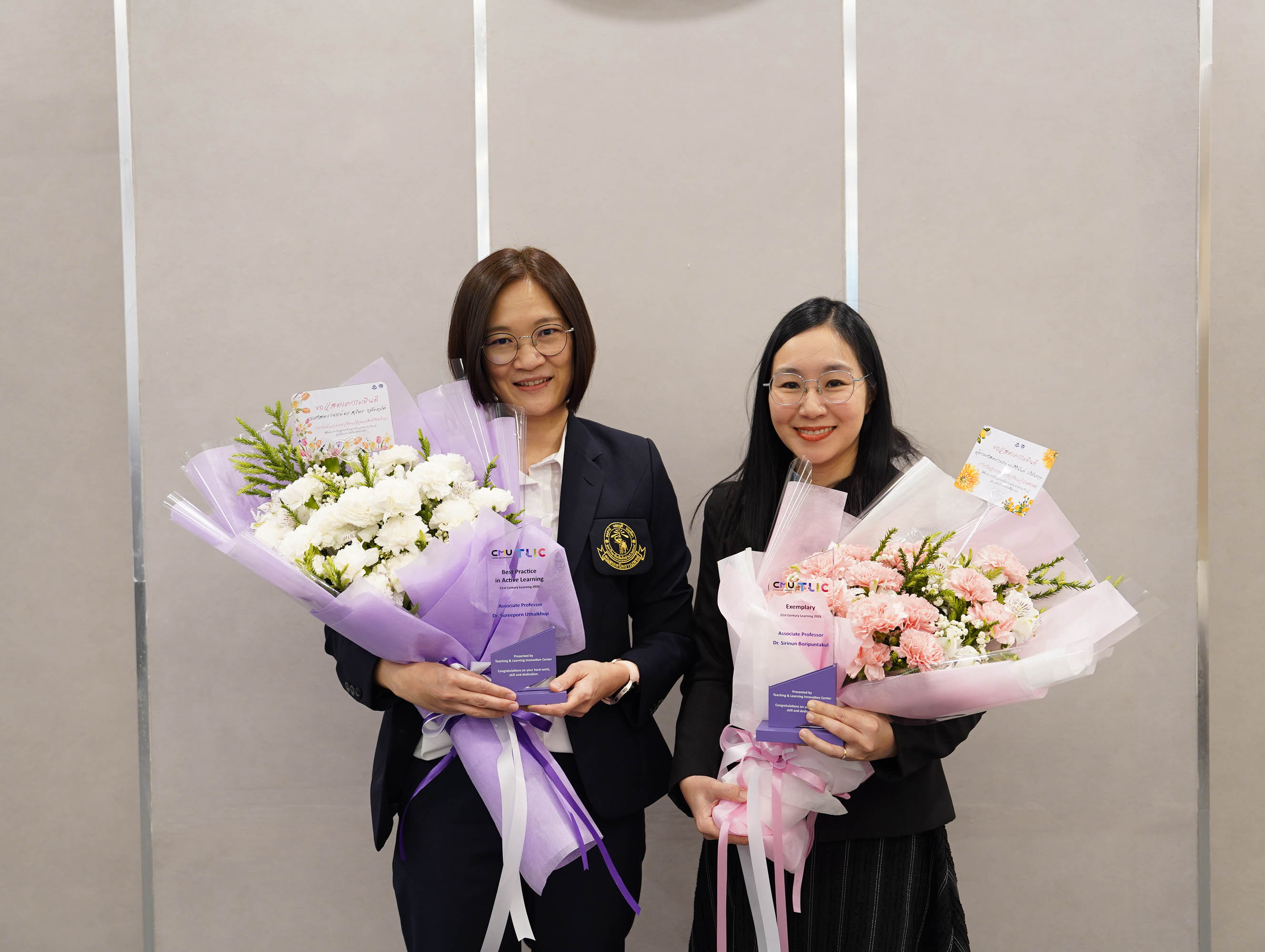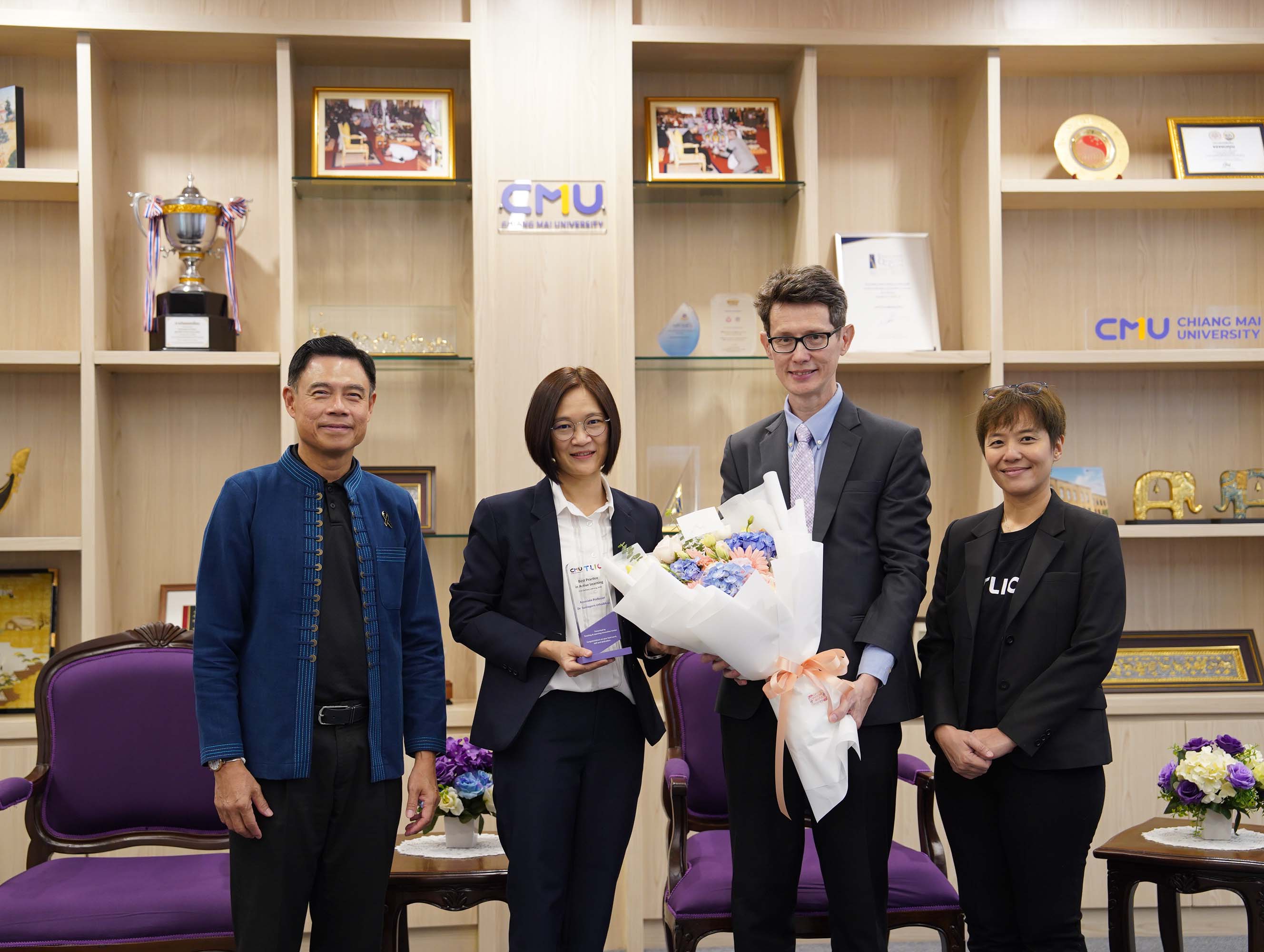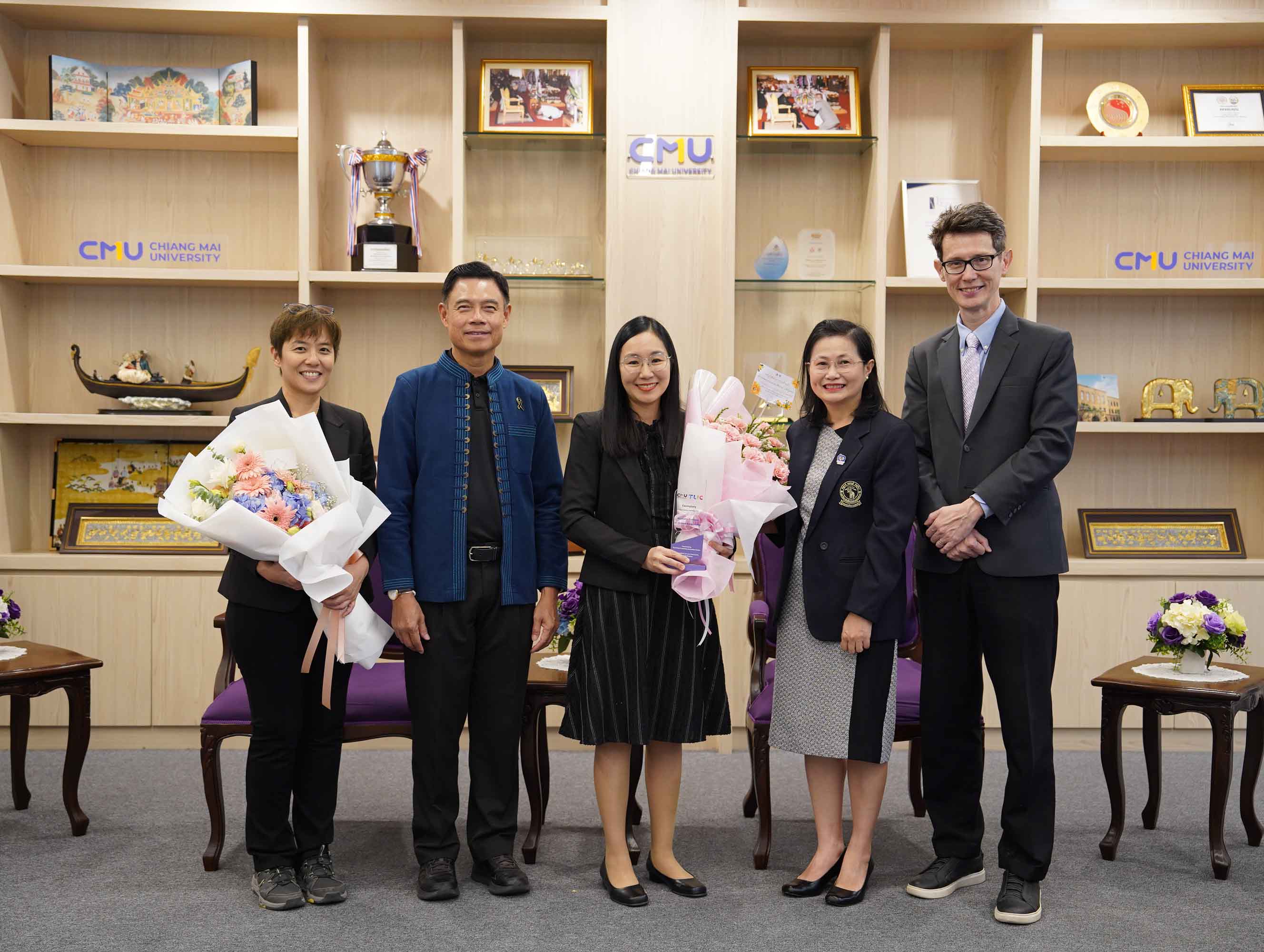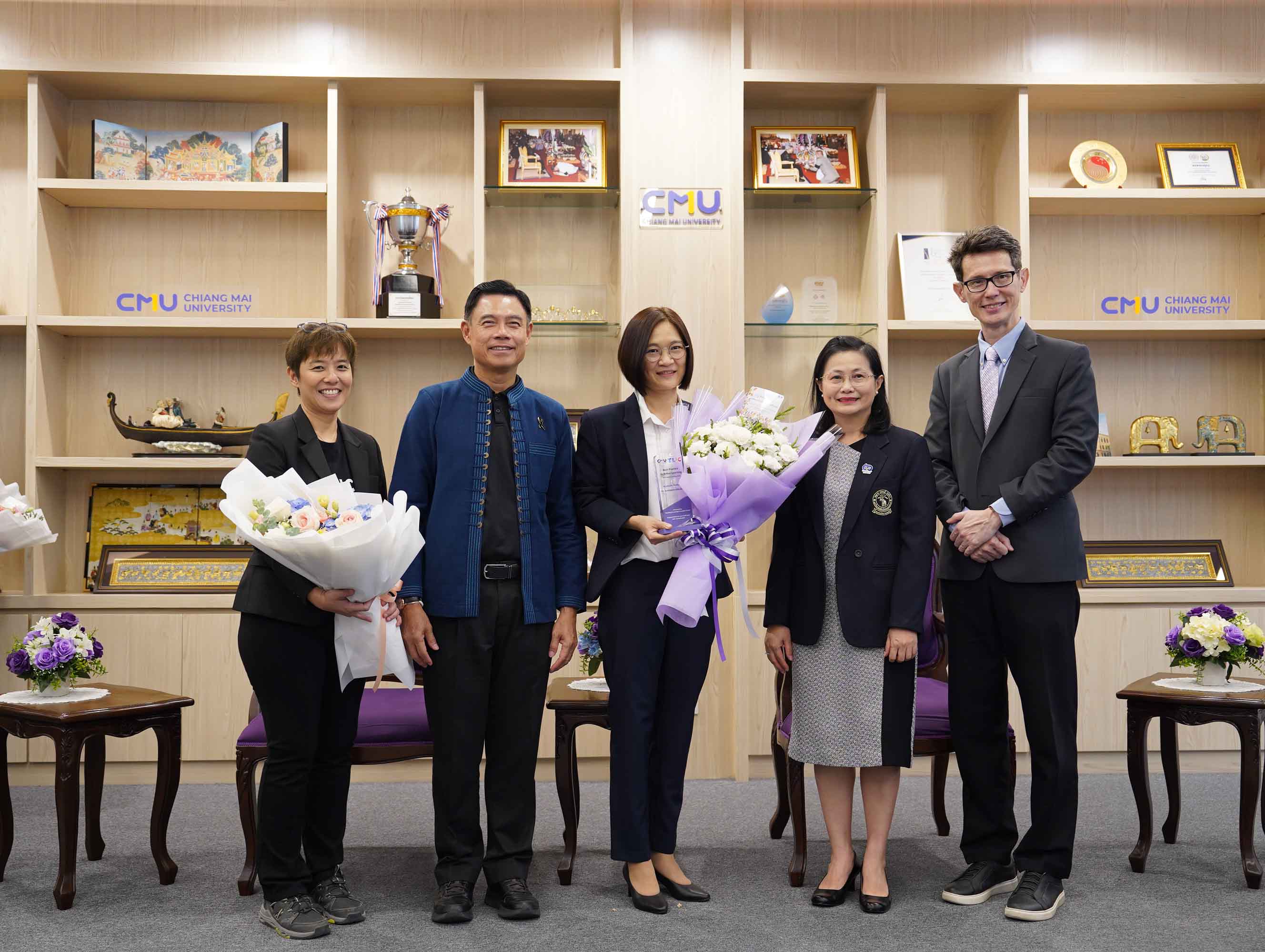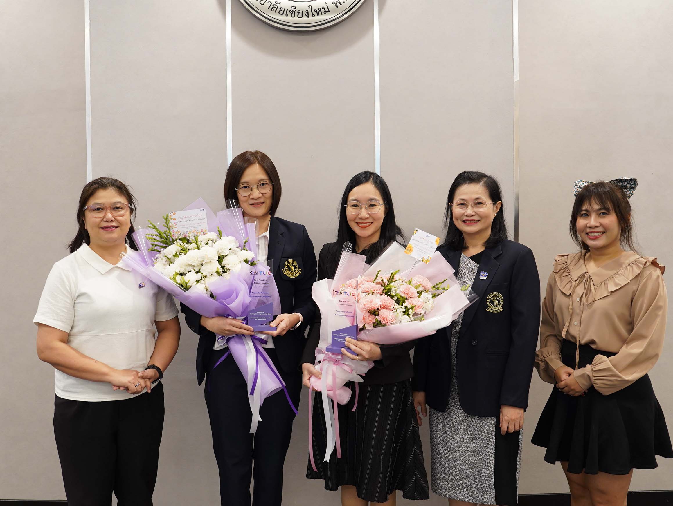 ศาสตราจารย์ ดร.นพ.พงษ์รักษ์ ศรีบัณฑิตมงคล อธิการบดีมหาวิทยาลัยเชียงใหม่ ให้เกียรติมอบรางวัลแก่อาจารย์ผู้มีผลงานโดดเด่นด้านการจัดการเรียนการสอน โดยมีอาจารย์จากภาควิชากายภาพบำบัด คณะเทคนิคการแพทย์ มหาวิทยาลัยเชียงใหม่ เข้ารับรางวัลจำนวน 2 ท่าน ได้แก่