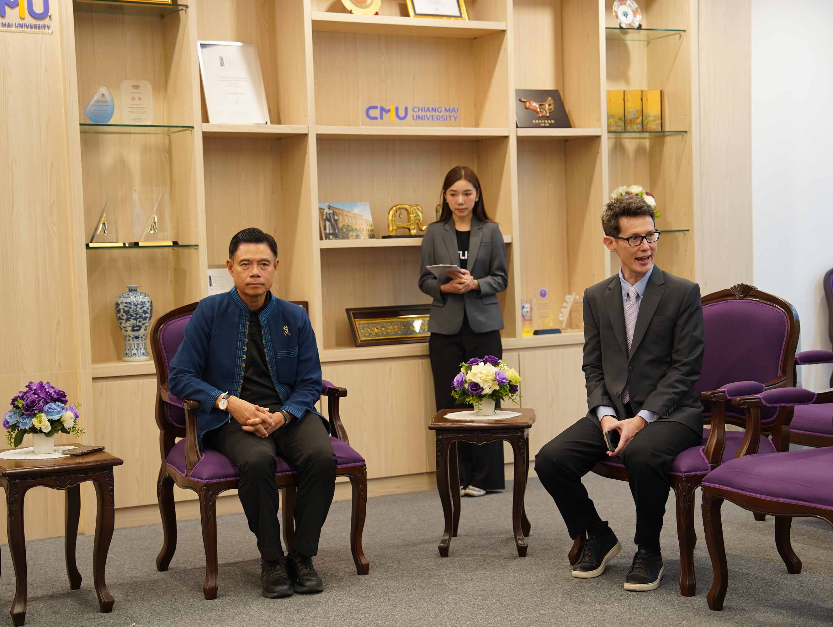 ในโอกาสนี้ รองศาสตราจารย์สายนที ปรารถนาผล รองคณบดี พร้อมด้วยบุคลากรคณะเทคนิคการแพทย์ ร่วมแสดงความยินดี ณ ห้องรับรอง ม.ล.ปิ่น มาลากุล อาคารสำนักงานมหาวิทยาลัย มหาวิทยาลัยเชียงใหม่ เมื่อวันพฤหัสบดีที่ 23 เมษายน 2569