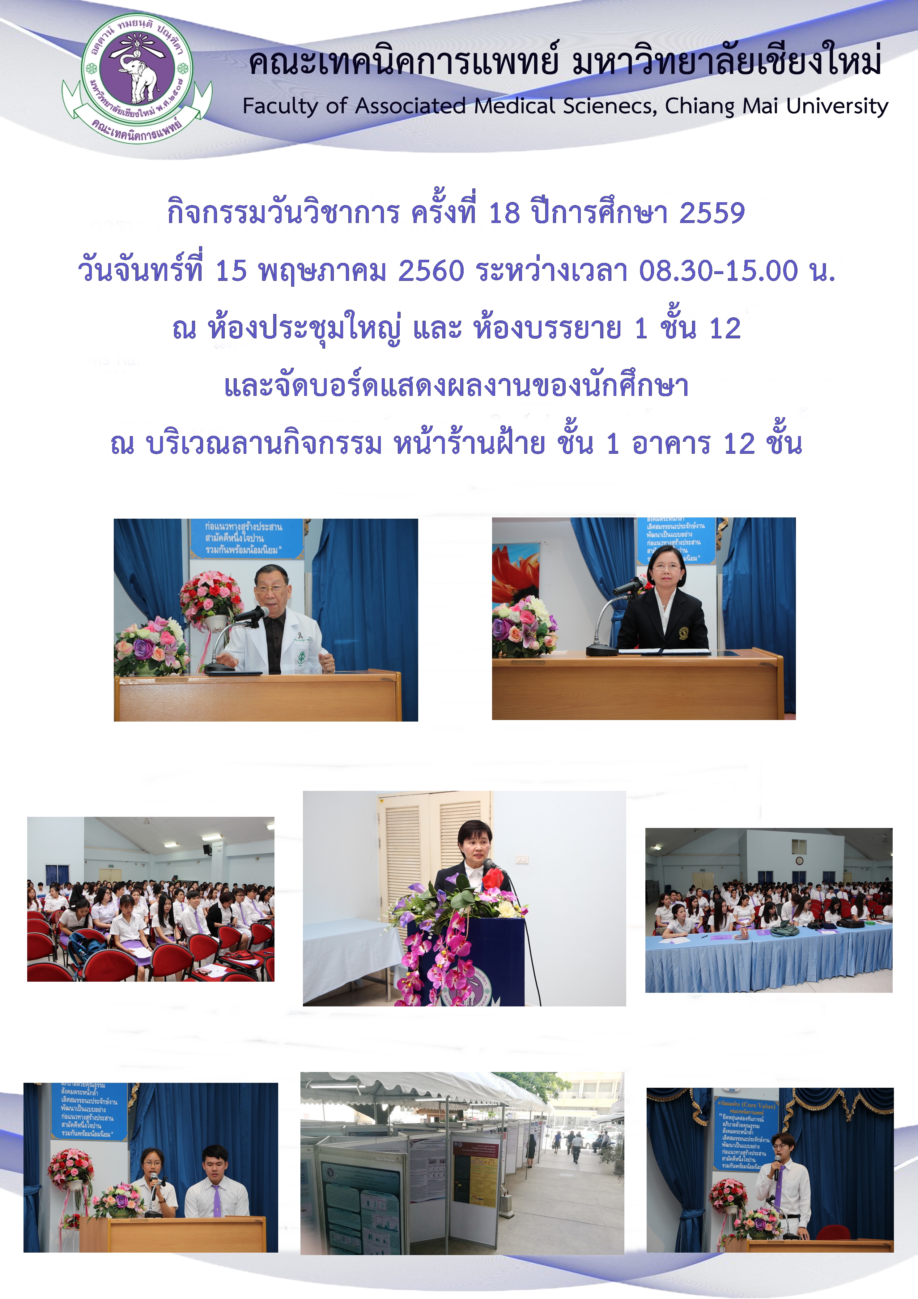 กิจกรรมวันวิชาการ ครั้งที่ 18 ปีการศึกษา 2559 และจัดบอร์ดแสดงผลงานของนักศึกษาชั้นปีที่ 4