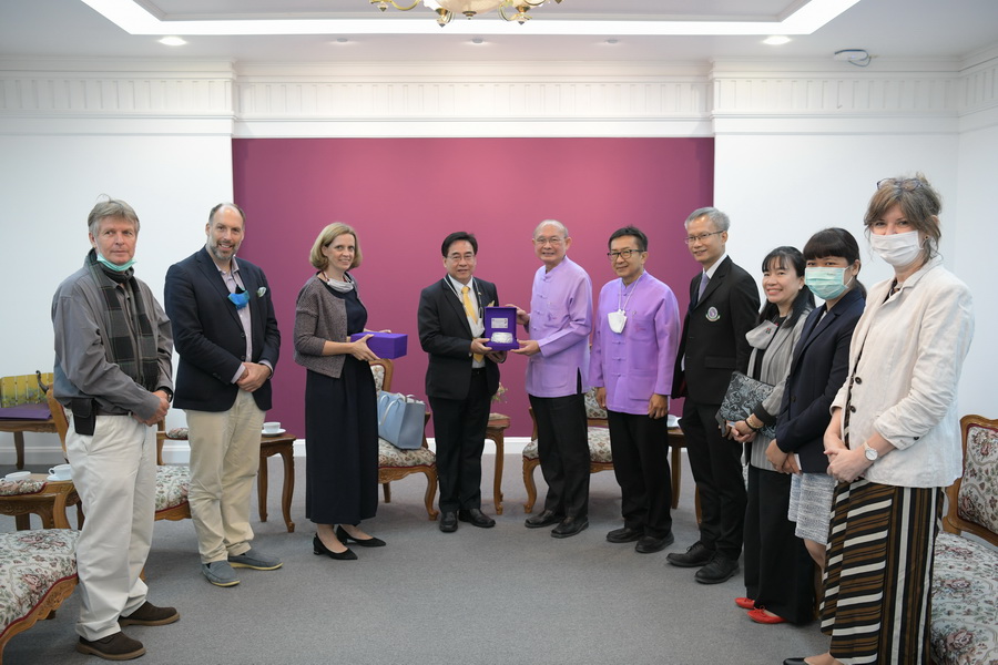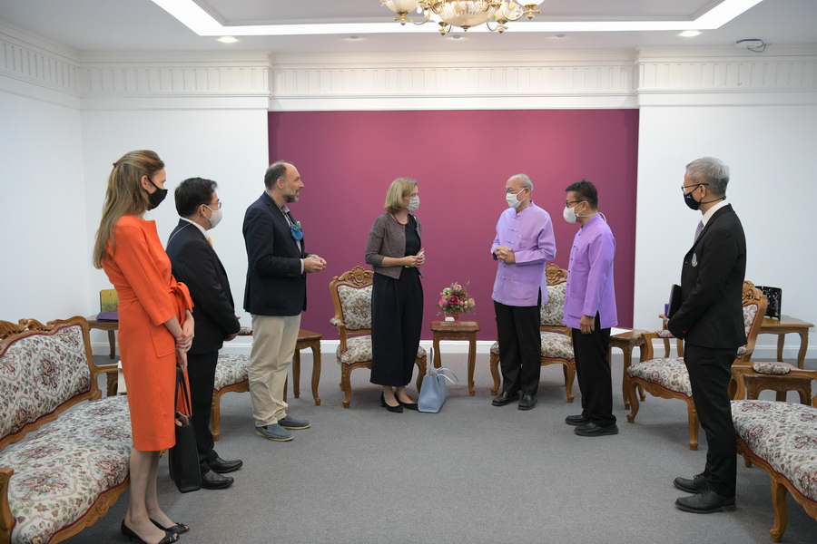 CMU's President Clinical Professor Niwes Nantachit M.D. welcomed H.E. Sibille de Cartier d'Yves, Ambassador-Designated of the Kingdom of Belgium, during her courtesy visit to exchange on topics of mutual interest and areas for future cooperation on February 16, 2021.