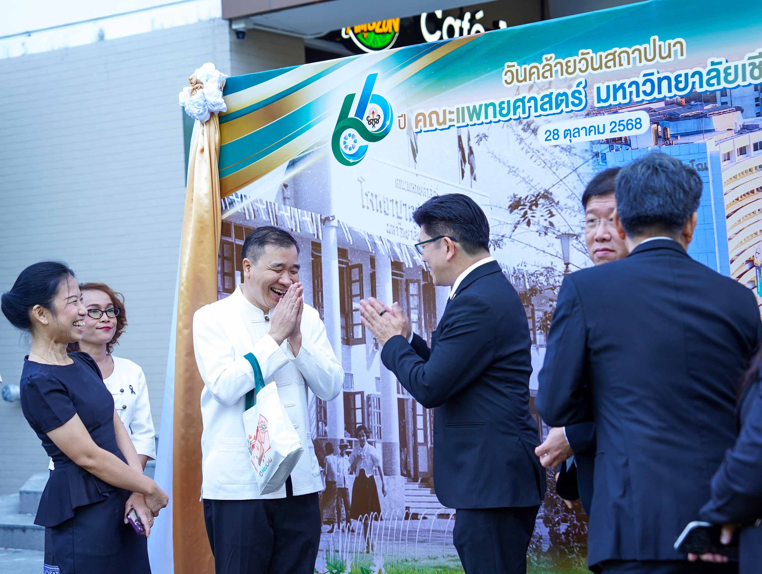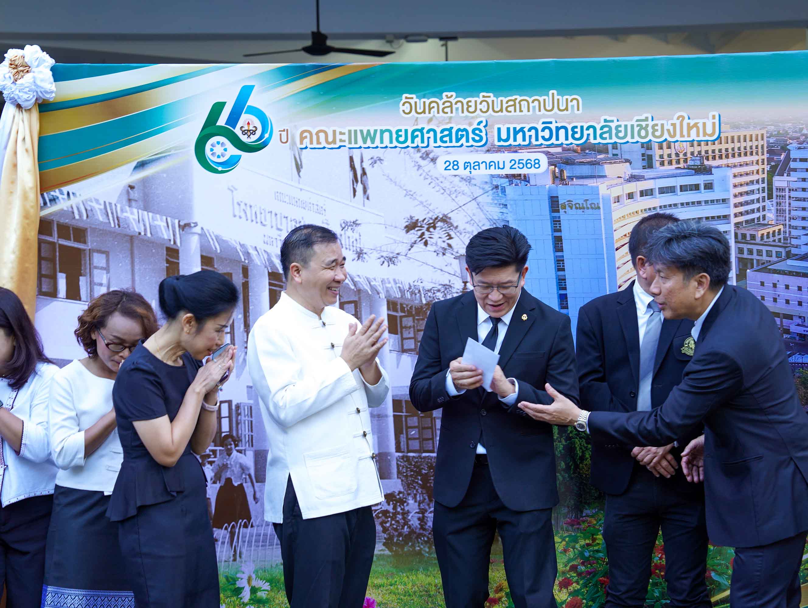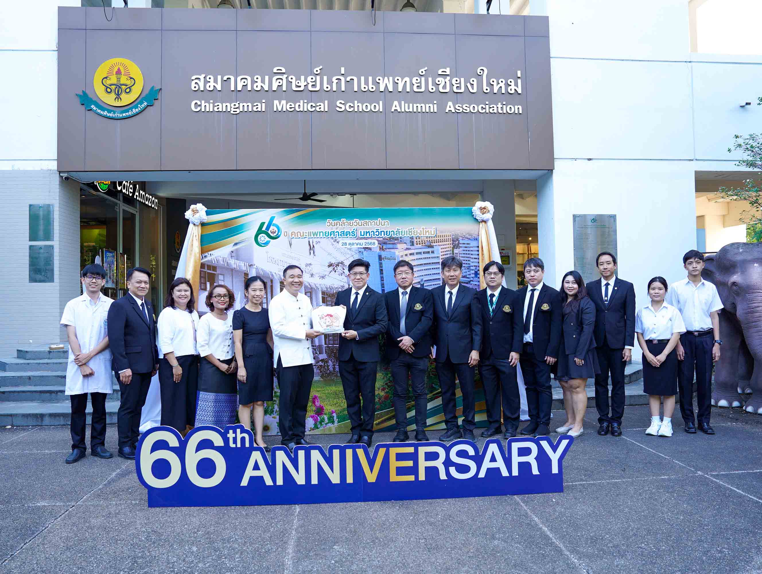 ศาสตราจารย์ ดร.สาคร พรประเสริฐ คณบดี ผู้ช่วยศาสตราจารย์ ดร.เพ็ญนภา คลังสินศิริกุล รองคณบดี ผู้ช่วยศาสตราจารย์ ดร.สุรัชณีย์ พัดงาม ผู้ช่วยคณบดี พร้อมด้วยบุคลากร คณะเทคนิคการแพทย์ มหาวิทยาลัยเชียงใหม่ ร่วมงานวันคล้ายวันสถาปนาคณะแพทยศาสตร์ มหาวิทยาลัยเชียงใหม่ ครบ 66 ปี โดยมี รองศาสตราจารย์ นายแพทย์ นเรนทร์ โชติรสนิรมิต ให้การต้อนรับ ณ อาคารเรียนรวม คณะแพทยศาสตร์ มหาวิทยาลัยเชียงใหม่ เมื่อวันอังคารที่ 28 ตุลาคม 2568