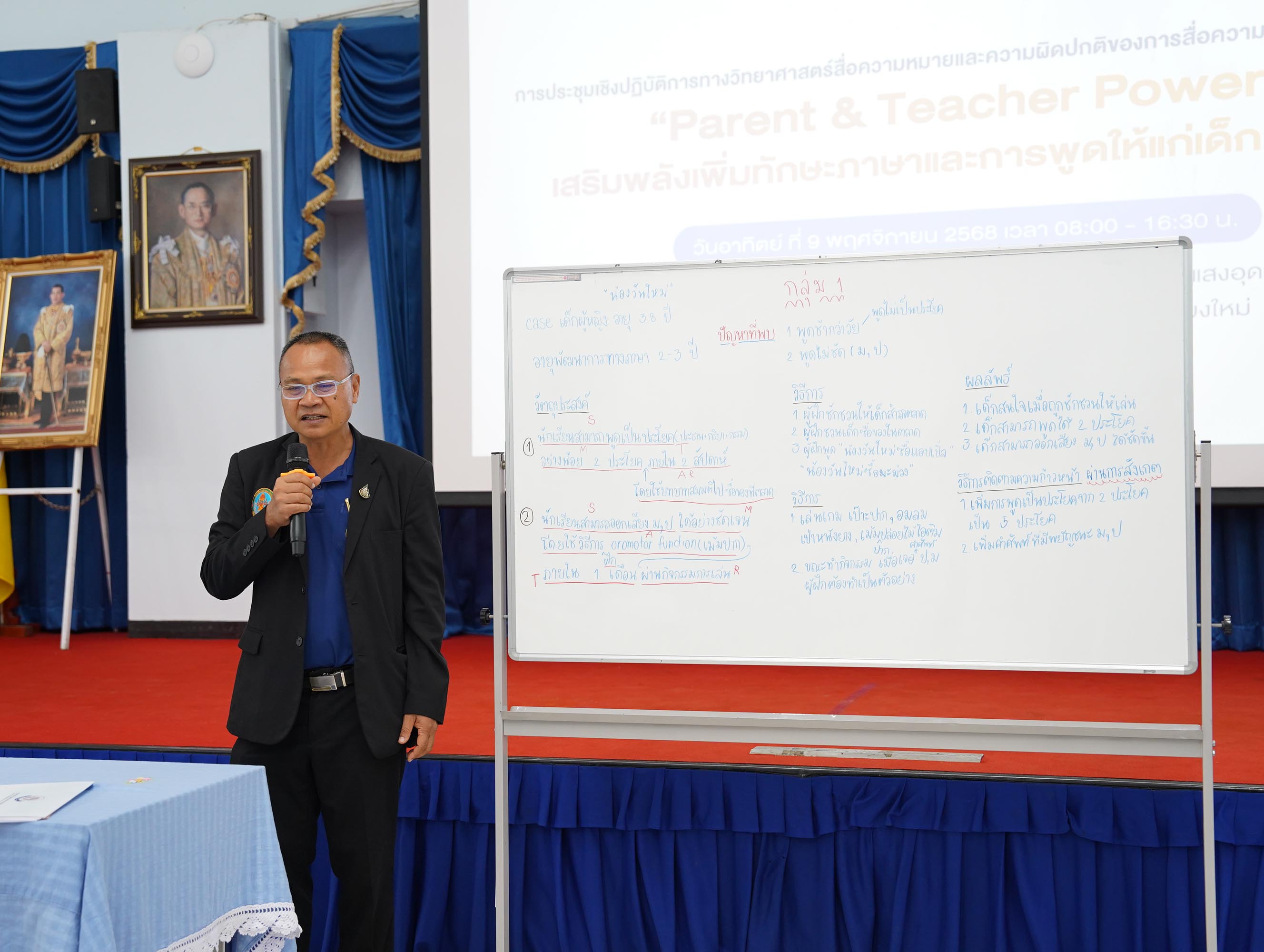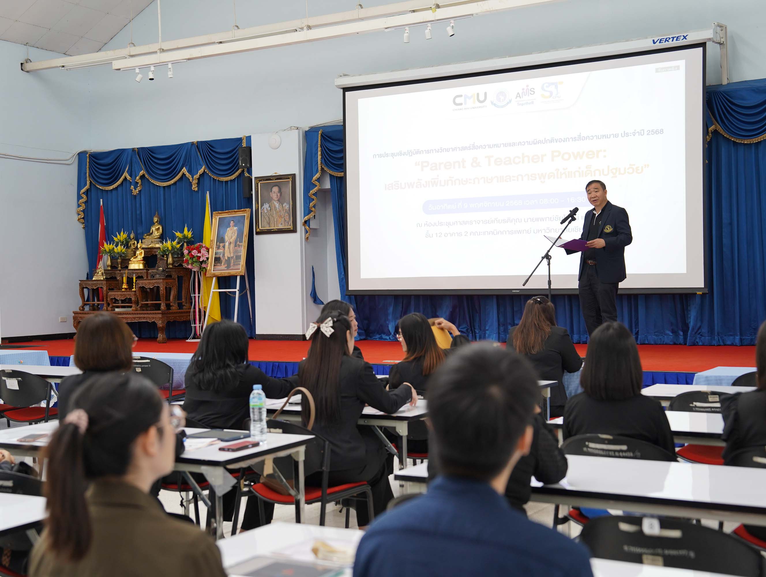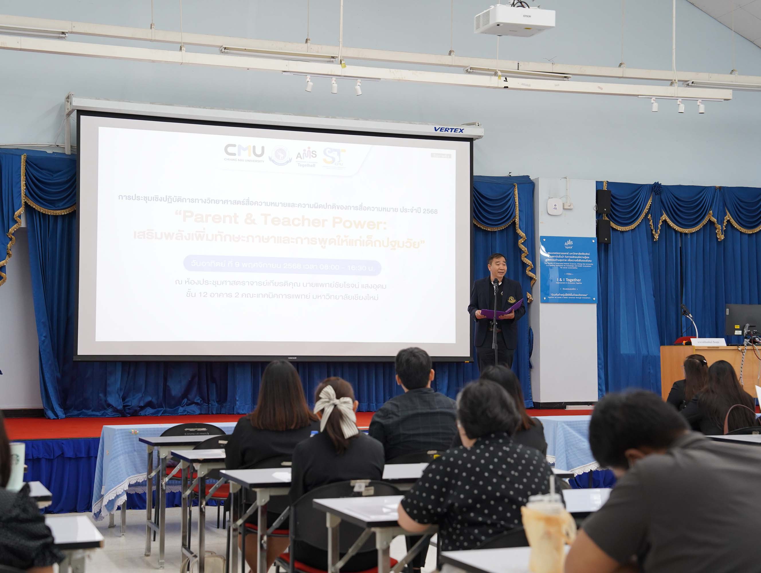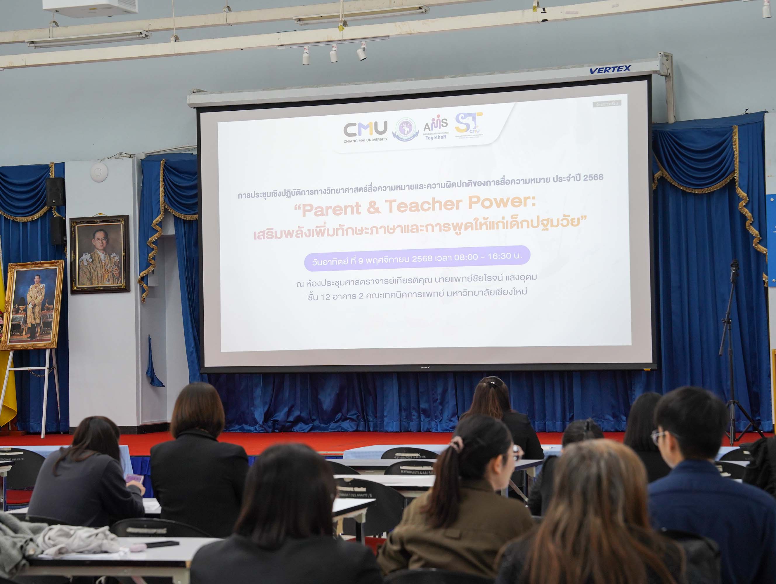 สาขาวิชาวิทยาศาสตร์สื่อความหมายและความผิดปกติของการสื่อความหมาย ภาควิชากิจกรรมบำบัด คณะเทคนิคการแพทย์ มหาวิทยาลัยเชียงใหม่ จัดการประชุมเชิงปฏิบัติการด้านวิทยาศาสตร์สื่อความหมายและความผิดปกติของการสื่อความหมาย ประจำปี 2568 โดยมี ศาสตราจารย์ ดร.สาคร พรประเสริฐ คณบดี เป็นประธาน เพื่อให้ผู้ปกครองและครูปฐมวัย มีความรู้เกี่ยวกับพัฒนาการทางภาษาและการพูด ทักษะ EFs และทักษะการเรียนรู้หนังสือขั้นต้นของเด็กปฐมวัย มีความรู้เกี่ยวกับภาวะพูดช้าและการสังเกตพฤติกรรมภาวะพูดช้า ส่งเสริมพัฒนาการทางภาษาและการพูดในเบื้องต้นที่บ้านและที่โรงเรียนสำหรับเด็กปฐมวัย ณ ห้องประชุมศาสตราจารย์เกียรติคุณนายแพทย์ชัยโรจน์ แสงอุดม ชั้น 12 อาคาร 2 คณะเทคนิคการแพทย์ มหาวิทยาลัยเชียงใหม่ เมื่อวันอาทิตย์ที่ 9 พฤศจิกายน 2568