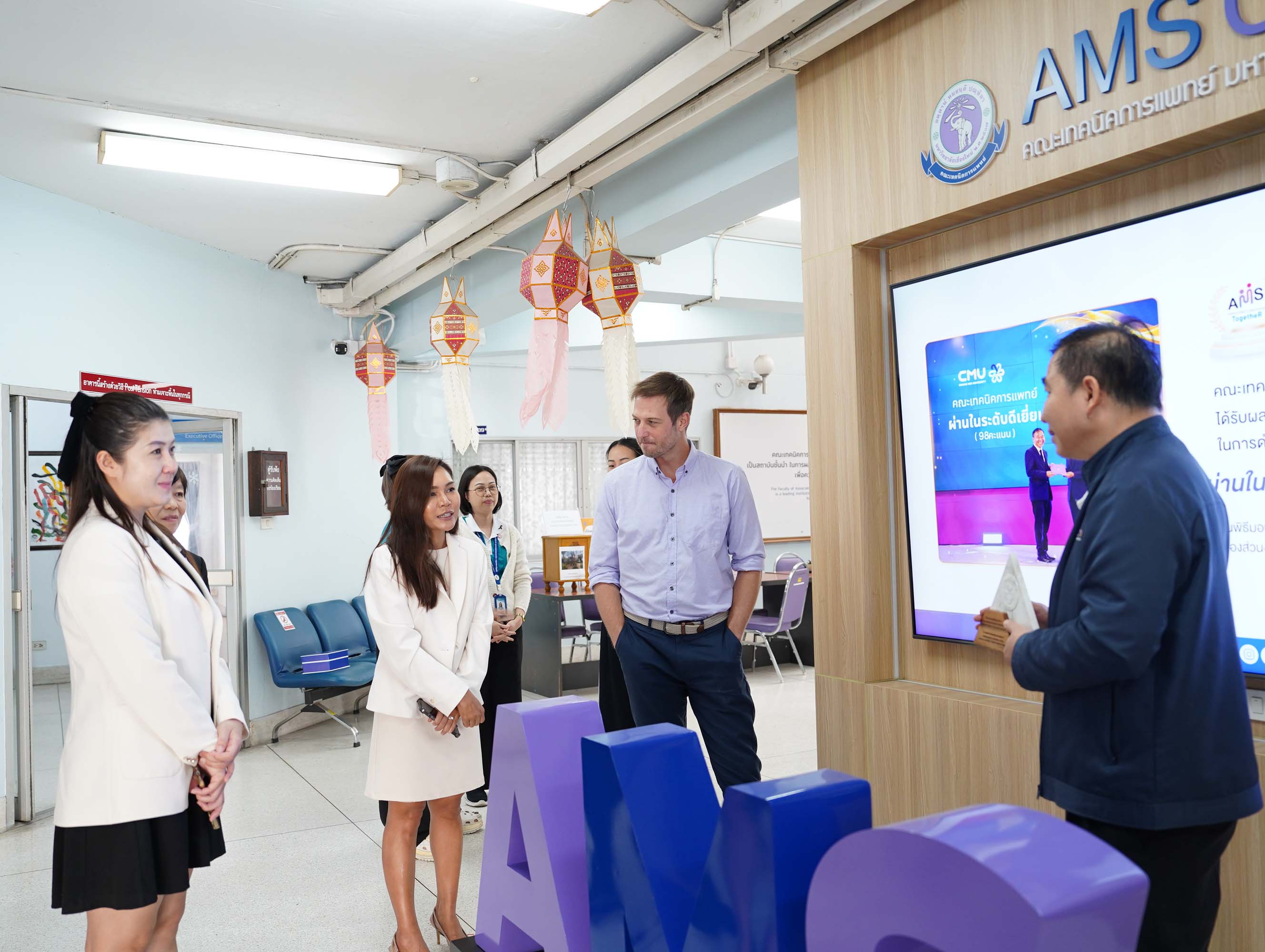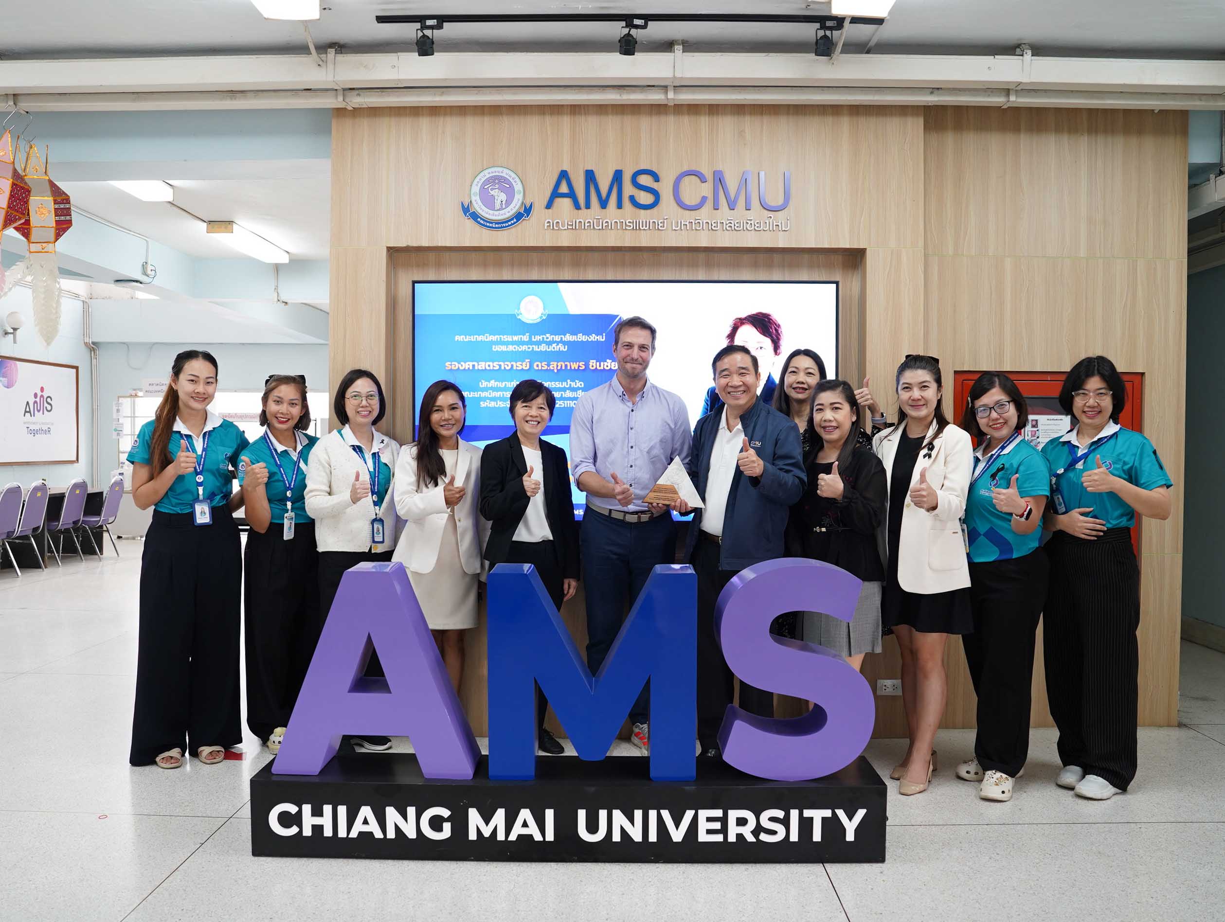 คณะเทคนิคการแพทย์ มหาวิทยาลัยเชียงใหม่ นำโดย ศาสตราจารย์ ดร.สาคร พรประเสริฐ คณบดี พร้อมด้วย หน่วยบริการจุลชีววิทยาคลินิกห้องปฏิบัติการตรวจพิเศษ ศูนย์สุขภาพพร้อม คณะเทคนิคการแพทย์ มหาวิทยาลัยเชียงใหม่ รับมอบโล่เกียรติคุณจาก บริษัท โรช ไดแอกโนสติกส์ (ประเทศไทย) จำกัด และสถาบันเทคโนโลยีแห่งเอเชีย (AIT) พร้อมกันนี้ ได้นำเสนอผลลัพธ์ของโครงการ Blue Lab ซึ่งสะท้อนถึงความมุ่งมั่นของห้องปฏิบัติการทางการแพทย์ ในการเป็นแบบอย่างด้านการจัดการสิ่งแวดล้อมอย่างยั่งยืน ณ ห้องผู้บริหาร ชั้น 1 อาคาร 2 คณะเทคนิคการแพทย์ มหาวิทายาลัยเชียงใหม่ เมื่อวันอังคารที่ 25 พฤศจิกายน 2568