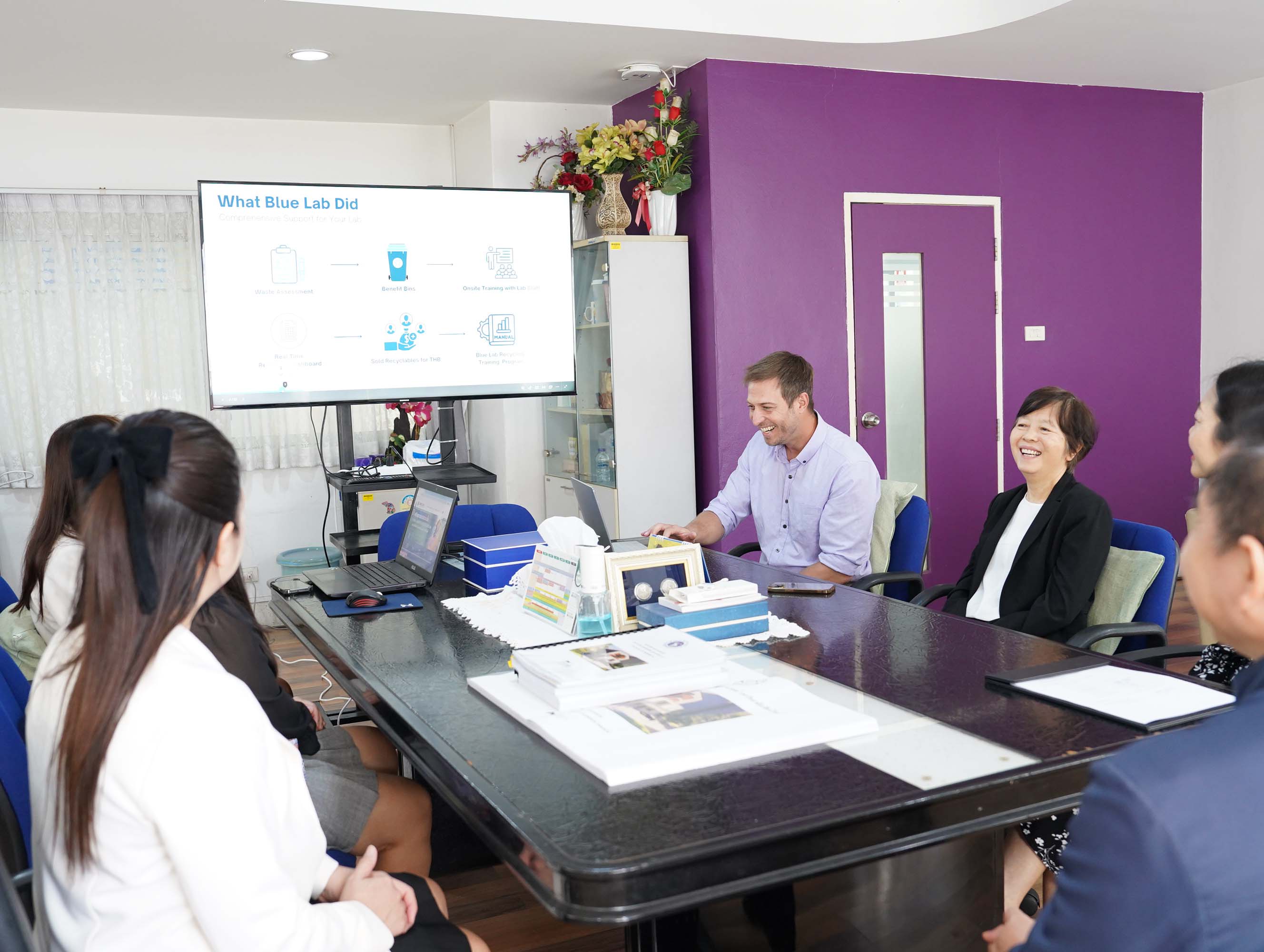 โดยโครงการ “Blue Lab” เป็นโครงการส่งเสริมแนวคิดด้านสิ่งแวดล้อมและความยั่งยืนในห้องปฏิบัติการ โดยมีวัตถุประสงค์เพื่อพัฒนาระบบมาตรฐานในการแยกและจัดการขยะรีไซเคิลจากห้องปฏิบัติการอย่างถูกวิธี และมีประสิทธิภาพ โดยมุ่งยกระดับมาตรฐานด้านสิ่งแวดล้อมของหน่วยงานทางการแพทย์