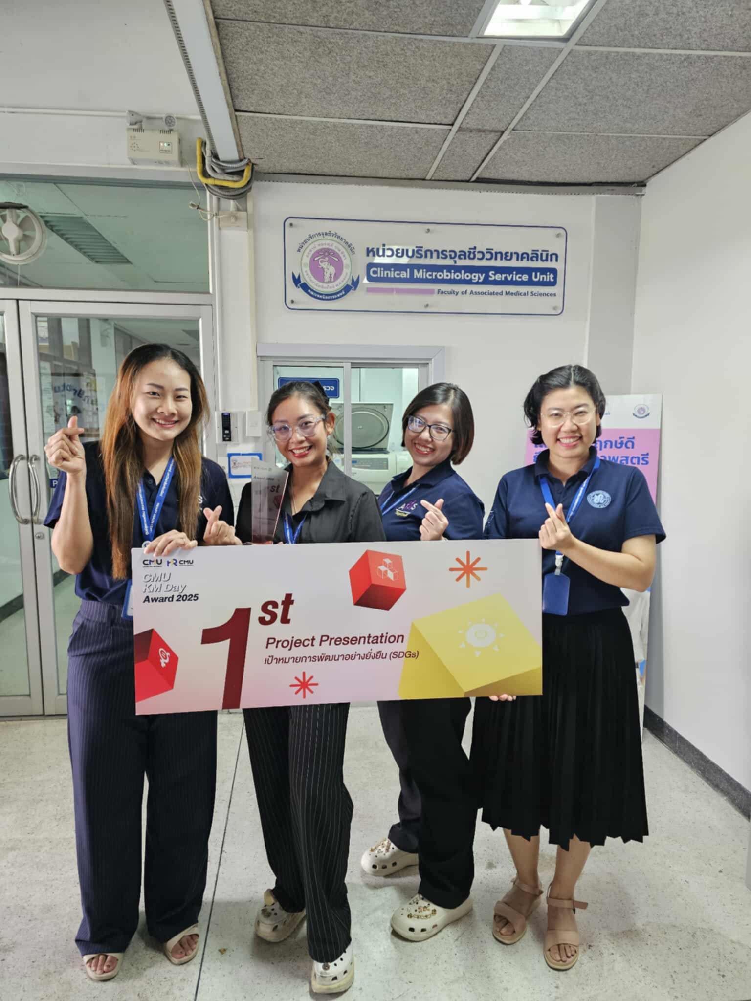 หน่วยบริการจุลชีววิทยาคลินิกห้องปฏิบัติการตรวจพิเศษ ศูนย์สุขภาพพร้อม คณะเทคนิคการแพทย์ มหาวิทยาลัยเชียงใหม่ คว้ารางวัลชนะเลิศ ในการนำเสนอผลงานในรูปแบบ project presentation ประเภทเป้าหมายการพัฒนาอย่างยั่งยืน (SDGs) ผลงานเรื่อง "แล็บรักษ์โลก พัฒนาคุณภาพอย่างยั่งยืน (ECO-Friendly Lab with Continuous Quality Improvement)" โดยมี ทนพญ.ปนัดดา พุทธคำ นักเทคนิคการแพทย์ หัวหน้าโครงการ เป็นผู้นำเสนอผลงาน ในงาน CMU KM Day 2025 ขับเคลื่อนองค์ความรู้ สู่เป้าหมายการพัฒนาที่ยั่งยืน : The Power of Knowledge towards SDGs เมื่อวันที่ 30-31 ตุลาคม 2568 ณ หอประชุมออดิทอเรียม (Rice Grain Auditorium) อุทยานวิทยาศาสตร์และเทคโนโลยี มหาวิทยาลัยเชียงใหม่