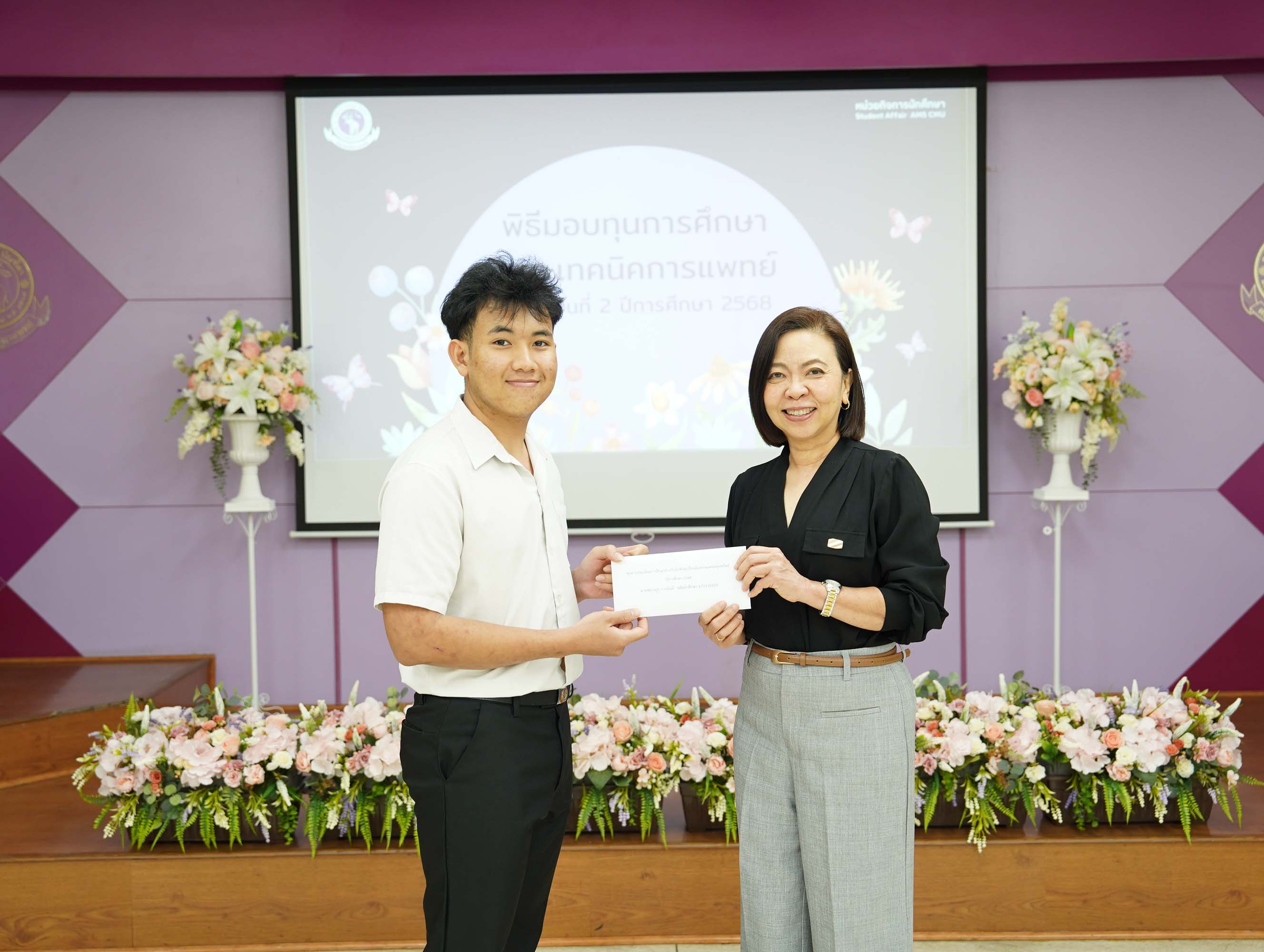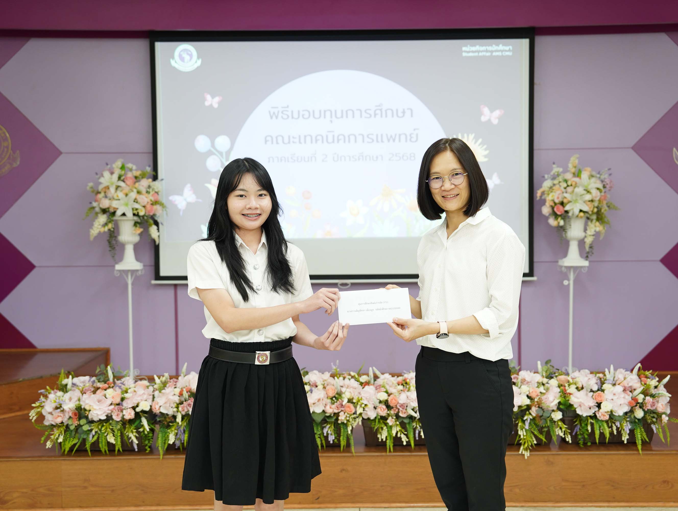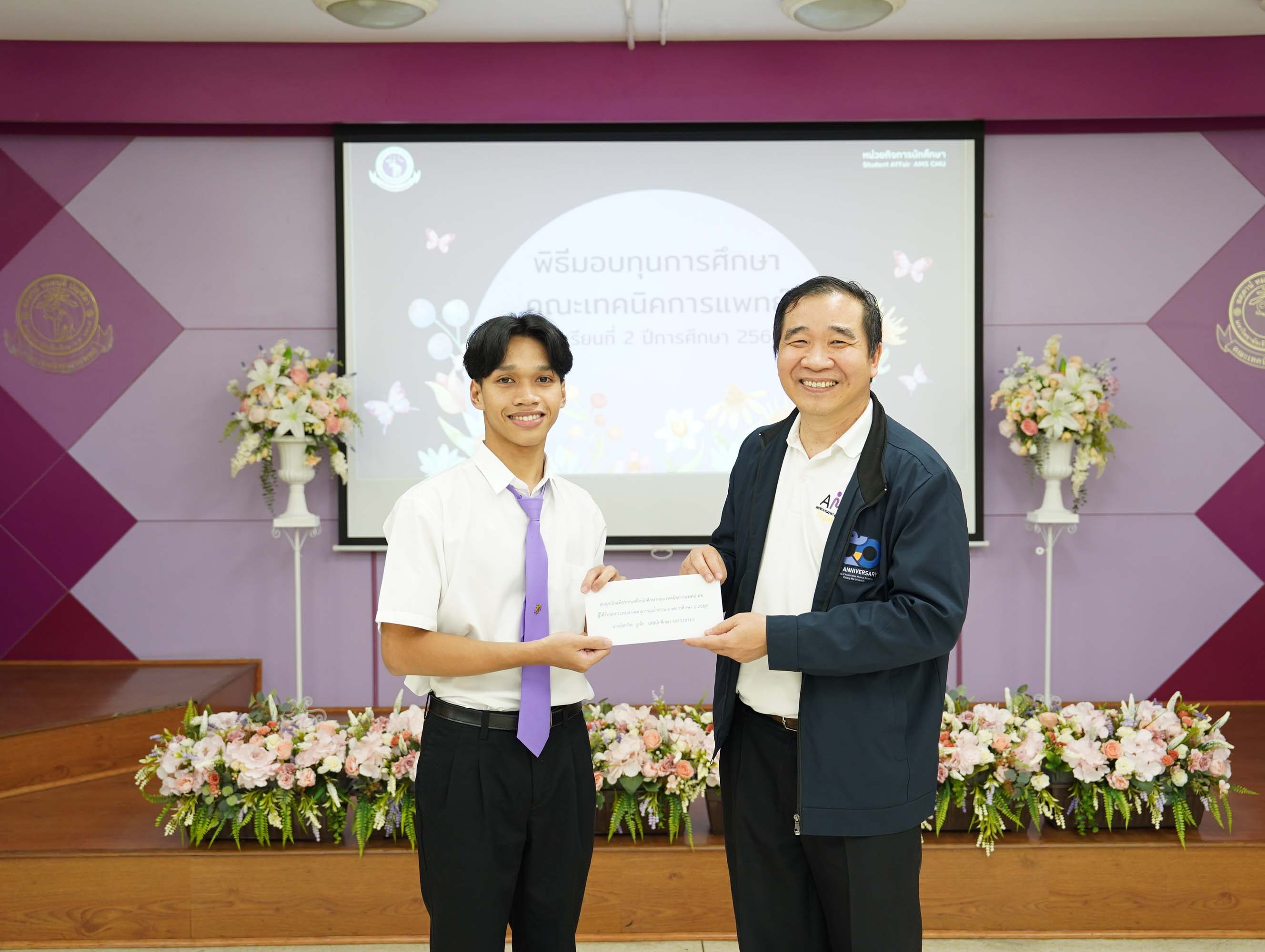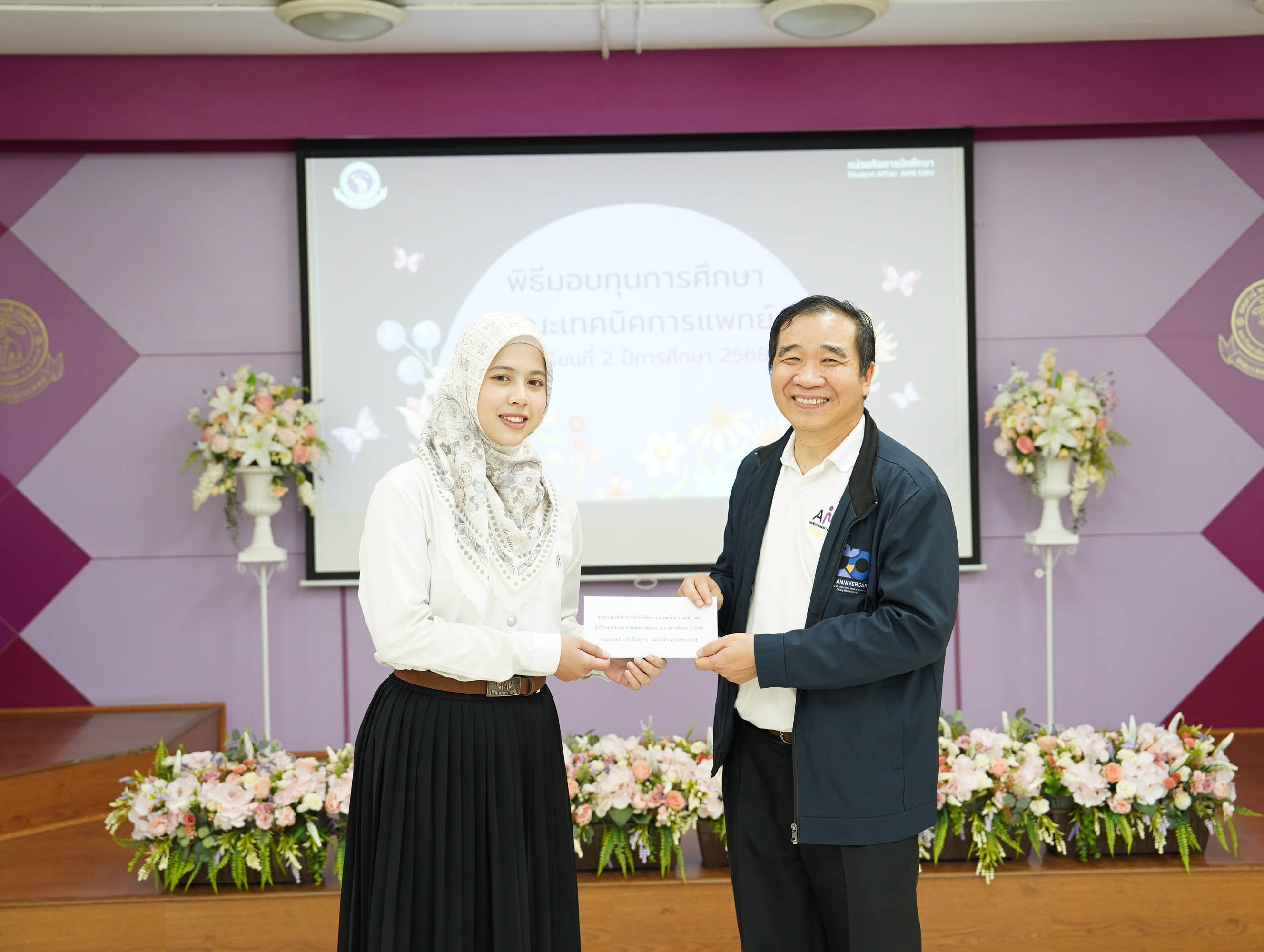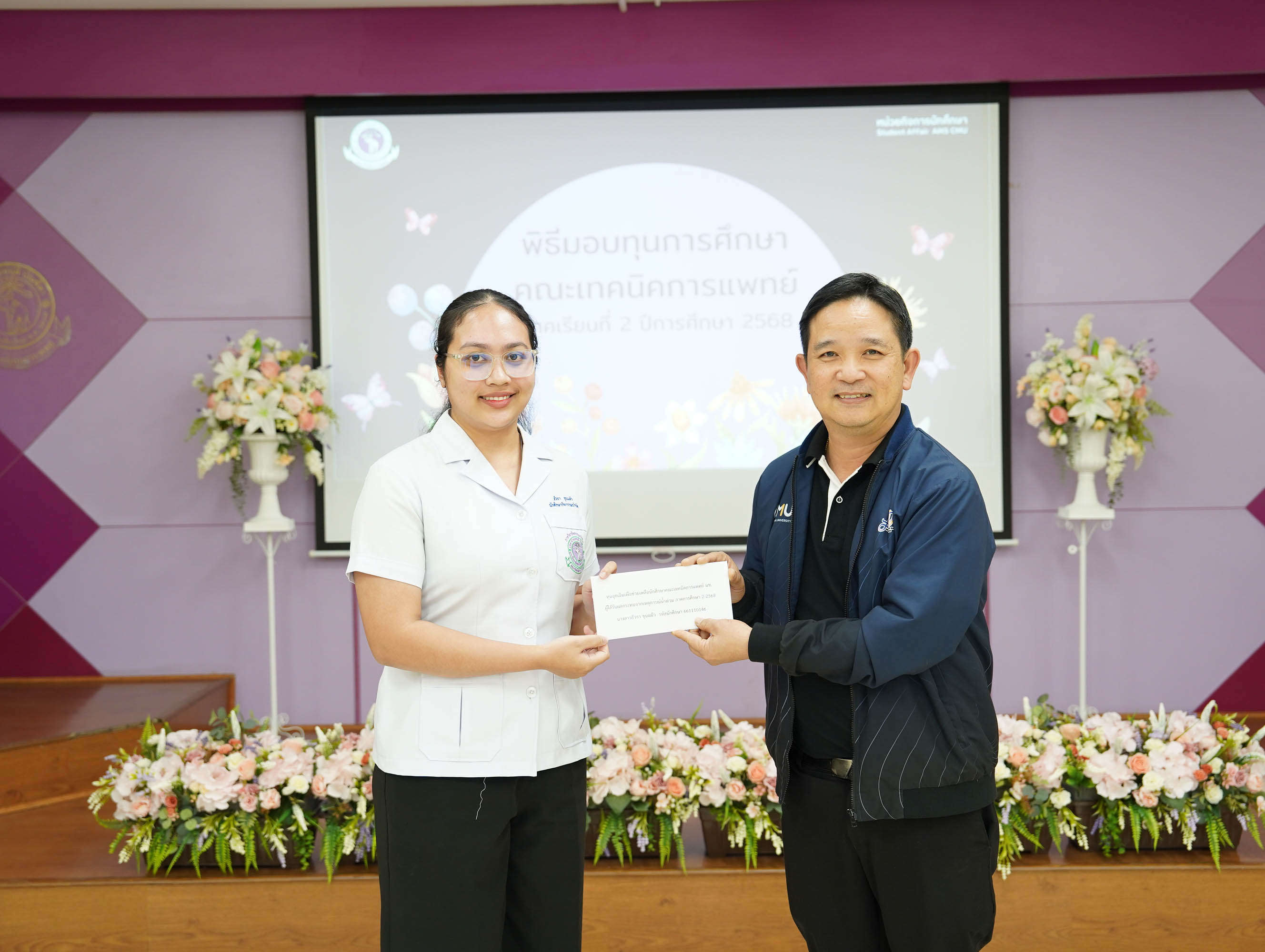 Professor Dr. Sakorn Pornprasert, Dean of the Faculty of Associated Medical Sciences, Chiang Mai University, presided over the Scholarship Award Ceremony for the second semester of the academic year 2025. A total of 24 students were selected to receive scholarships through the faculty’s selection committee.