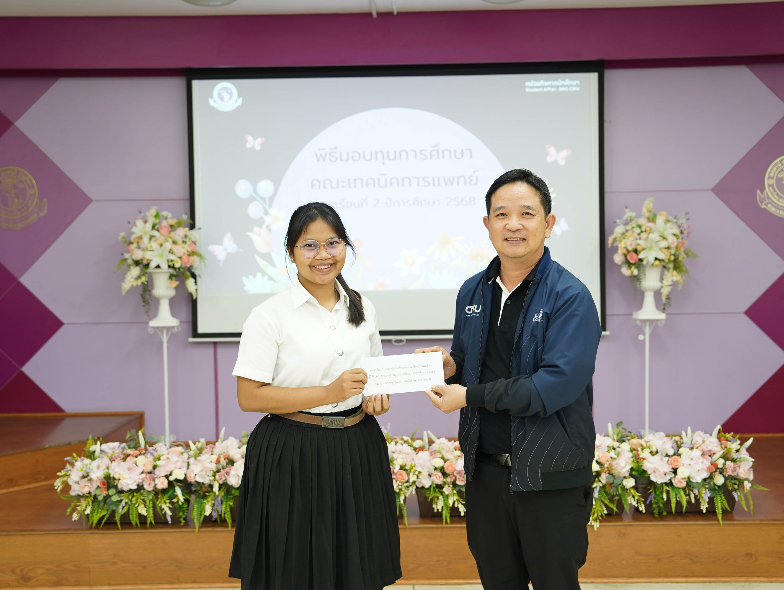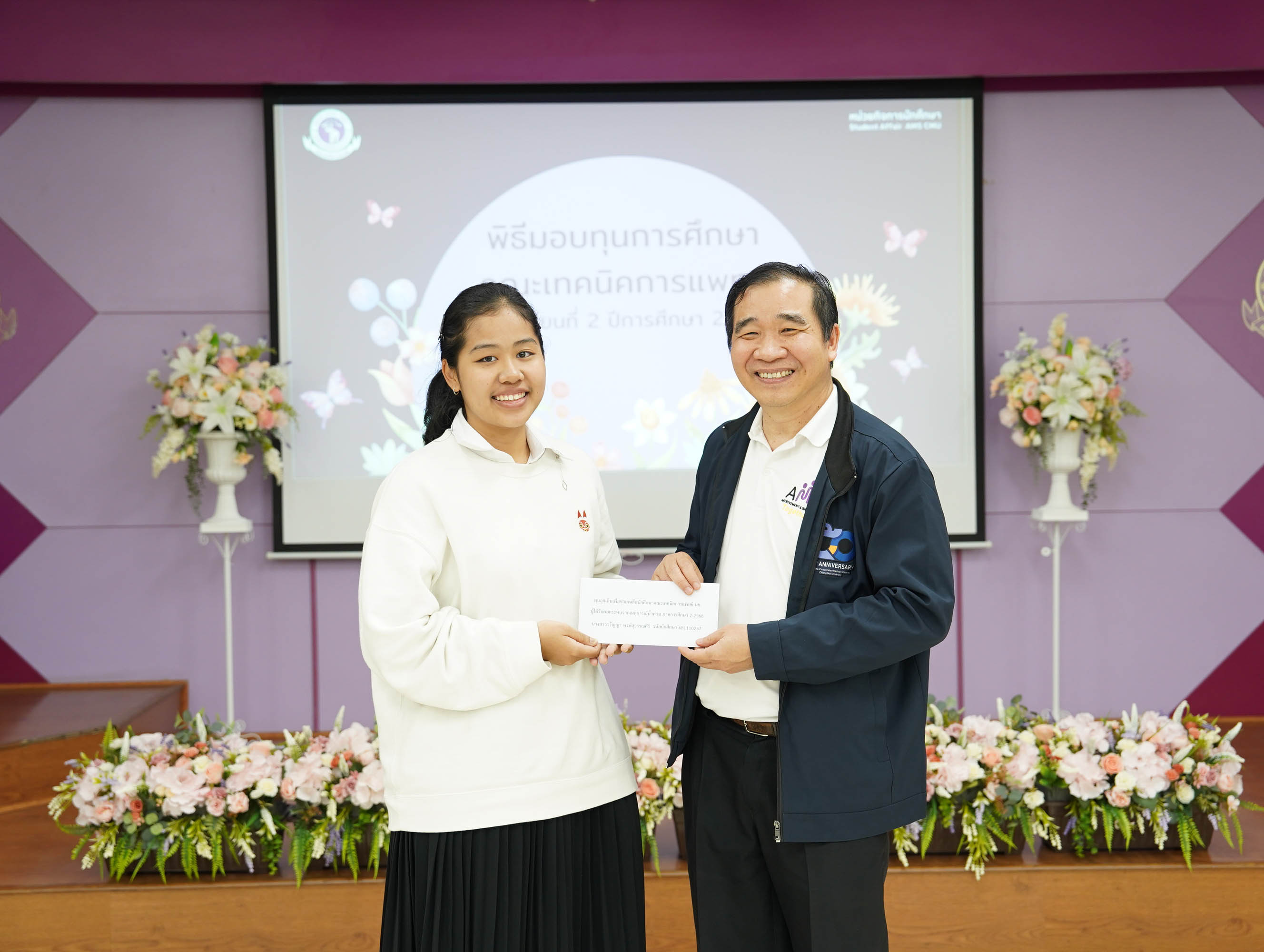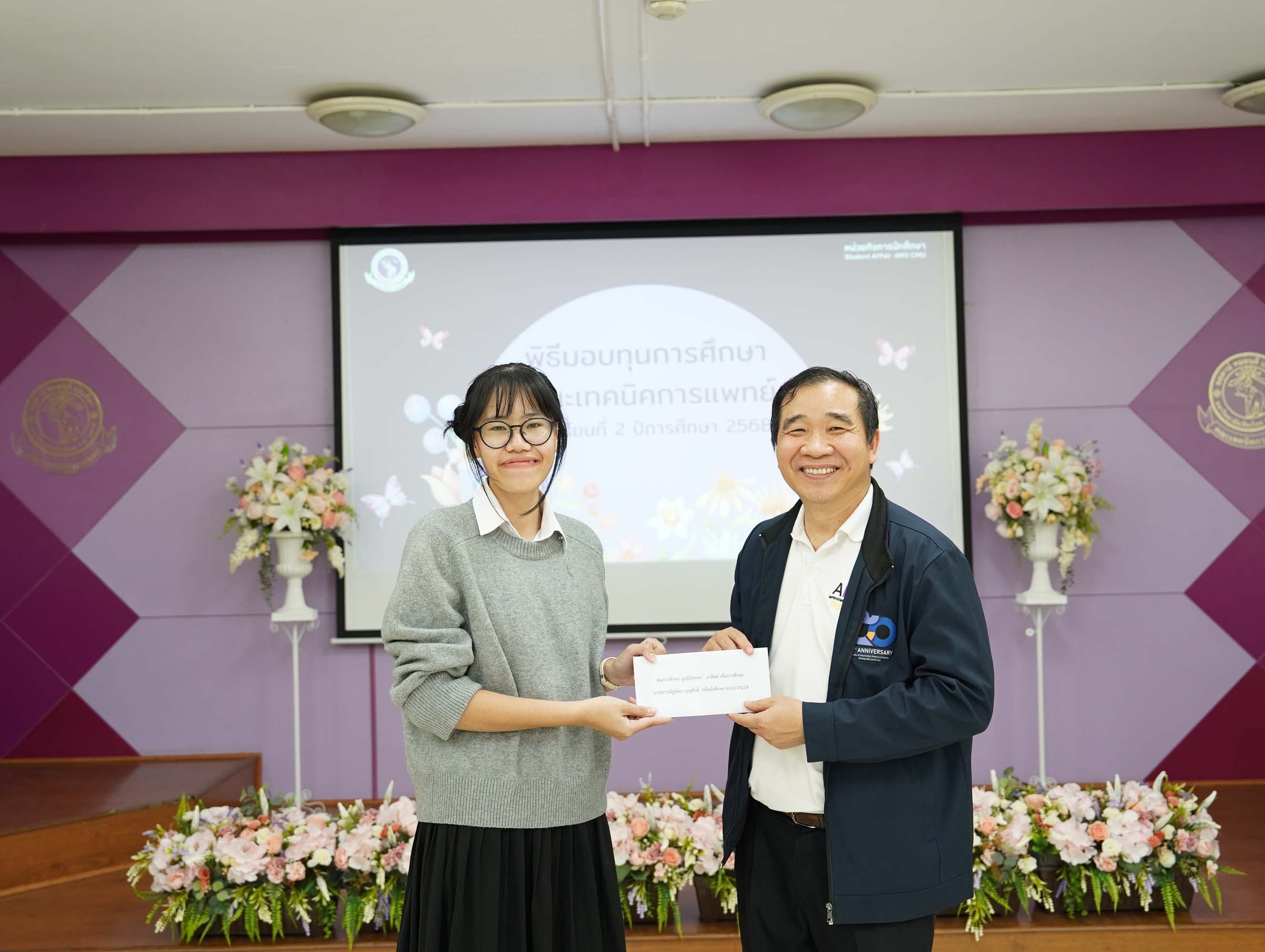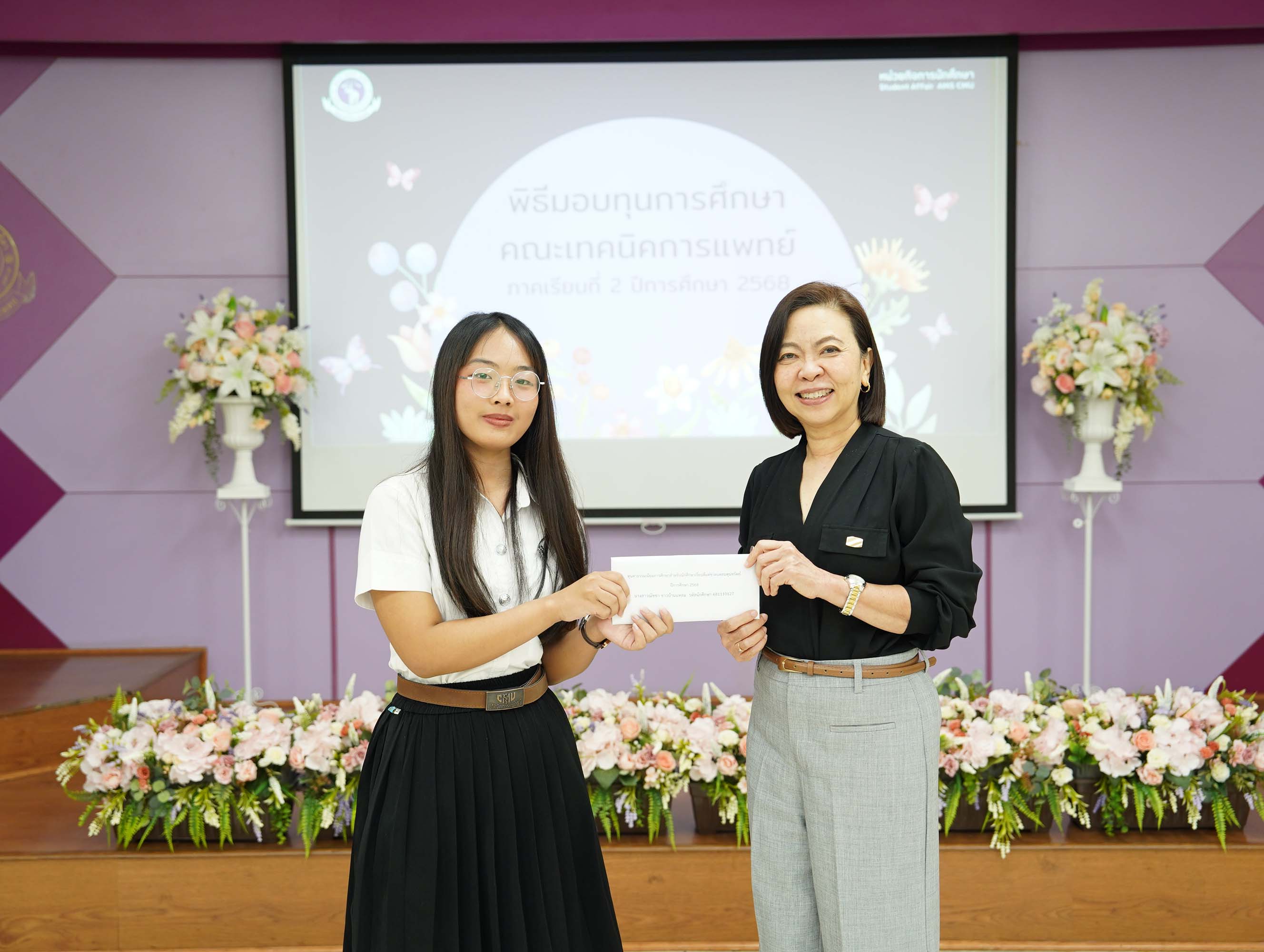 Professor Dr. Sakorn Pornprasert, Dean of the Faculty of Associated Medical Sciences, Chiang Mai University, presided over the Scholarship Award Ceremony for the second semester of the academic year 2025. A total of 24 students were selected to receive scholarships through the faculty’s selection committee.