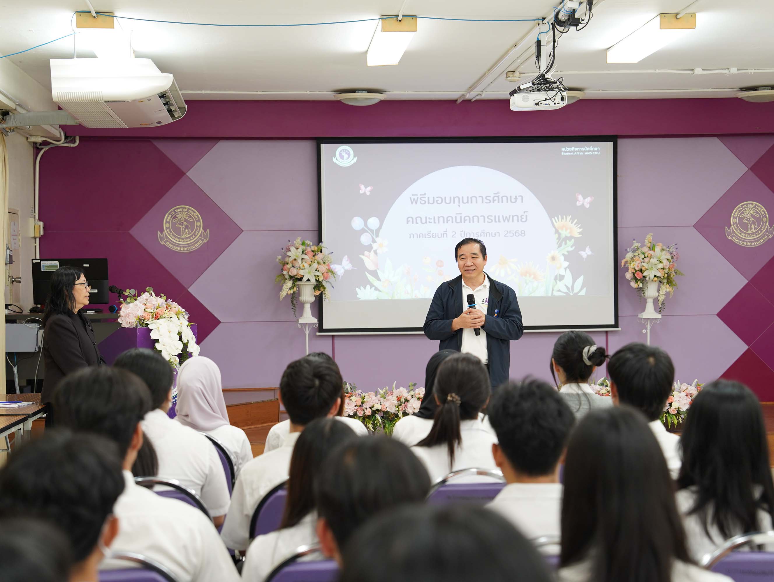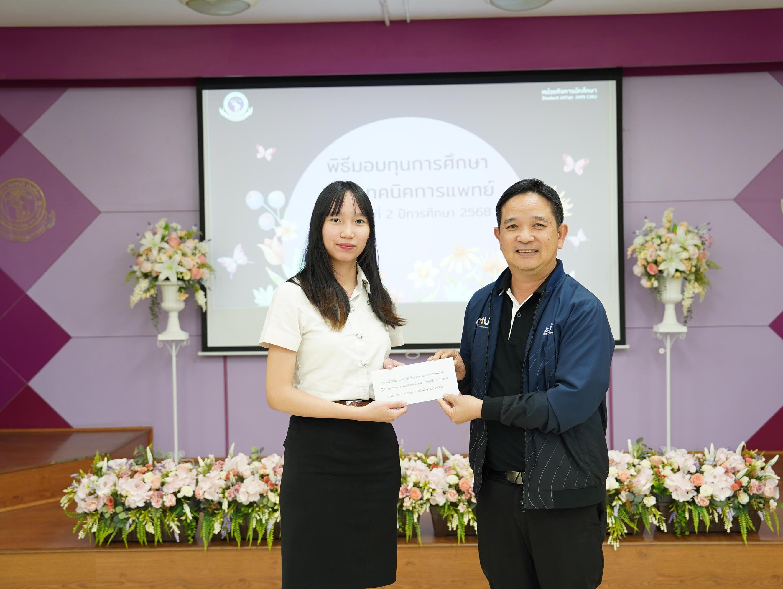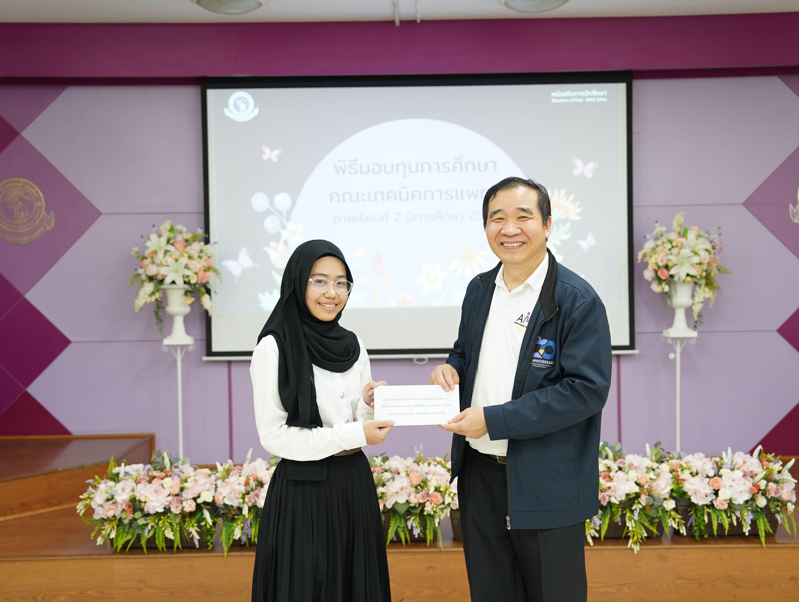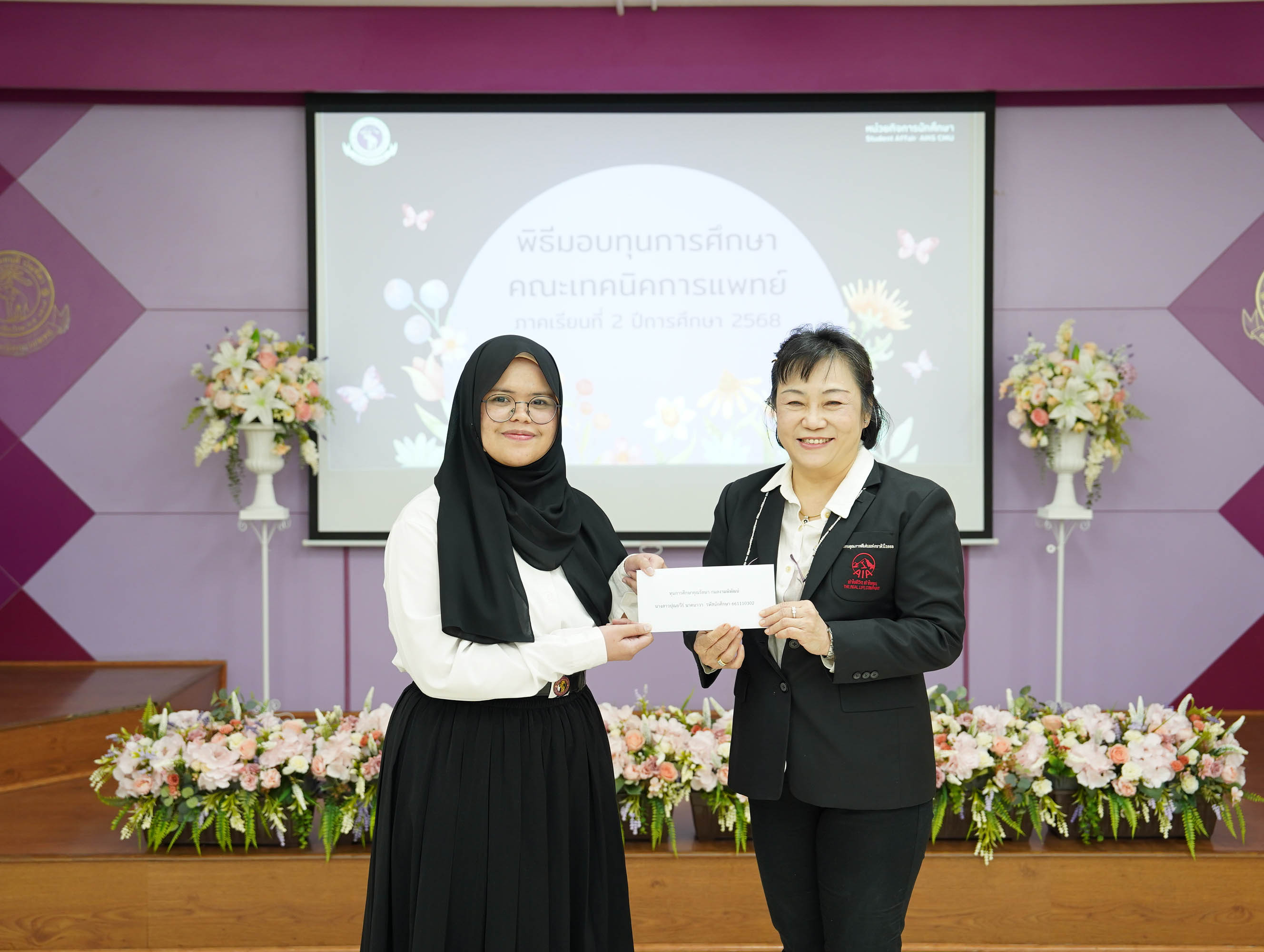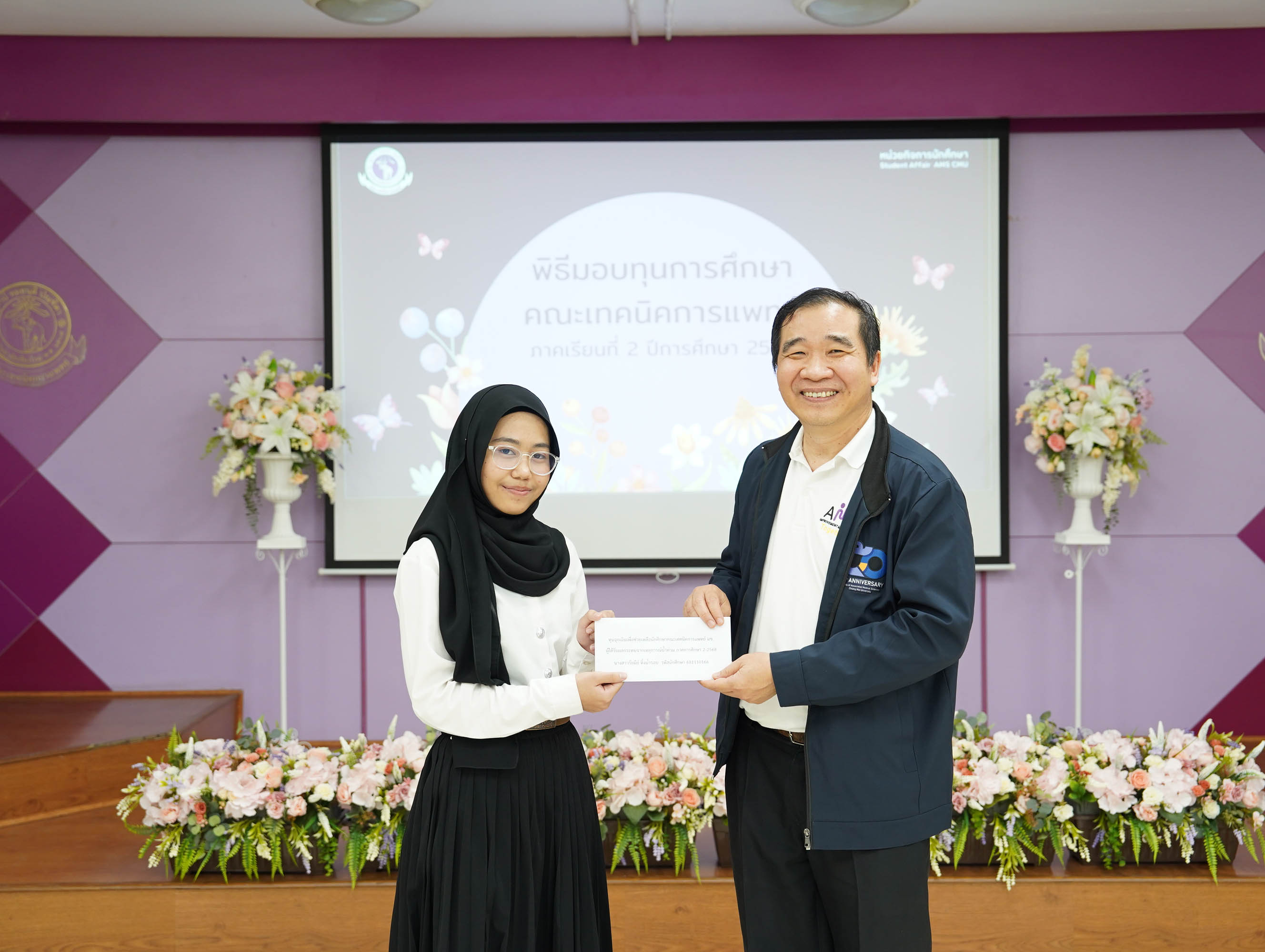 Professor Dr. Sakorn Pornprasert, Dean of the Faculty of Associated Medical Sciences, Chiang Mai University, presided over the Scholarship Award Ceremony for the second semester of the academic year 2025. A total of 24 students were selected to receive scholarships through the faculty’s selection committee.