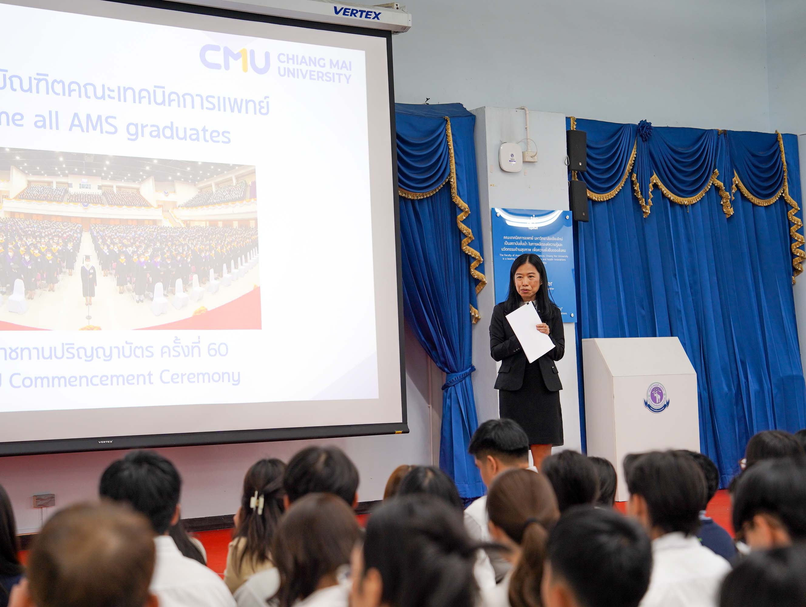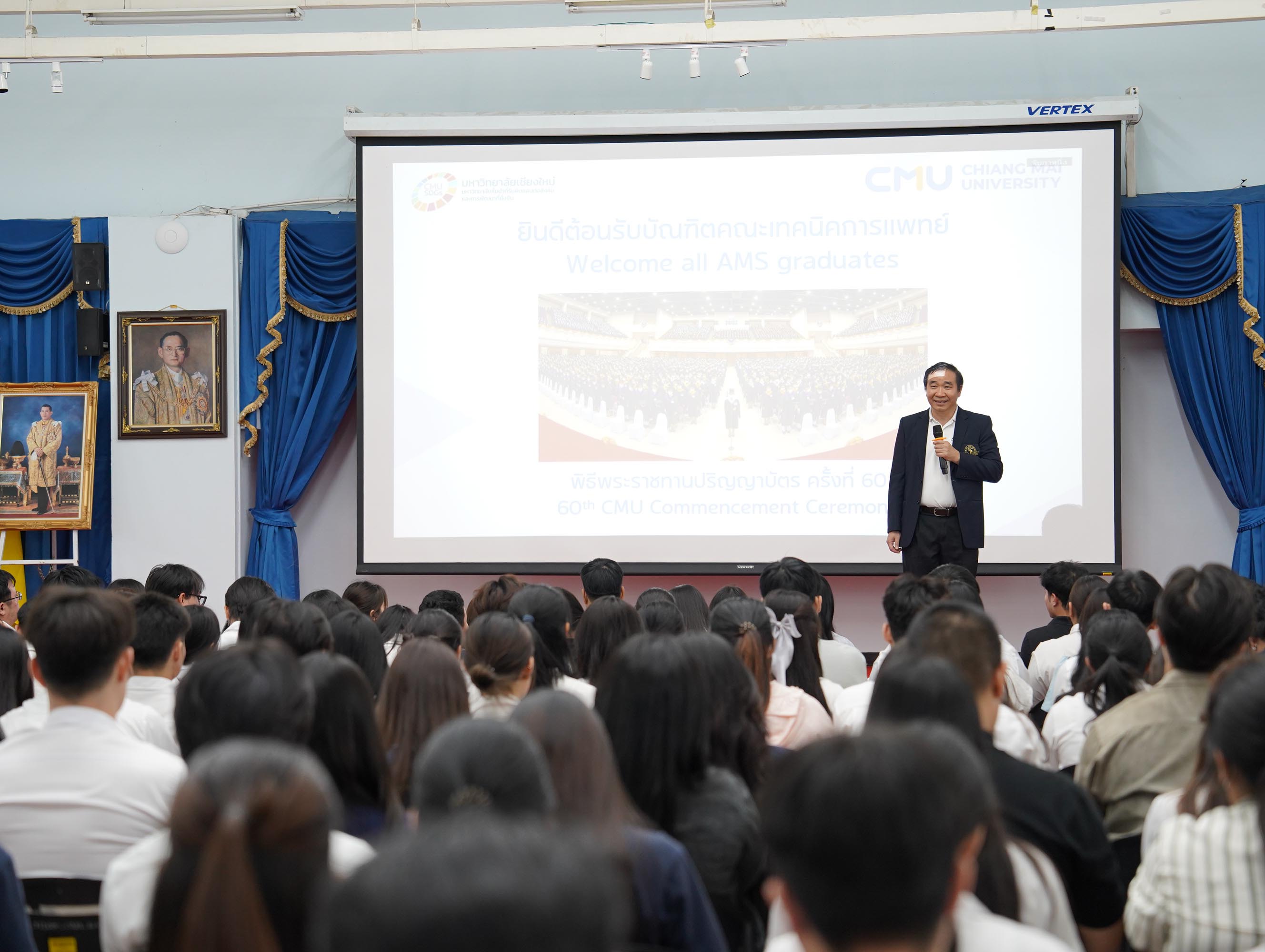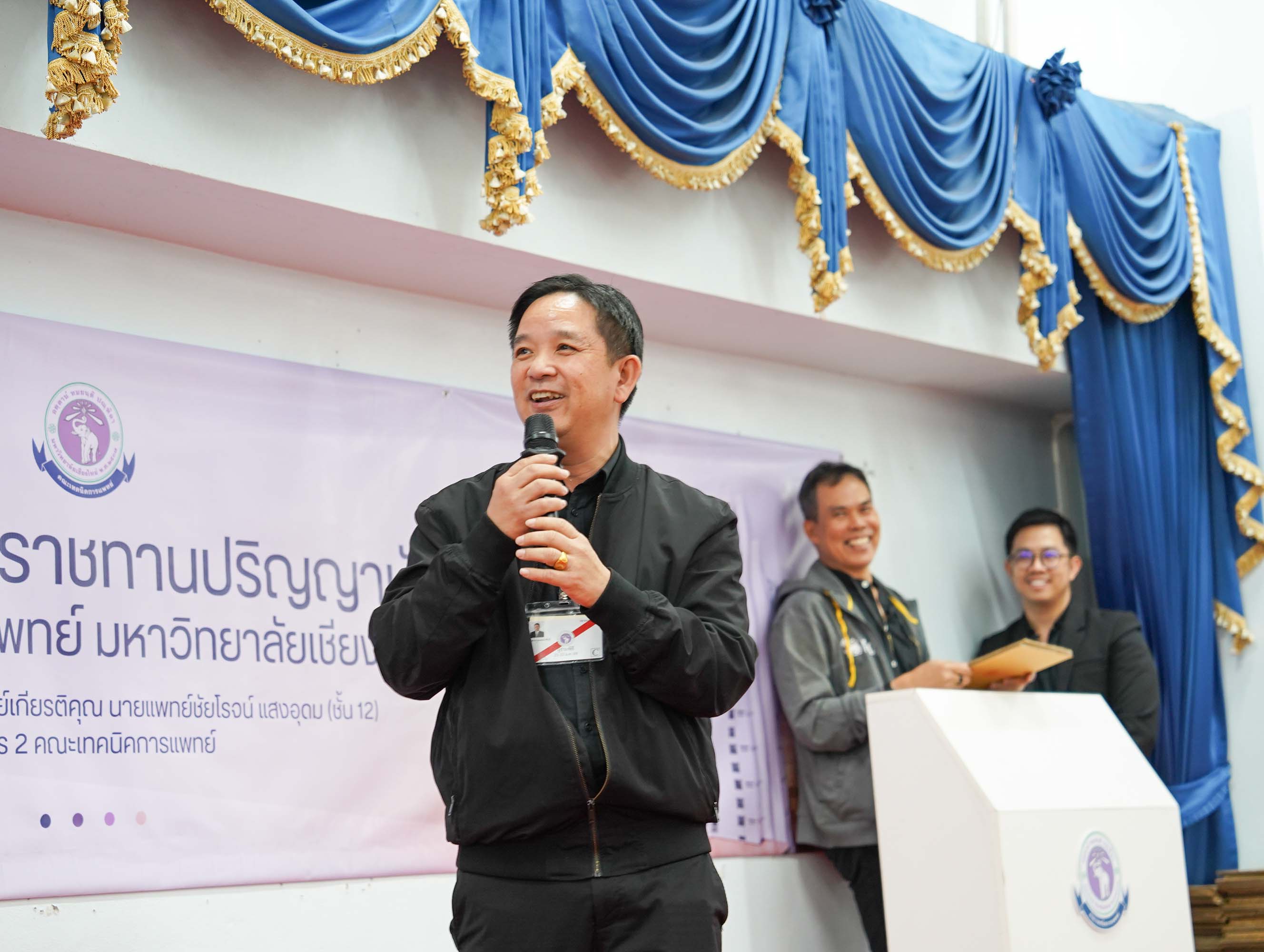 คณะเทคนิคการแพทย์ มหาวิทยาลัยเชียงใหม่ จัดงานพิธีฝึกซ้อมบัณฑิตเข้ารับพระราชทานปริญญาบัตร และงานรับขวัญบัณฑิตคณะเทคนิคการแพทย์ รุ่นที่ 60 โดยมี ศาสตราจารย์ ดร.สาคร พรประเสริฐ คณบดี ผู้ช่วยศาสตราจารย์ ดร.เพ็ญนภา คลังสิรศิริกุล รองคณบดี และผู้ช่วยศาสตราจารย์ ดร.วาสนา ศิริรังษี นายกสมาคมศิษย์เก่าคณะเทคนิคการแพทย์ กล่าวต้อนรับและแสดงความยินดีกับบัณฑิตใหม่ ทั้งนี้ ผู้แทนบัณฑิต กล่าวขอบคุณและมอบเงินบริจาคเพื่อนำไปพัฒนาคณะ จำนวน 12,999.99 บาท ณ ห้องประชุม ศ.เกียรติคุณ นพ.ชัยโรจน์ แสงอุดม อาคาร 2 คณะเทคนิคการแพทย์ มหาวิทยาลัยเชียงใหม่ เมื่อวันที่ 18 มกราคม 2569