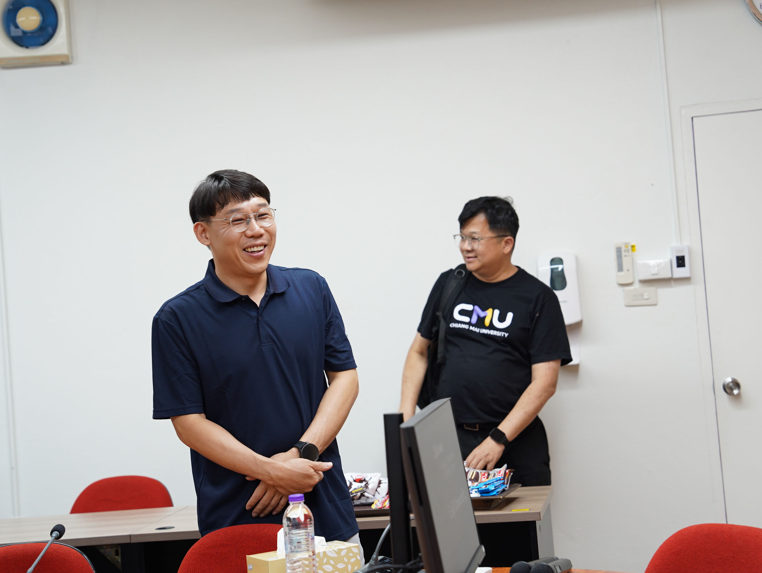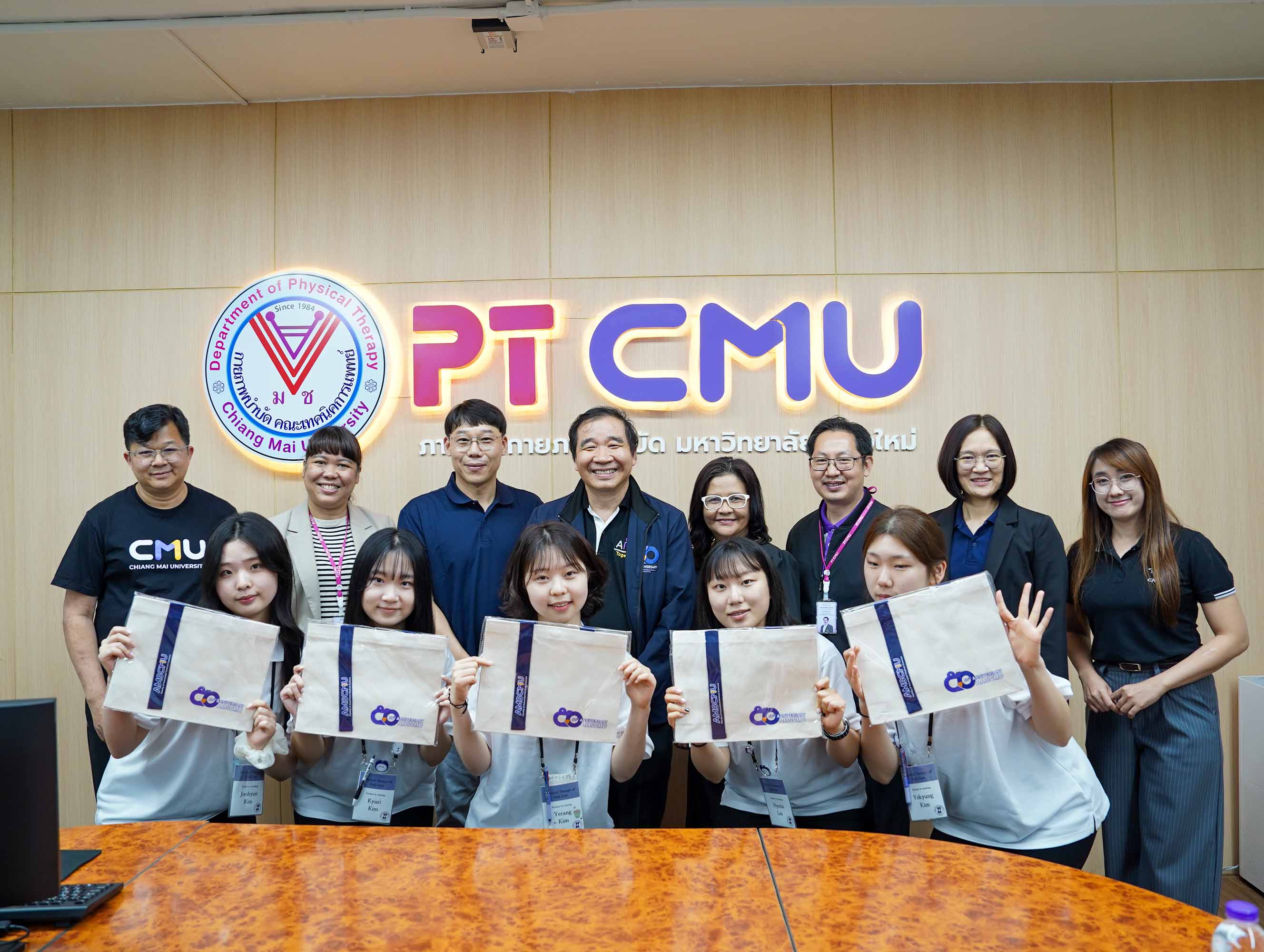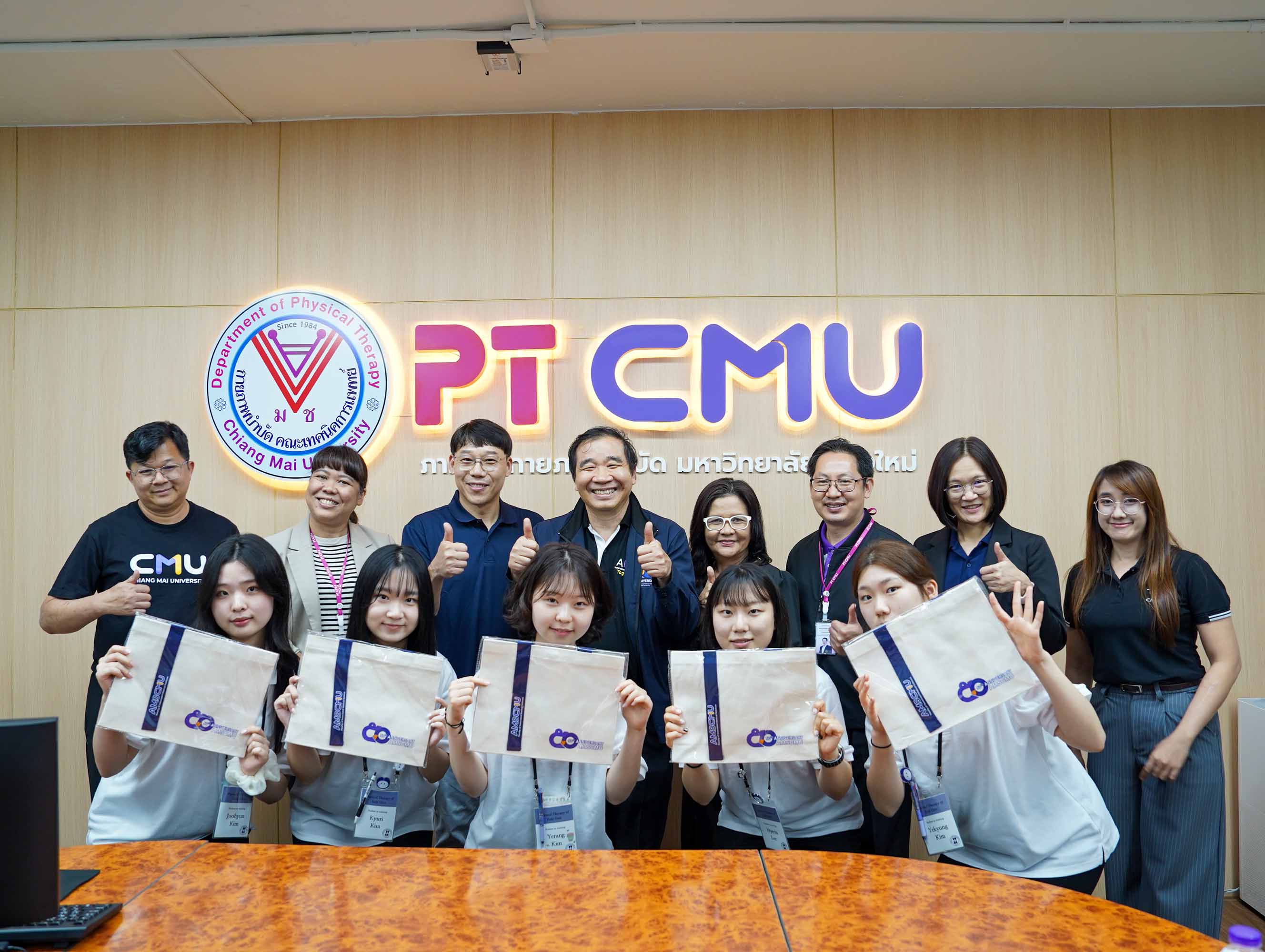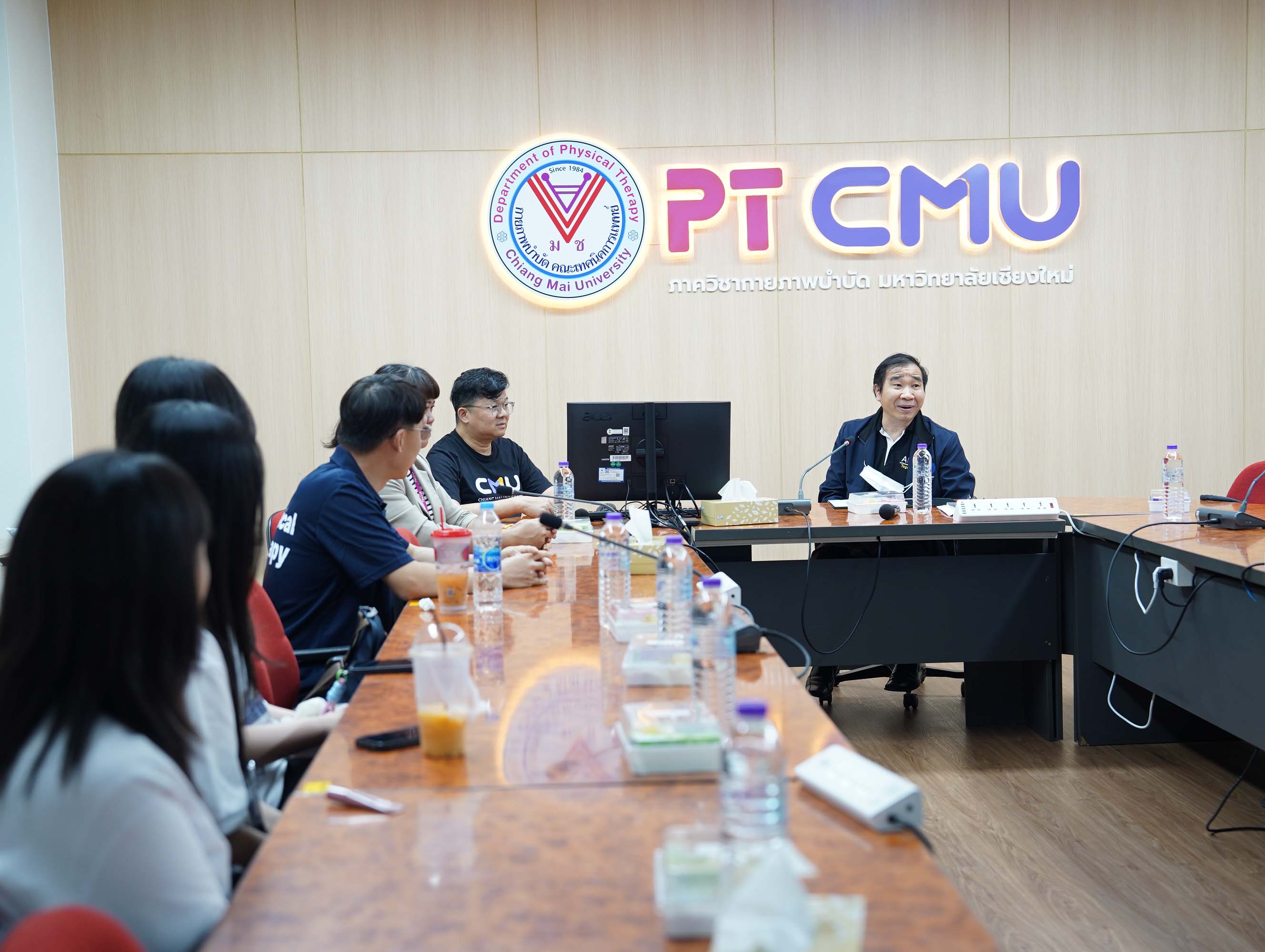ศาสตราจารย์ ดร.สาคร พรประเสริฐ คณบดี พร้อมด้วย รองศาสตราจารย์ ดร.อาทิตย์ พวงมะลิ รองคณบดี รองศาสตราจารย์ ดร.รัชดา เครสซี่ ผู้ช่วยคณบดี รองศาตราจารย์ ดร.สุรีพร อุทัยคุปต์ หัวหน้าภาควิชากายภาพบำบัด และผู้ช่วยศาสตราจารย์ ดร.เสาวลักษณ์ เดชะ อาจารย์ประจำภาควิชากายภาพบำบัด คณะเทคนิคการแพทย์ มหาวิทยาลัยเชียงใหม่ ให้การต้อนรับ Associate Professor Wonjong Yu และนักศึกษา จาก Eulji University ประเทศเกาหลีใต้ ในโอกาสมาเยือนภาควิชากายภาพบำบัด เพื่อแลกเปลี่ยนเรียนรู้เกี่ยวกับการศึกษาและการปฏิบัติทางคลินิกในสาขากายภาพบำบัด ระหว่างวันที่ 26 มกราคม 2569 - 6 กุมภาพันธ์ 2569 ณ ห้องประชุมภาควิชากายภาพบำบัด ชั้น 9 อาคาร 2 คณะเทคนิคการแพทย์ มหาวิทยาลัยเชียงใหม่ เมื่อวันอังคารที่ 27 มกราคม 2569