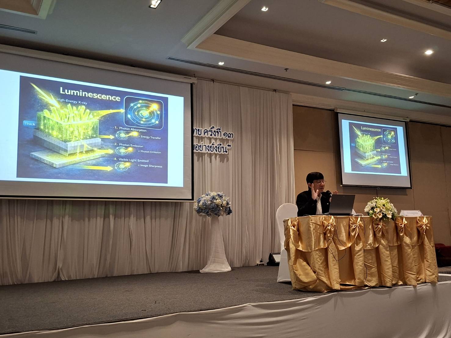 ในการนี้ รองศาสตราจารย์ ดร.สุชาติ โกทันย์ ได้รับเกียรติบรรยายในหัวข้อ Scintillation-Based Radiation Imaging: Mechanisms and Application (ผลึกเรืองแสงเพื่อการสร้างภาพรังสี: จากกลไกสู่การใช้งาน)