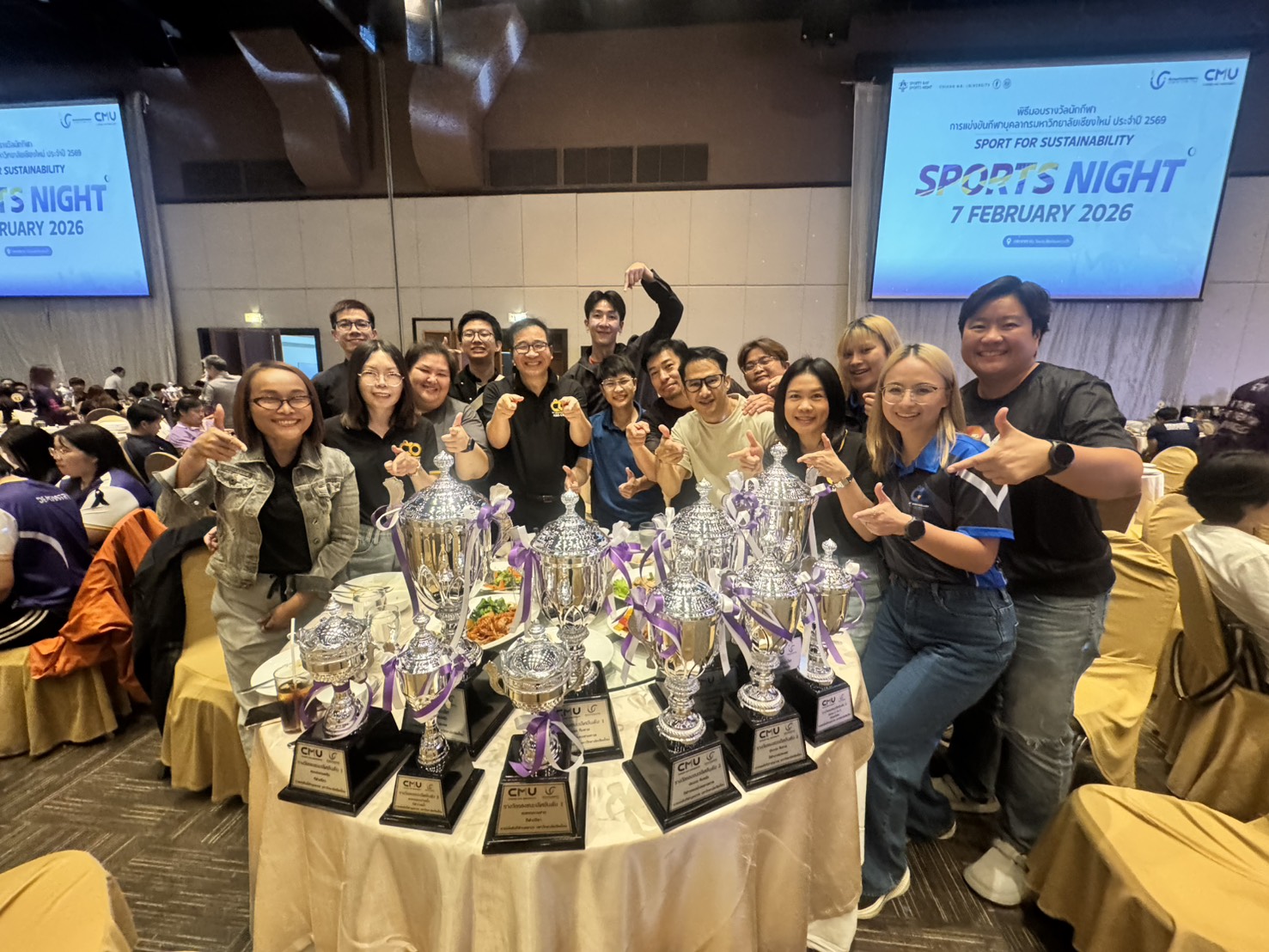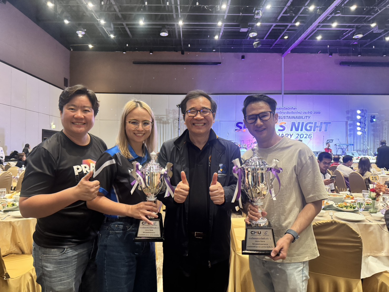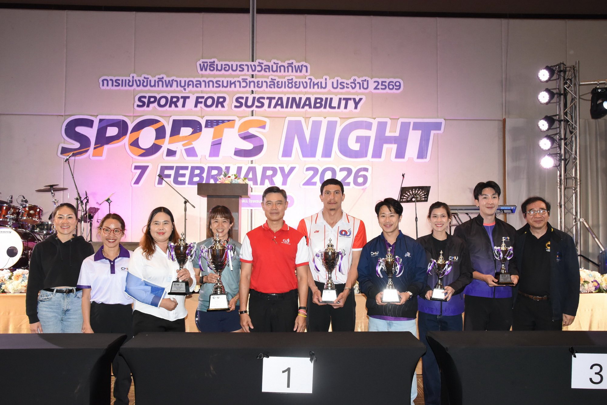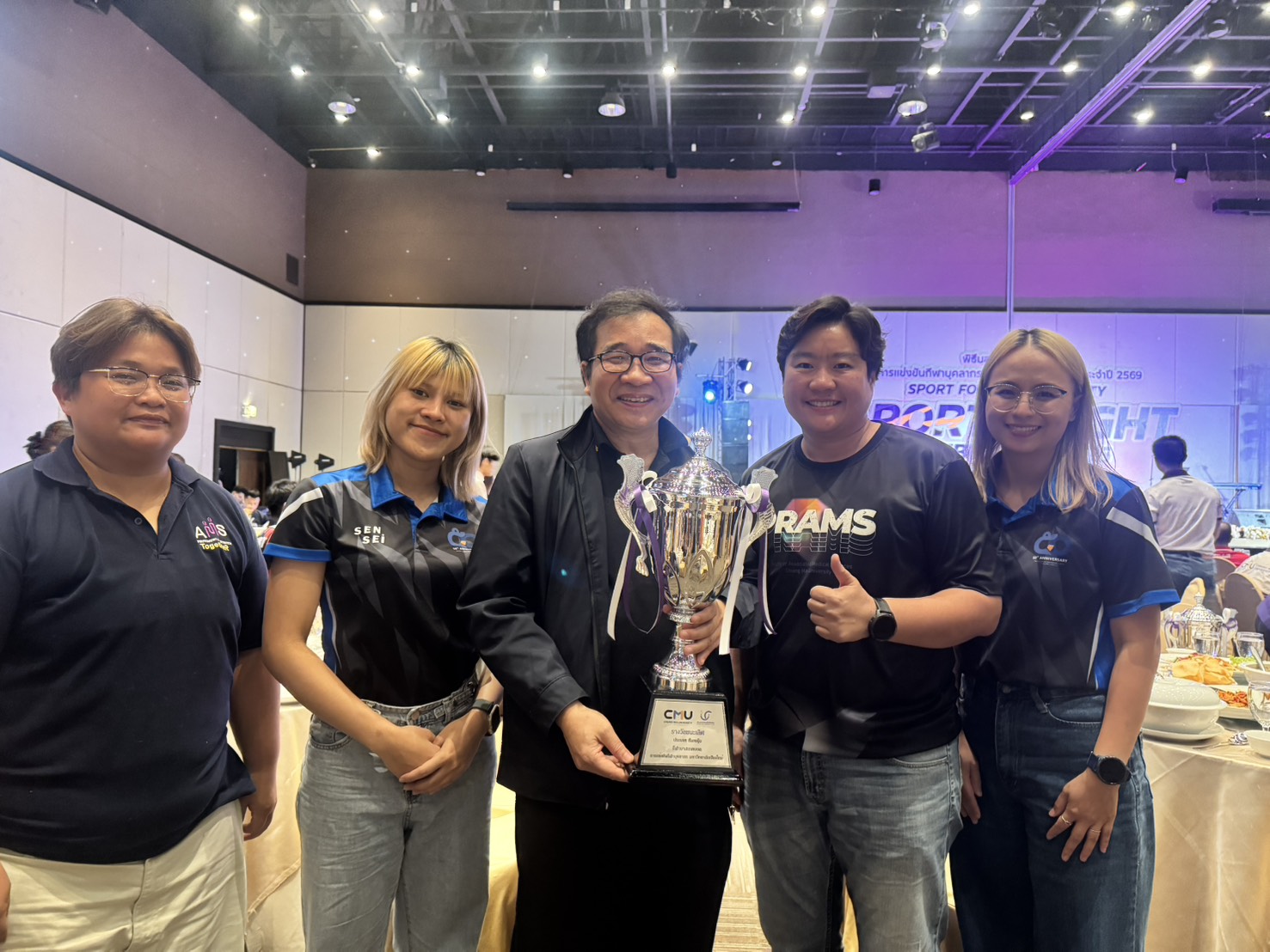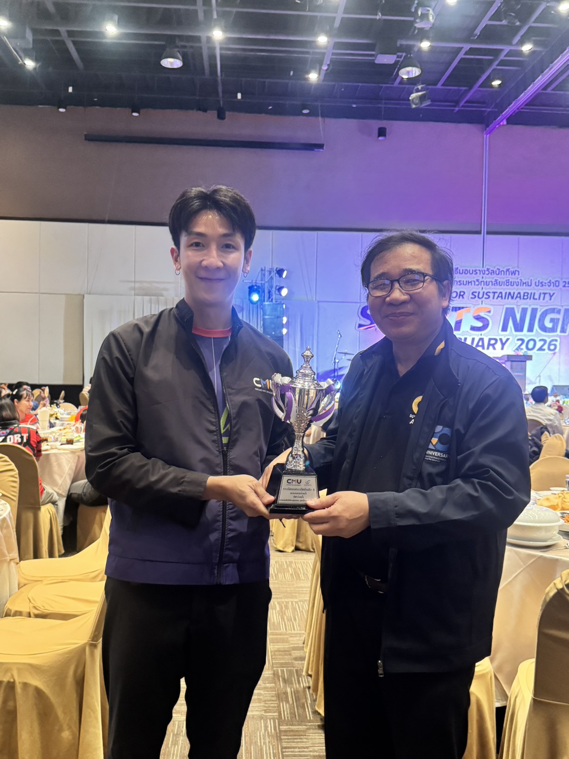 คณะเทคนิคการแพทย์ มหาวิทยาลัยเชียงใหม่ นำโดย ศาสตราจารย์ (เชี่ยวชาญพิเศษ) ดร.สาคร พรประเสริฐ คณบดี ผู้ช่วยศาสตราจารย์ ดร.สุรัชณีย์ พัดงาม ผู้ช่วยคณบดี พร้อมด้วย นักกีฬาบุคลากรคณะเทคนิคการแพทย์ มหาวิทยาลัยเชียงใหม่ ร่วมรับรางวัลในการแข่งขันกีฬาบุคลากรมหาวิทยาลัยเชียงใหม่ ประจำปี 2569 (CMU Sports Night 2026) โดยมี ศาสตราจารย์ ดร.นายแพทย์ พงษ์รักษ์ ศรีบัณฑิตมงคล อธิการบดีมหาวิทยาลัยเชียงใหม่ เป็นประธานในพิธี ณ ห้องประชุมศูนย์ประชุมนานาชาติ โรงแรมเชียงใหม่แกรนด์วิว วันเสาร์ที่ 7 กุมภาพันธ์ 2569