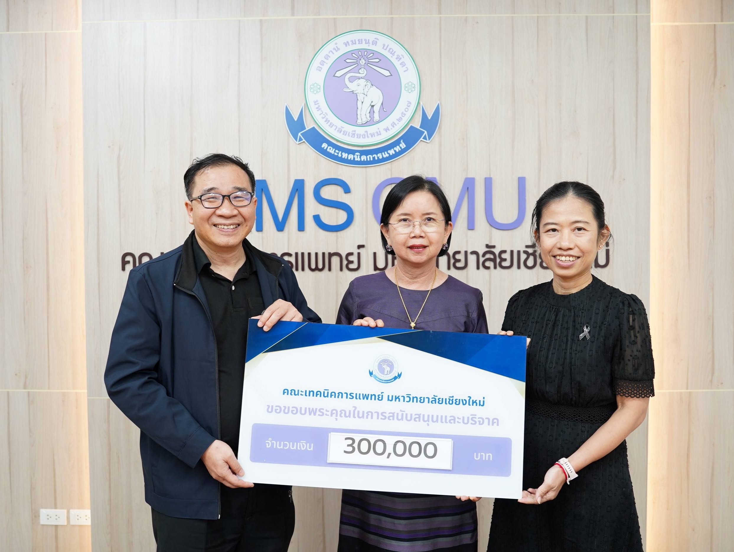 สมาคมศิษย์เก่าคณะเทคนิคการแพทย์ มหาวิทยาลัยเชียงใหม่ นำโดย ผู้ช่วยศาสตราจารย์ ดร.วาสนา ศิริรังษี นายกสมาคมฯ มอบเงินจำนวน 300,000 บาท เพื่อสมทบทุนโครงการปรับปรุงห้องประชุมและห้องบรรยายของคณะเทคนิคการแพทย์ มหาวิทยาลัยเชียงใหม่ โดยมี ศาสตราจารย์ (เชี่ยวชาญพิเศษ) ดร.สาคร พรประเสริฐ คณบดี และ ผู้ช่วยศาสตราจารย์ ดร.เพ็ญนภา คลังสินศิริกุล รองคณบดี คณะเทคนิคการแพทย์ มหาวิทยาลัยเชียงใหม่ เป็นผู้รับมอบ ณ ห้องประชุมชั้น 1 อาคาร 2 คณะเทคนิคการแพทย์ มหาวิทยาลัยเชียงใหม่ เมื่อวันพุธที่ 11 กุมภาพันธ์ 2569