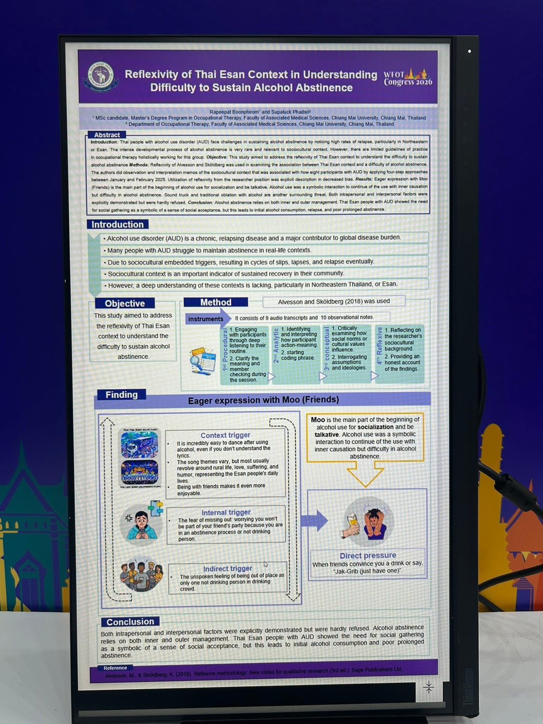 - “Reflexivity of Thai Esan Context in Understanding Difficulty to Sustain Alcohol Abstinence” (e-poster) Presented by: Ms. Rapeepat Boonphirom (Graduate student). Advisor: Dr. Supaluck Phadsri.