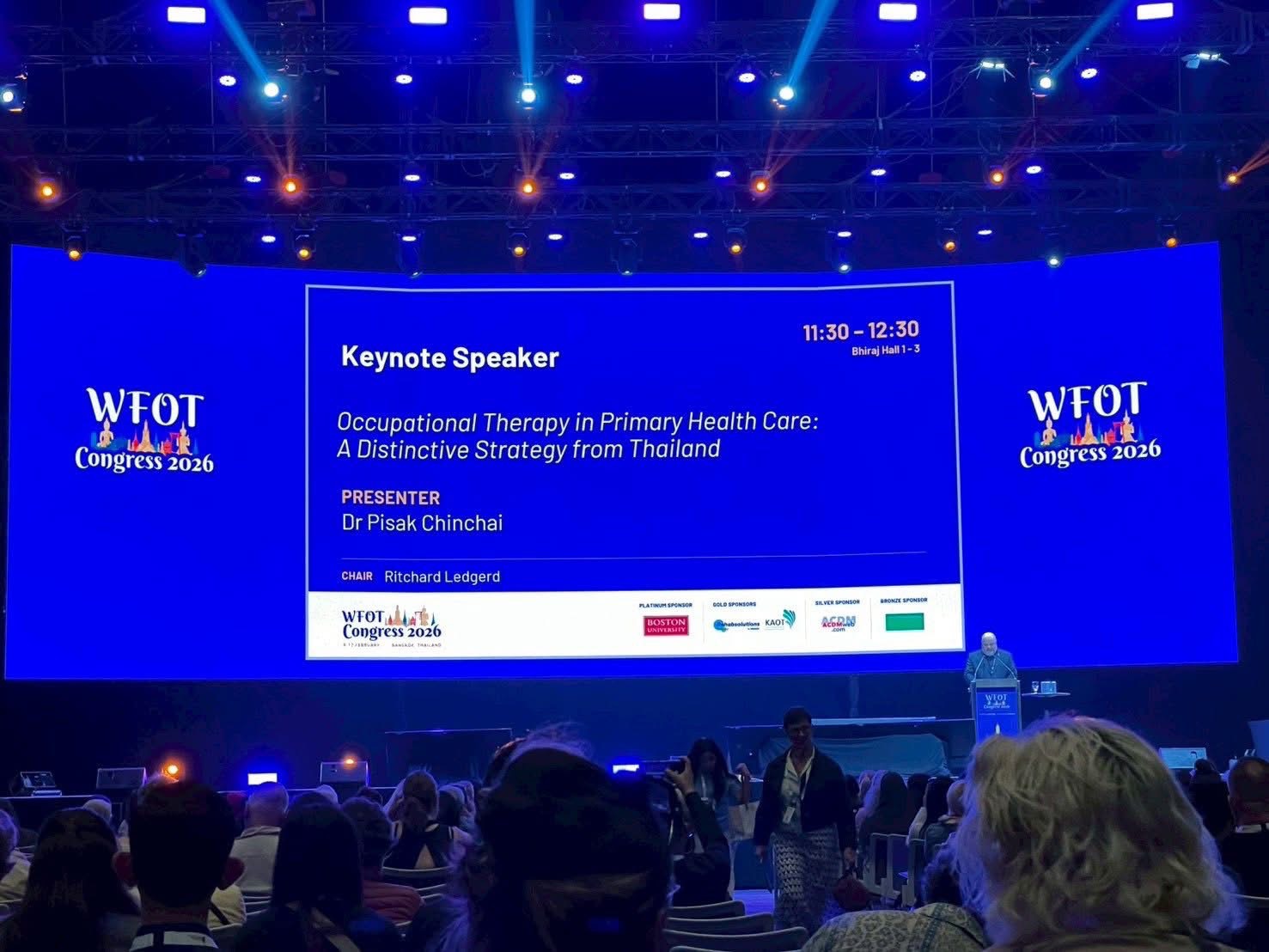 He delivered a special lecture on the topic: “Occupational Therapy in Primary Health Care: A Distinctive Strategy from Thailand.” The international congress was held from February 9–12, 2026, at the BITEC Exhibition and Convention Center, Bangna, Bangkok.