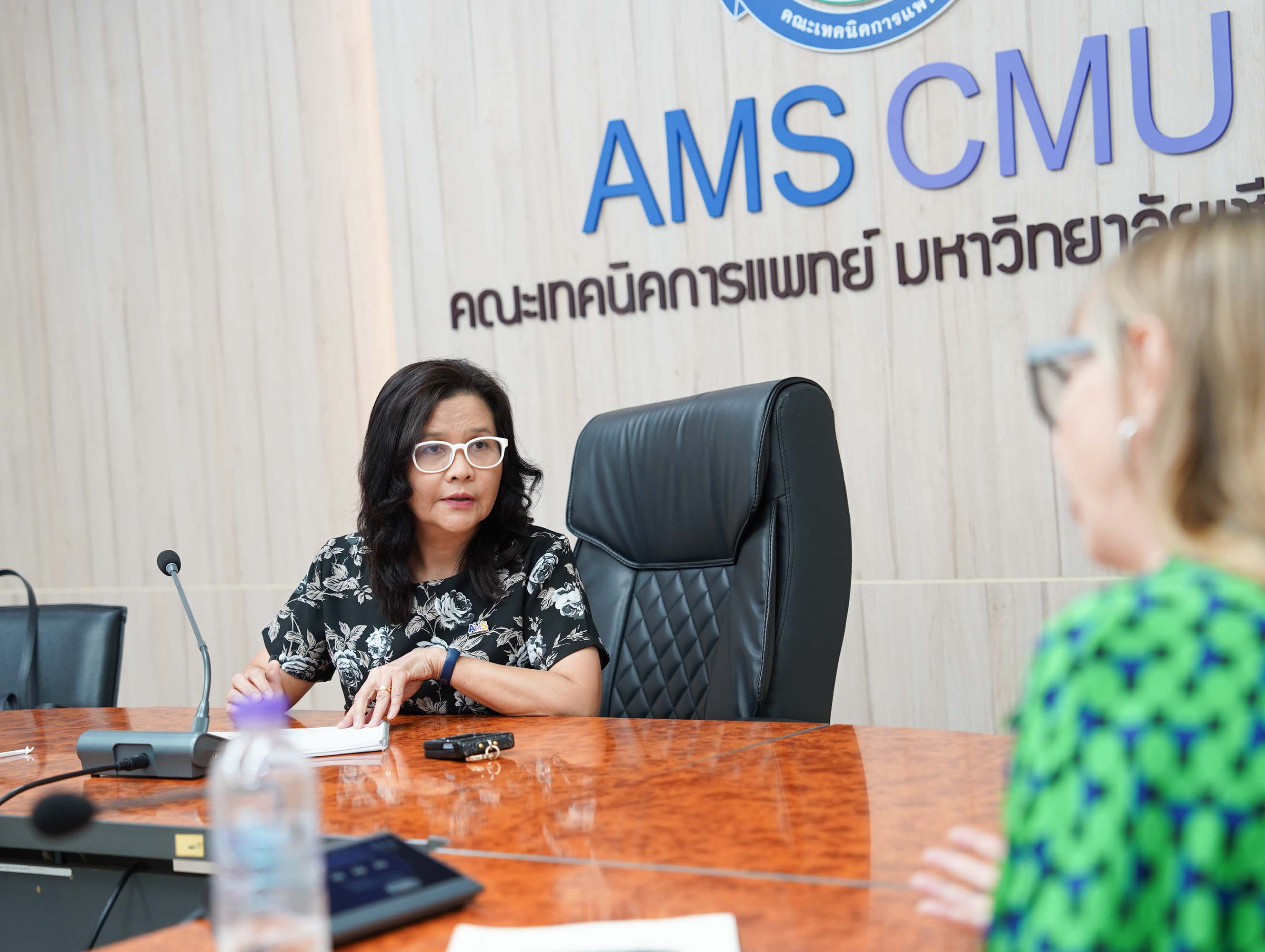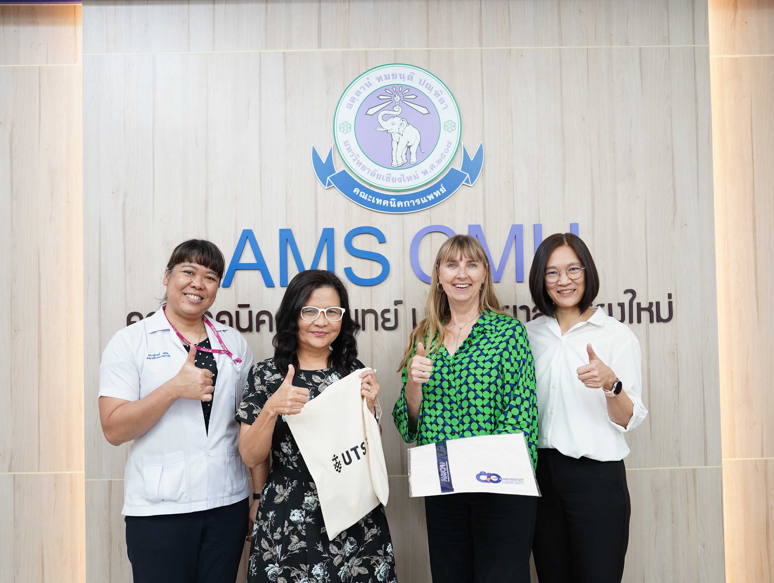 รองศาสตราจารย์ ดร.รัชดา เครสซี่ ผู้ช่วยคณบดี พร้อมด้วย รองศาสตราจารย์ ดร.สุรีพร อุทัยคุปต์ หัวหน้าภาควิชากายภาพบำบัด และ ผู้ช่วยศาสตราจารย์ ดร.เสาวลักษณ์ เดชะ อาจารย์ประจำภาควิชากายภาพบำบัด คณะเทคนิคการแพทย์ มหาวิทยาลัยเชียงใหม่ ให้การต้อนรับ Professor Angela Dawson, Associate Dean Research จาก Faculty of Health, University of Technology Sydney ประเทศออสเตรเลีย ในโอกาสเยี่ยมเยือนคณะฯ เพื่อแสวงหาความร่วมมือในการสร้างหลักสูตร Double Degree Program ร่วมกัน ณ ห้องประชุมชั้น 1 อาคาร 2 คณะเทคนิคการแพทย์ มหาวิทยาลัยเชียงใหม่ เมื่อวันจันทร์ที่ 2 มีนาคม 2569