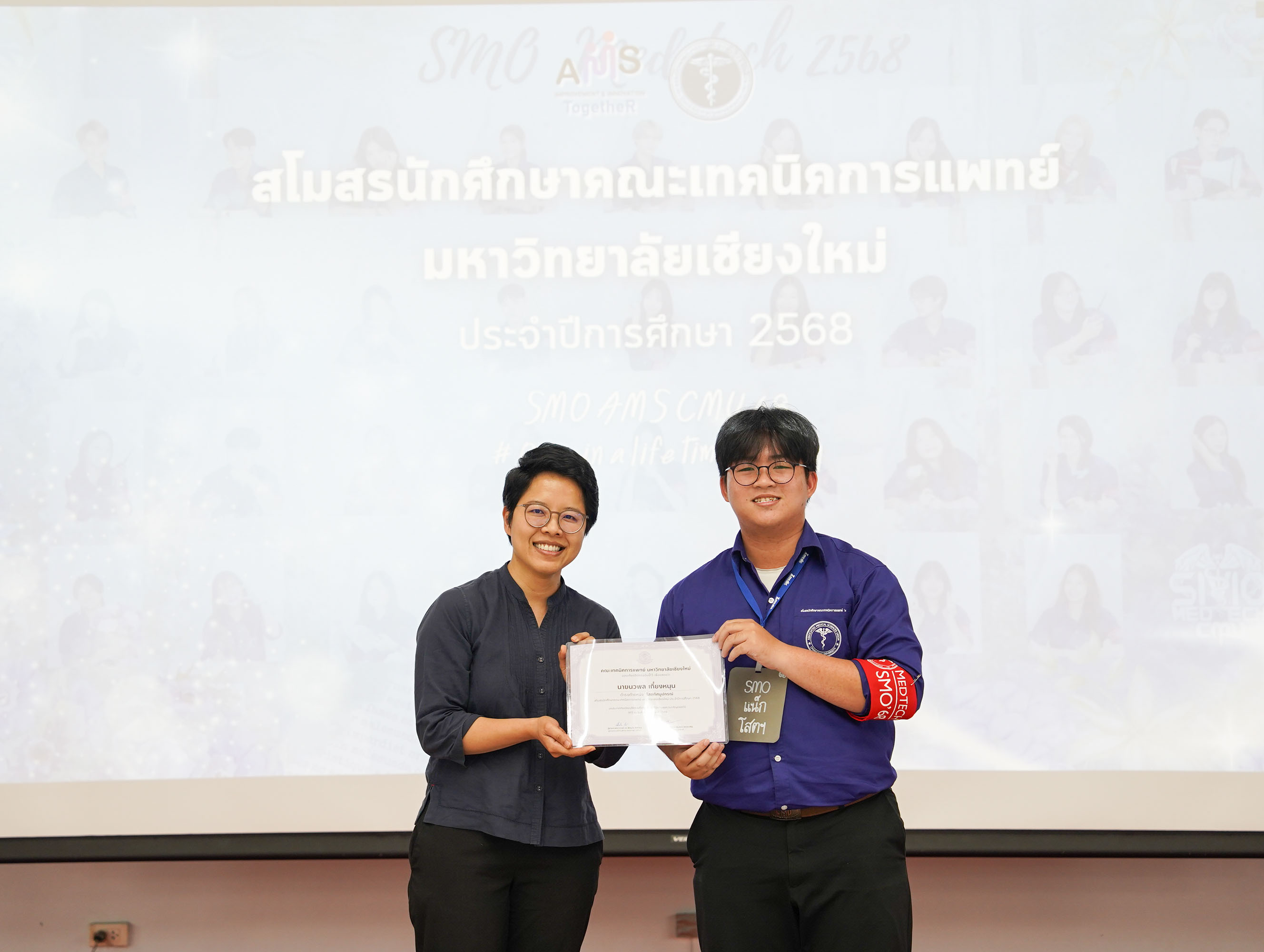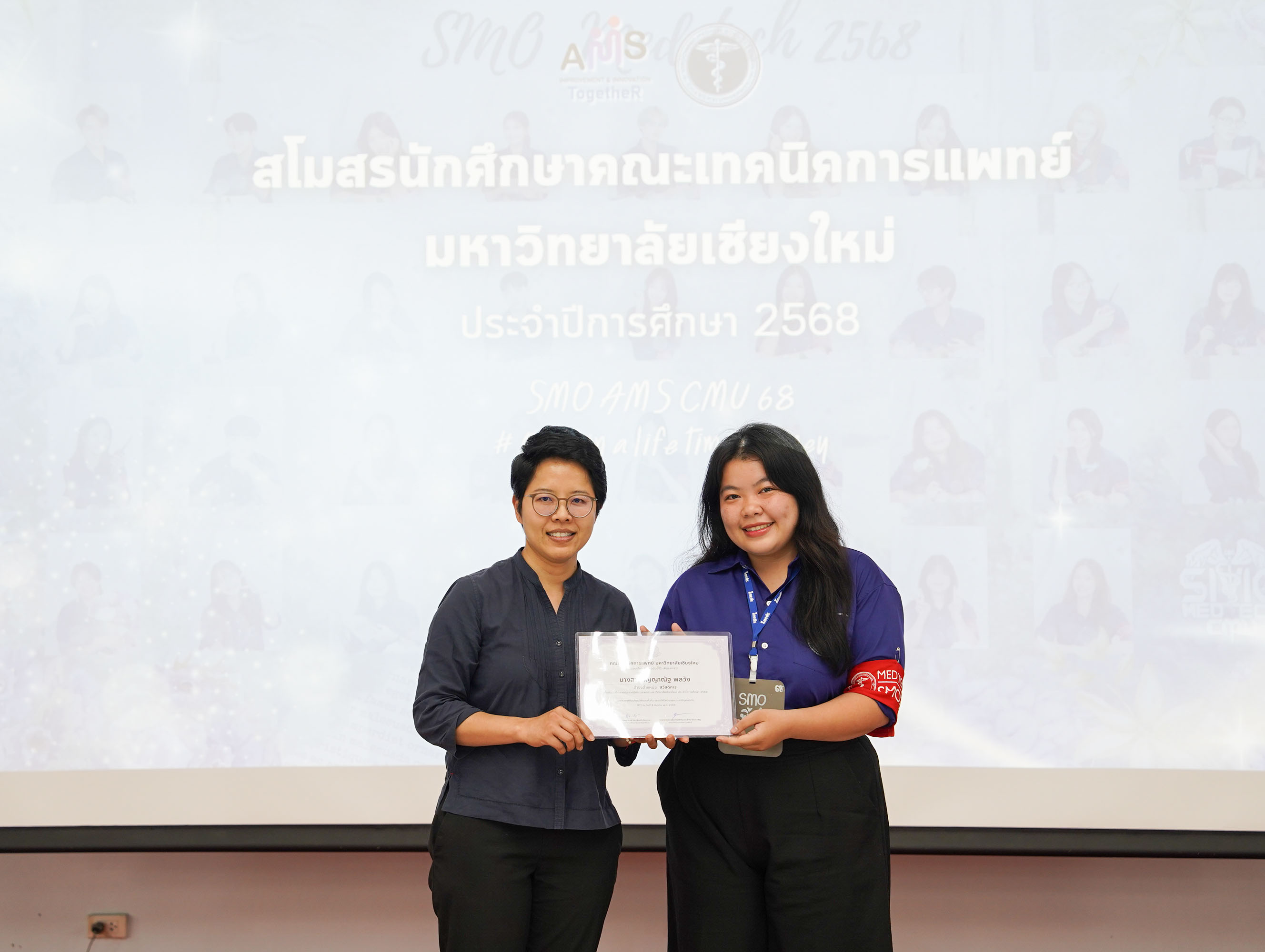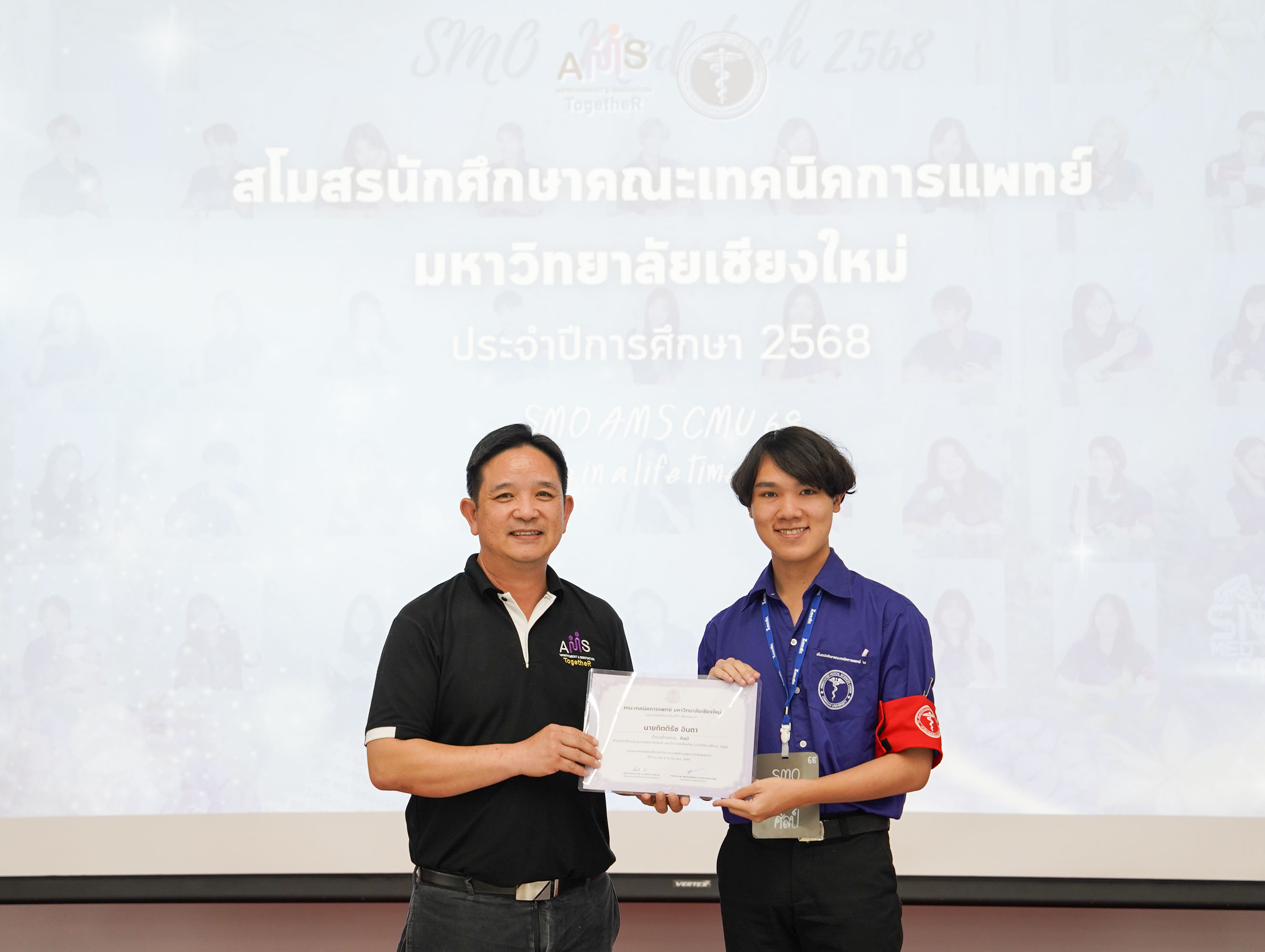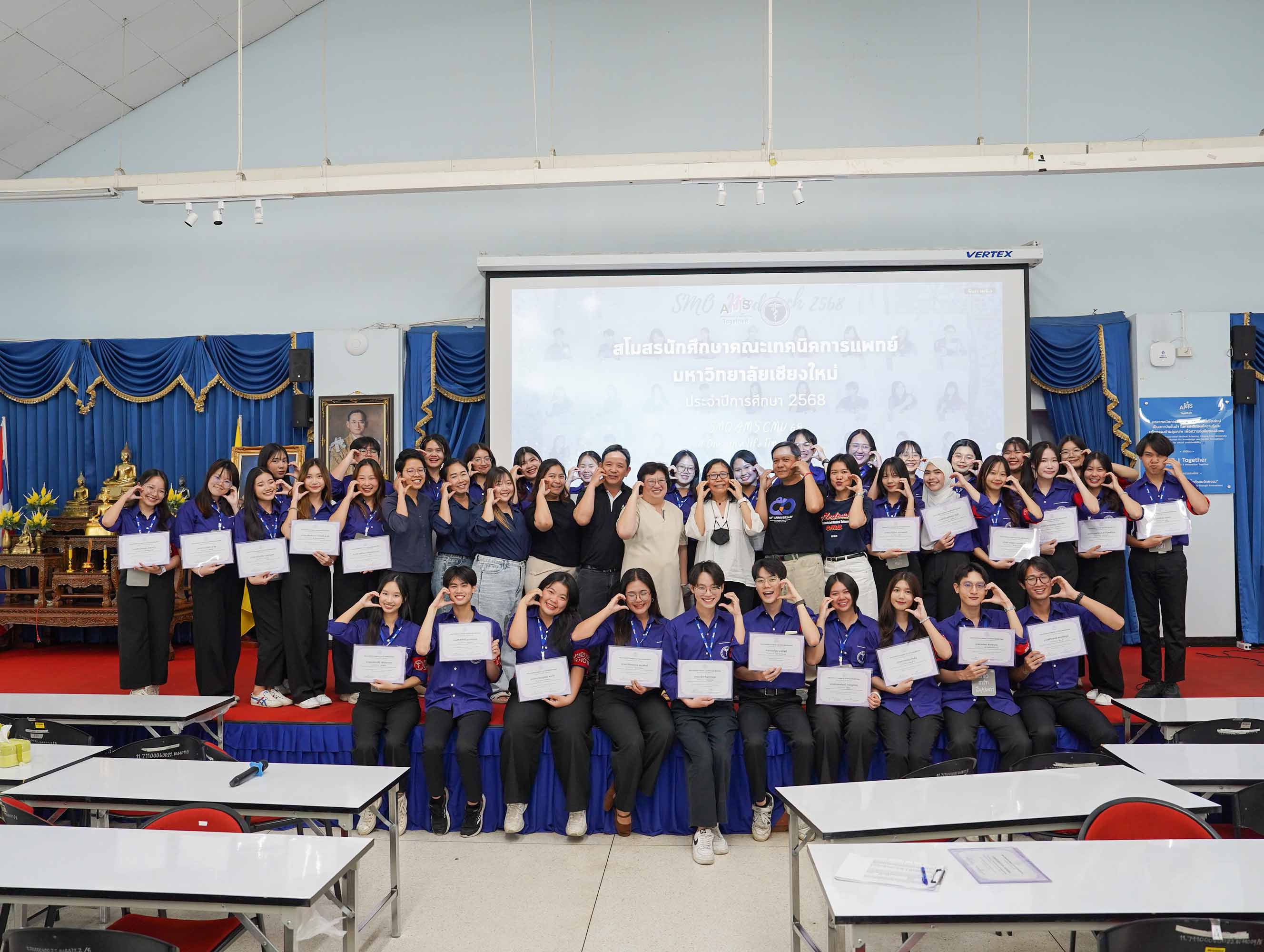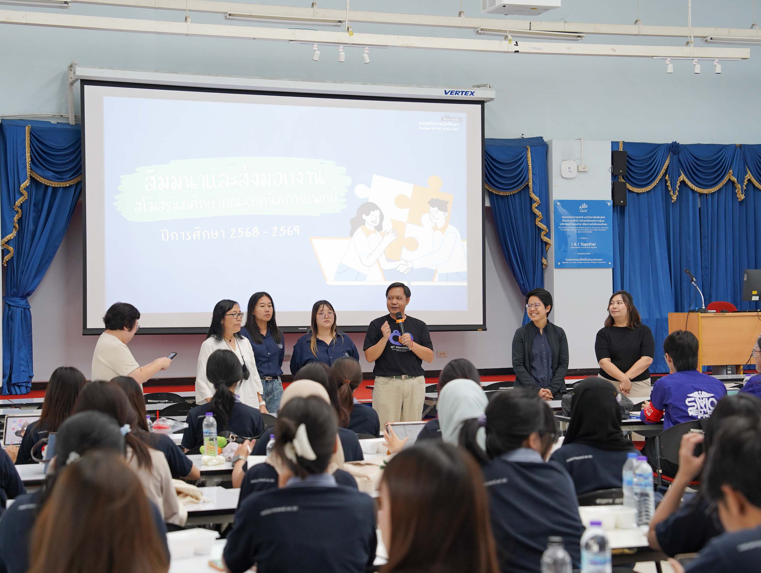 หน่วยกิจการนักศึกษา คณะเทคนิคการแพทย์ มหาวิทยาลัยเชียงใหม่ จัดโครงการ สัมมนาและส่งมอบงานสโมสรนักศึกษาคณะเทคนิคการแพทย์ ปีการศึกษา 2568 - 2569 โดยมี ผู้ช่วยศาสตราจารย์ ดร.เพื่อนใจ รัตตากร ผู้ช่วยคณบดี เป็นประธาน เพื่อแลกเปลี่ยนประสบการณ์ และวางแผนแนวทางการดำเนินงานจากคณะกรรมการสโมสรนักศึกษาชุดเก่า สู่คณะกรรมการสโมสรนักศึกษาชุดใหม่ เป็นการเตรียมความพร้อมในการดำเนินงานของคณะกรรมการสโมสรนักศึกษาชุดใหม่ให้เข้าใจในบทบาทหน้าที่ ปัญหา แนวทางแก้ไข ตลอดจนการวางแผนงานขั้นตอนการจัดกิจกรรม พร้อมยกระดับประสิทธิภาพการบริหารงานสโมสรนักศึกษาให้สามารถขับเคลื่อนกิจกรรมต่าง ๆ ได้อย่างมีคุณภาพและได้ผลลัพธ์ที่ดี