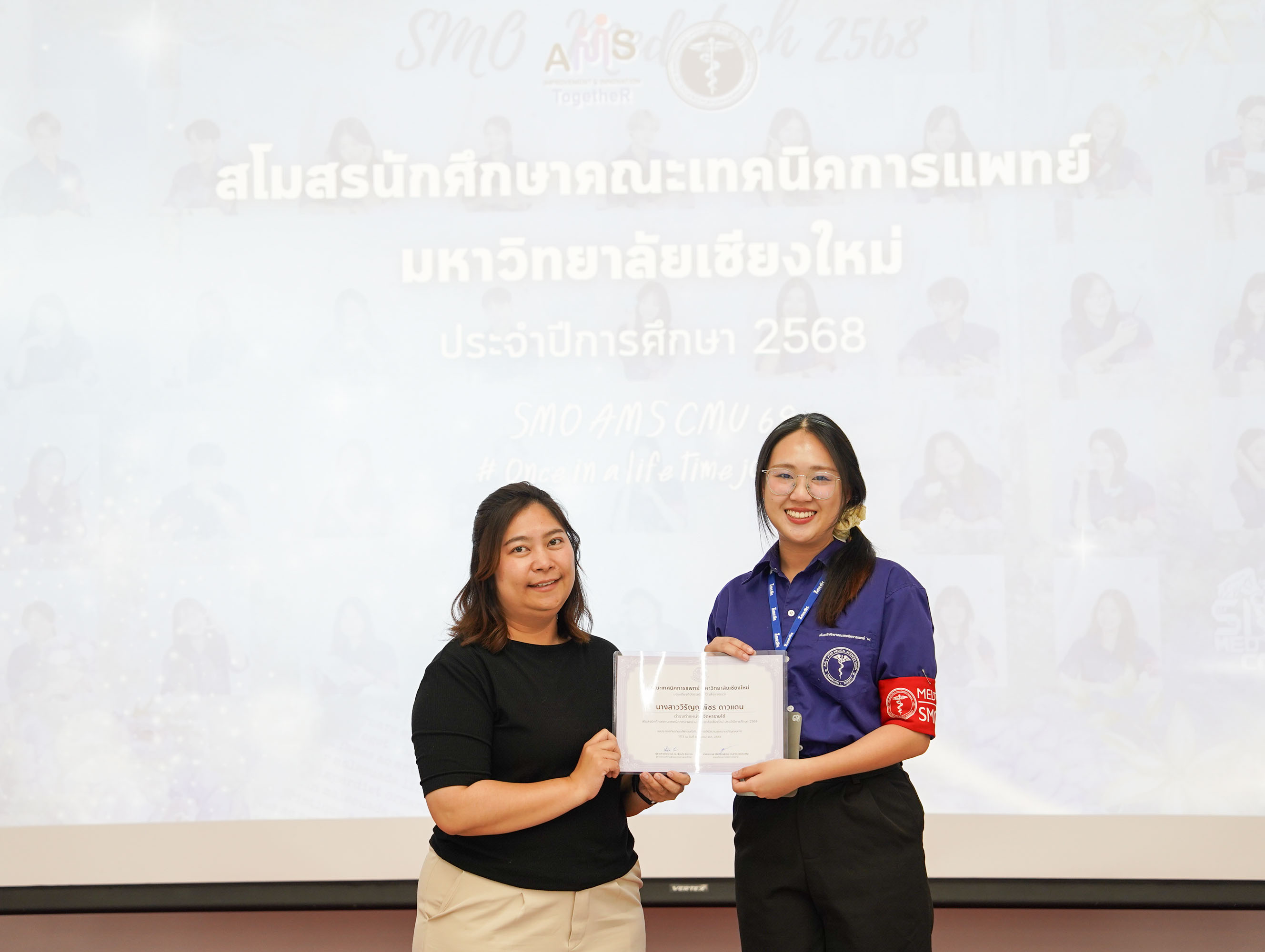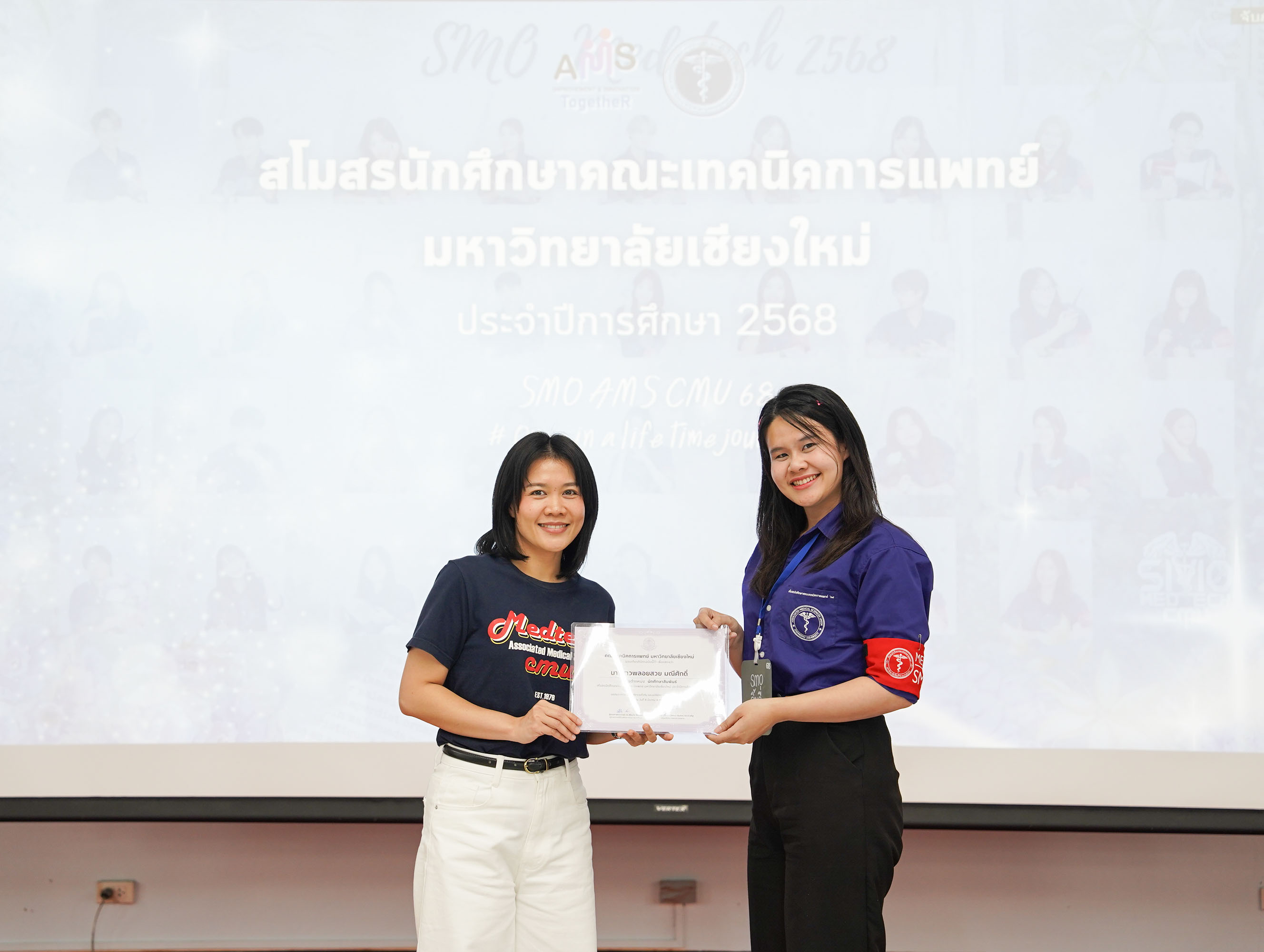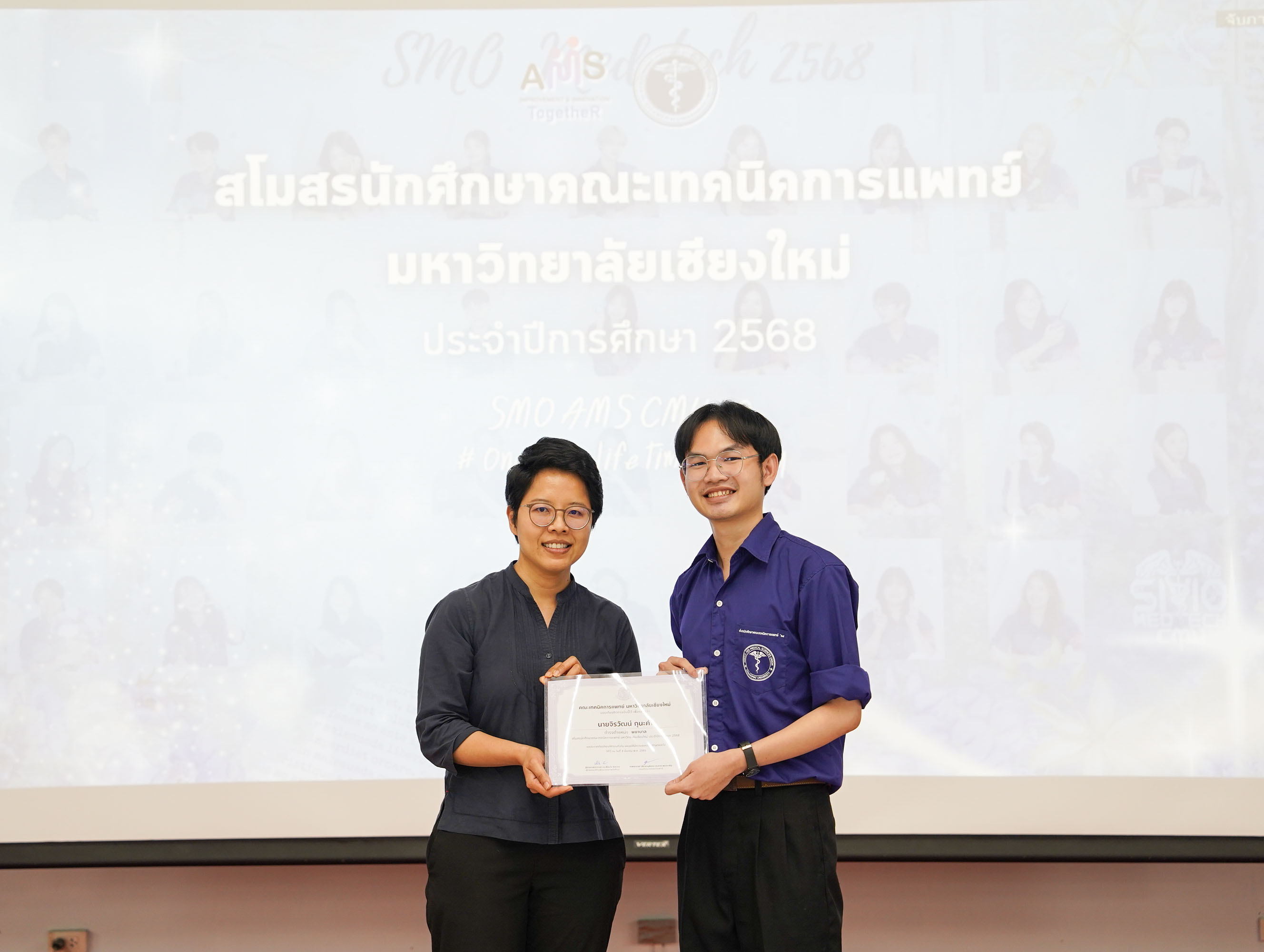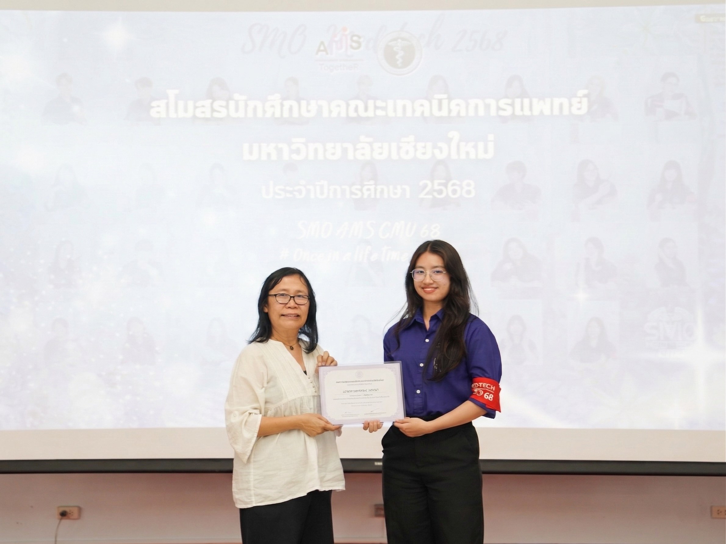 หน่วยกิจการนักศึกษา คณะเทคนิคการแพทย์ มหาวิทยาลัยเชียงใหม่ จัดโครงการ สัมมนาและส่งมอบงานสโมสรนักศึกษาคณะเทคนิคการแพทย์ ปีการศึกษา 2568 - 2569 โดยมี ผู้ช่วยศาสตราจารย์ ดร.เพื่อนใจ รัตตากร ผู้ช่วยคณบดี เป็นประธาน เพื่อแลกเปลี่ยนประสบการณ์ และวางแผนแนวทางการดำเนินงานจากคณะกรรมการสโมสรนักศึกษาชุดเก่า สู่คณะกรรมการสโมสรนักศึกษาชุดใหม่ เป็นการเตรียมความพร้อมในการดำเนินงานของคณะกรรมการสโมสรนักศึกษาชุดใหม่ให้เข้าใจในบทบาทหน้าที่ ปัญหา แนวทางแก้ไข ตลอดจนการวางแผนงานขั้นตอนการจัดกิจกรรม พร้อมยกระดับประสิทธิภาพการบริหารงานสโมสรนักศึกษาให้สามารถขับเคลื่อนกิจกรรมต่าง ๆ ได้อย่างมีคุณภาพและได้ผลลัพธ์ที่ดี