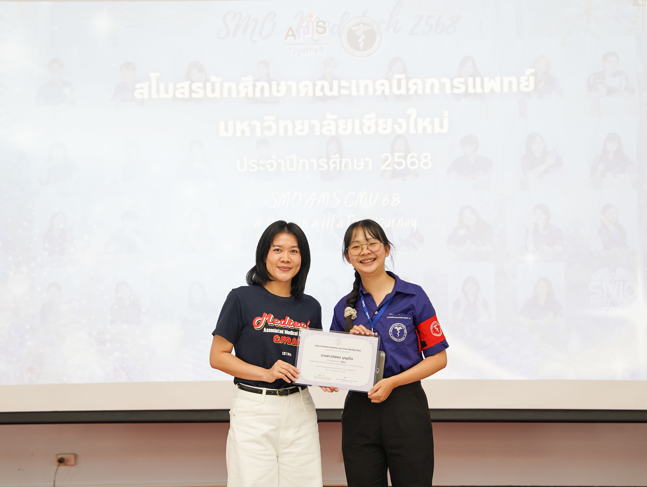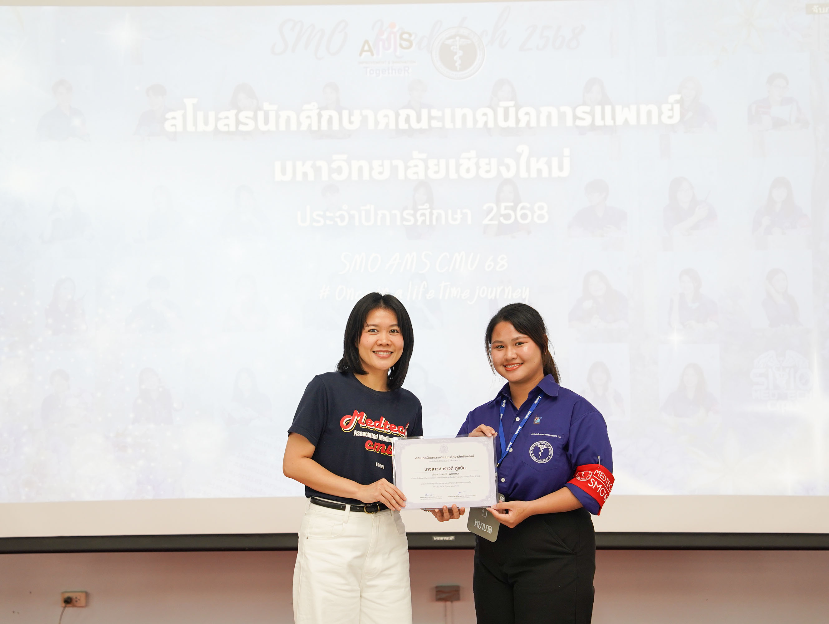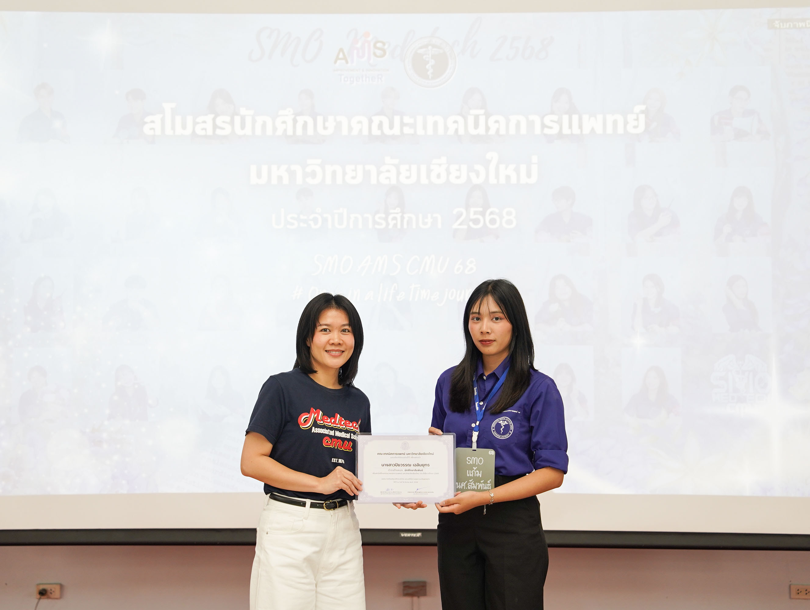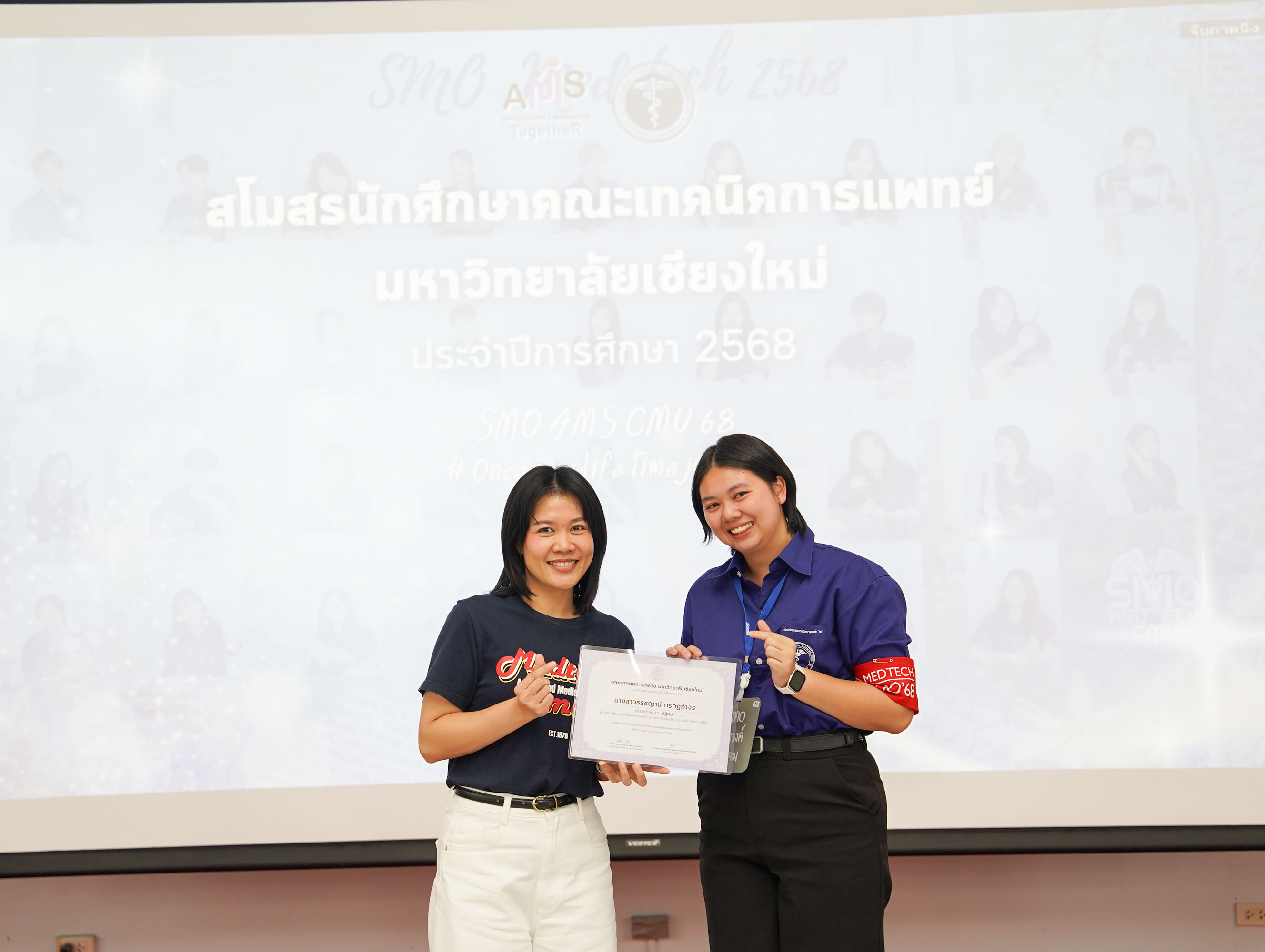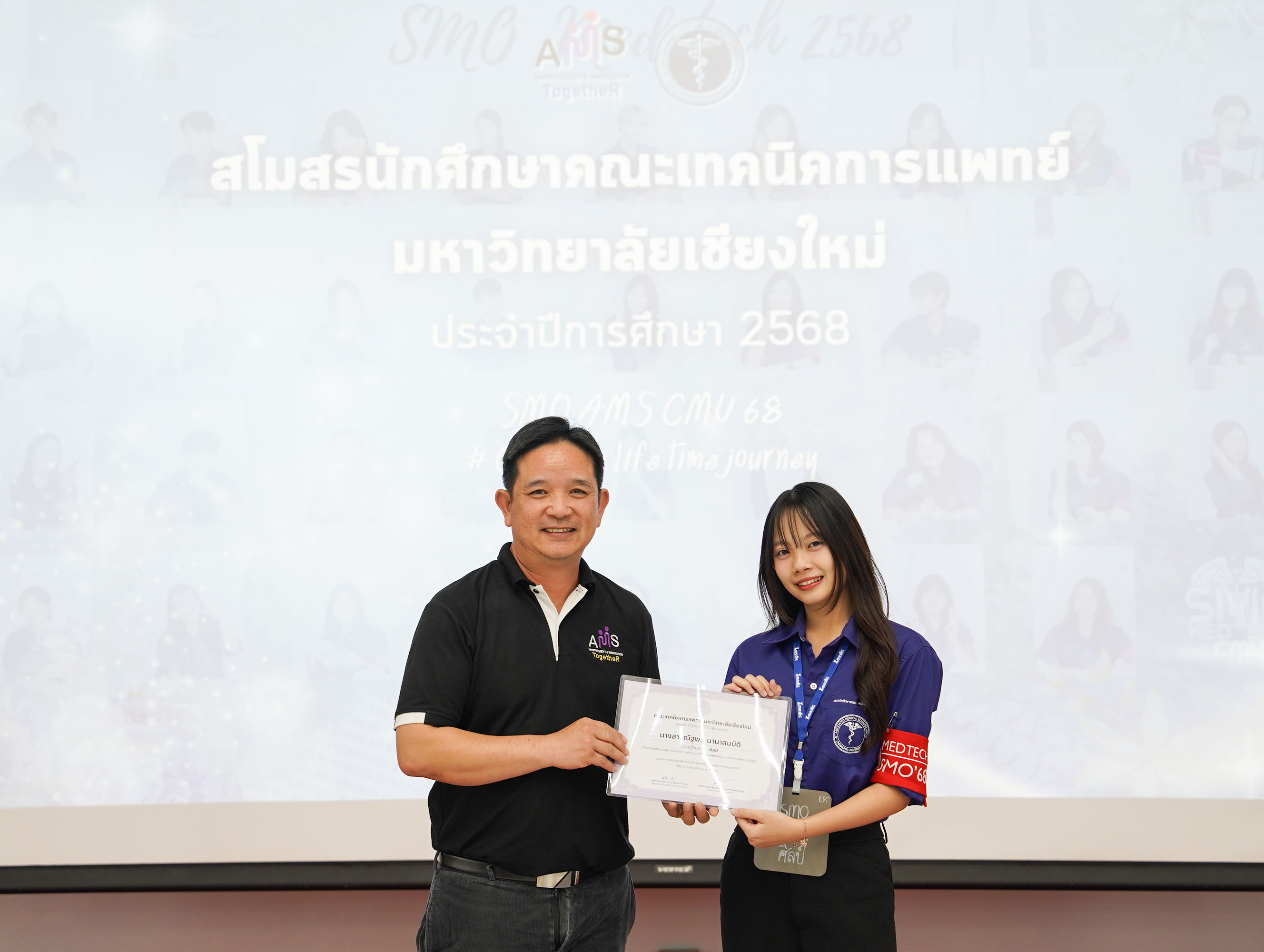 หน่วยกิจการนักศึกษา คณะเทคนิคการแพทย์ มหาวิทยาลัยเชียงใหม่ จัดโครงการ สัมมนาและส่งมอบงานสโมสรนักศึกษาคณะเทคนิคการแพทย์ ปีการศึกษา 2568 - 2569 โดยมี ผู้ช่วยศาสตราจารย์ ดร.เพื่อนใจ รัตตากร ผู้ช่วยคณบดี เป็นประธาน เพื่อแลกเปลี่ยนประสบการณ์ และวางแผนแนวทางการดำเนินงานจากคณะกรรมการสโมสรนักศึกษาชุดเก่า สู่คณะกรรมการสโมสรนักศึกษาชุดใหม่ เป็นการเตรียมความพร้อมในการดำเนินงานของคณะกรรมการสโมสรนักศึกษาชุดใหม่ให้เข้าใจในบทบาทหน้าที่ ปัญหา แนวทางแก้ไข ตลอดจนการวางแผนงานขั้นตอนการจัดกิจกรรม พร้อมยกระดับประสิทธิภาพการบริหารงานสโมสรนักศึกษาให้สามารถขับเคลื่อนกิจกรรมต่าง ๆ ได้อย่างมีคุณภาพและได้ผลลัพธ์ที่ดี