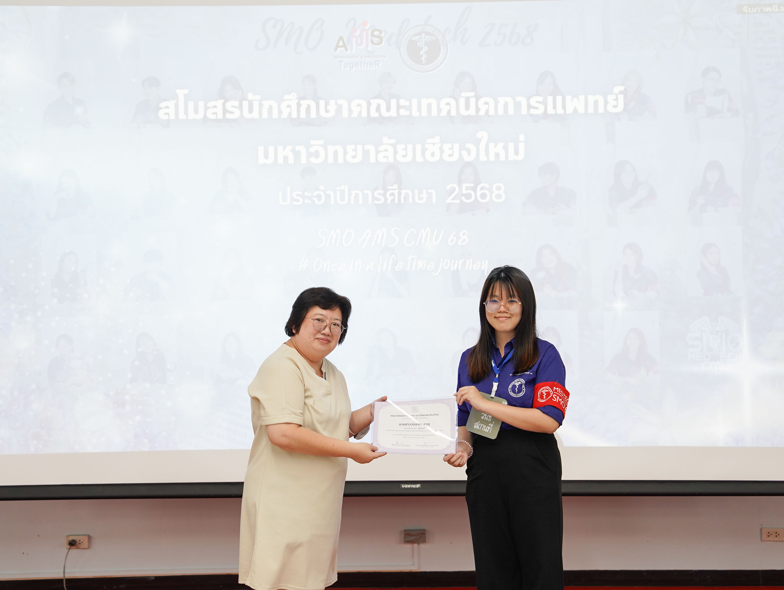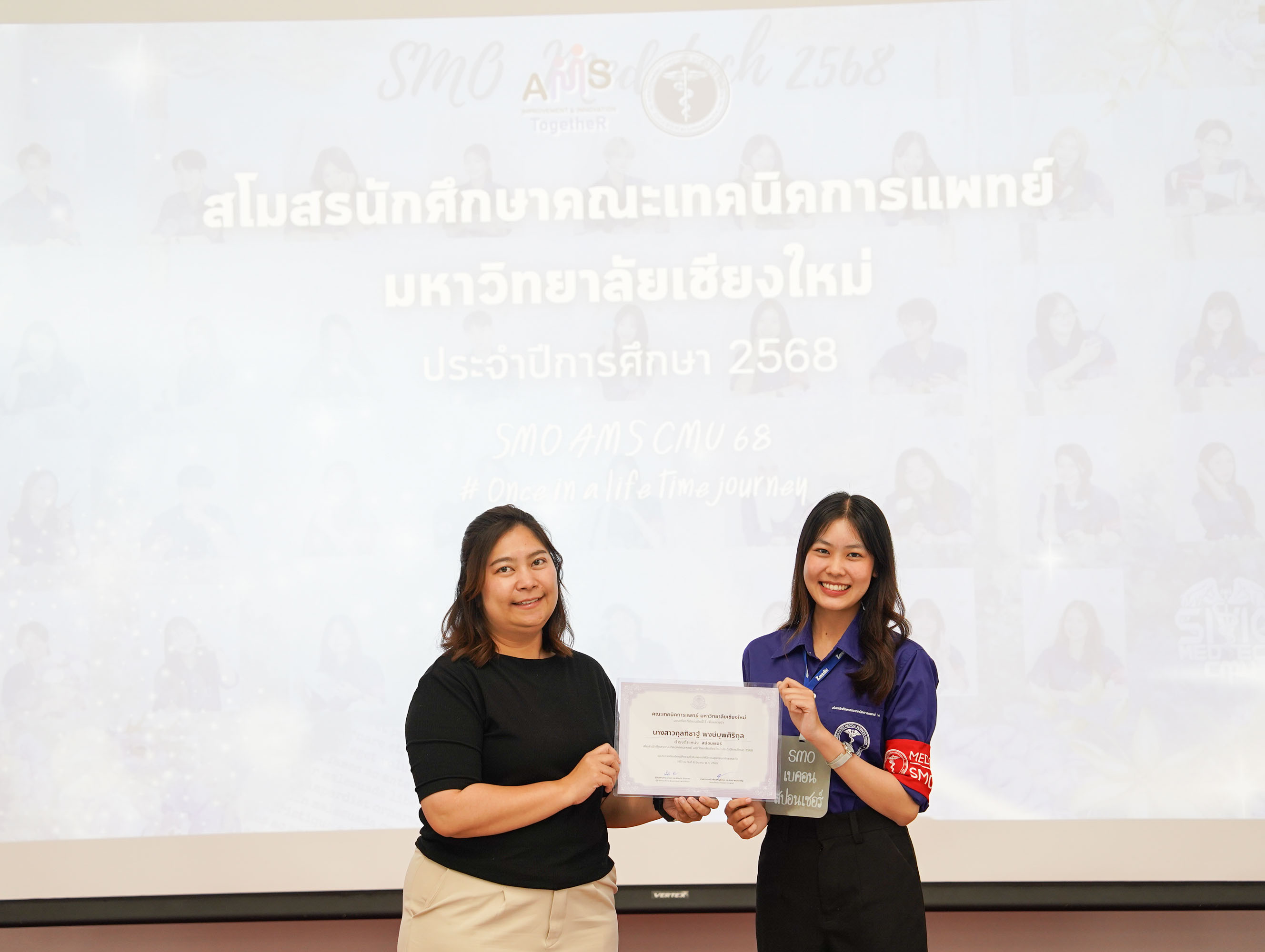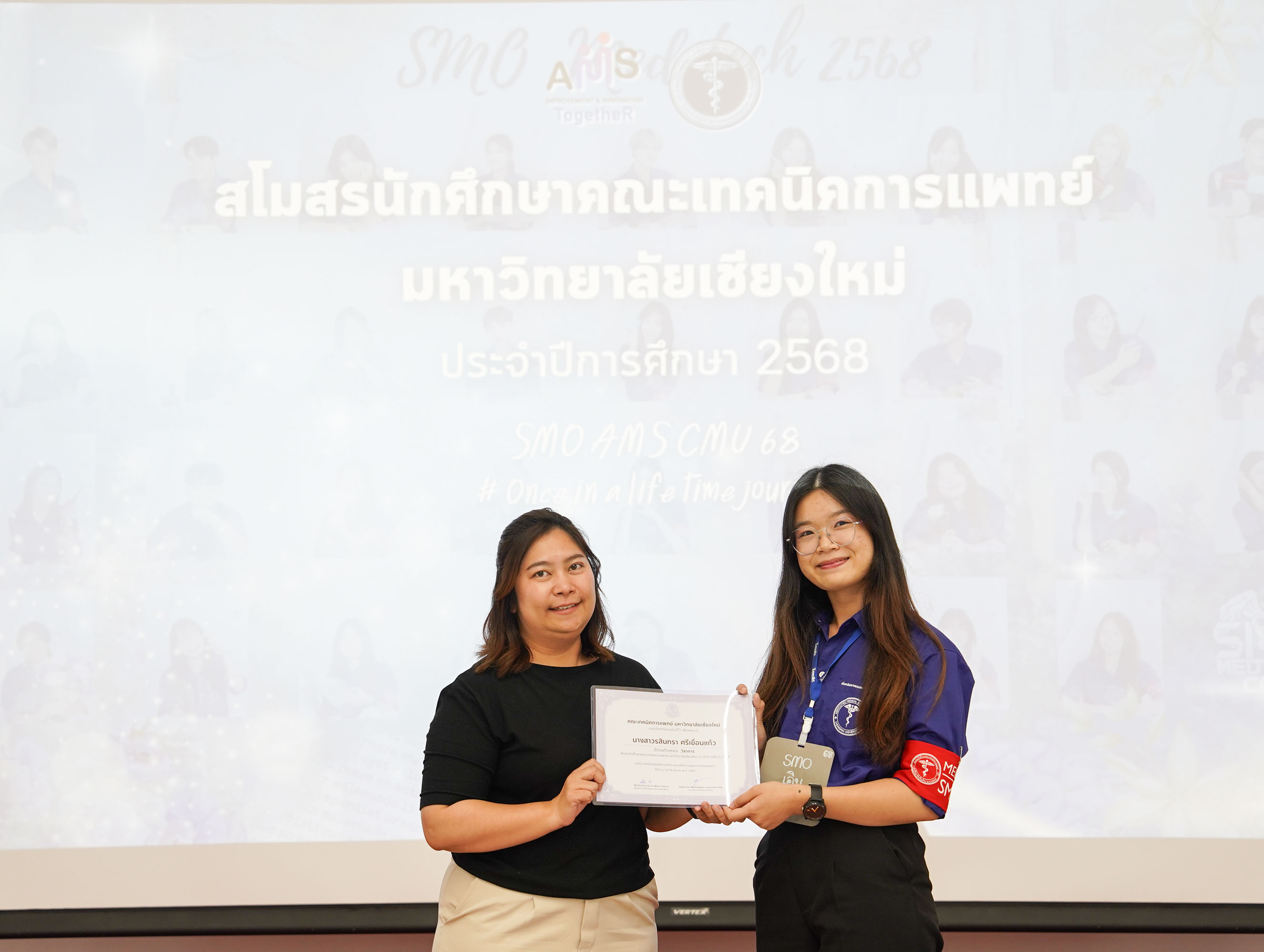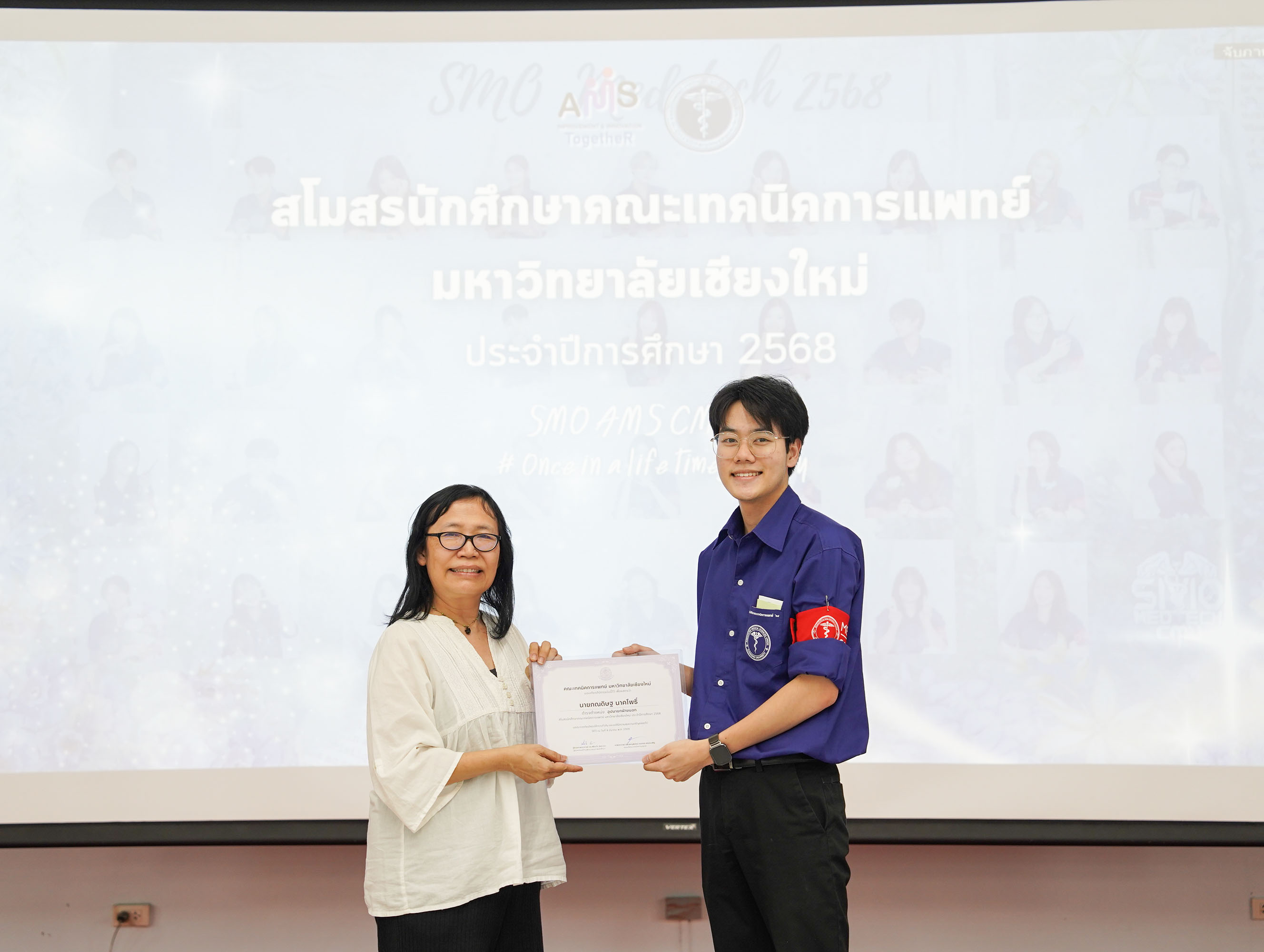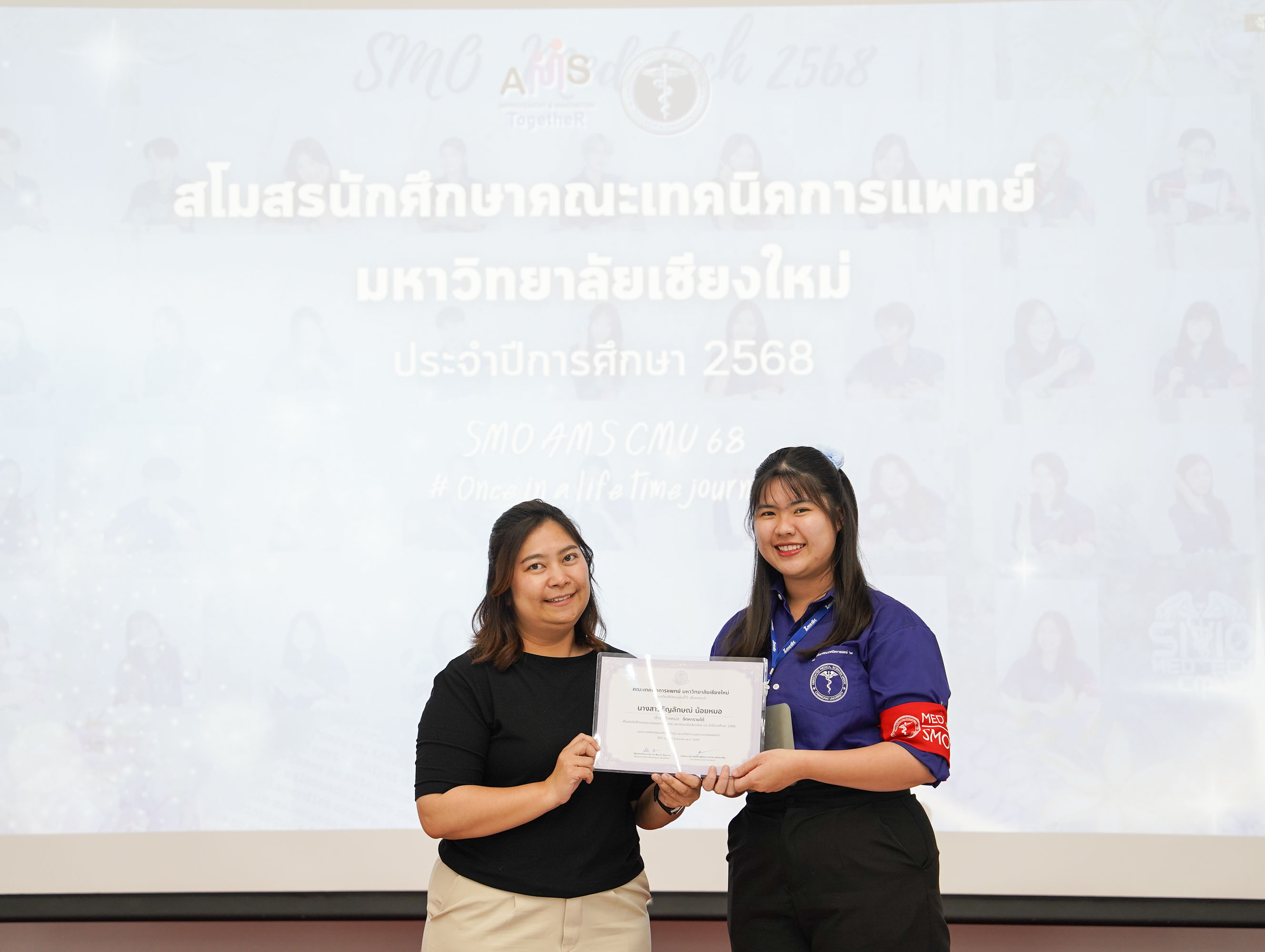 หน่วยกิจการนักศึกษา คณะเทคนิคการแพทย์ มหาวิทยาลัยเชียงใหม่ จัดโครงการ สัมมนาและส่งมอบงานสโมสรนักศึกษาคณะเทคนิคการแพทย์ ปีการศึกษา 2568 - 2569 โดยมี ผู้ช่วยศาสตราจารย์ ดร.เพื่อนใจ รัตตากร ผู้ช่วยคณบดี เป็นประธาน เพื่อแลกเปลี่ยนประสบการณ์ และวางแผนแนวทางการดำเนินงานจากคณะกรรมการสโมสรนักศึกษาชุดเก่า สู่คณะกรรมการสโมสรนักศึกษาชุดใหม่ เป็นการเตรียมความพร้อมในการดำเนินงานของคณะกรรมการสโมสรนักศึกษาชุดใหม่ให้เข้าใจในบทบาทหน้าที่ ปัญหา แนวทางแก้ไข ตลอดจนการวางแผนงานขั้นตอนการจัดกิจกรรม พร้อมยกระดับประสิทธิภาพการบริหารงานสโมสรนักศึกษาให้สามารถขับเคลื่อนกิจกรรมต่าง ๆ ได้อย่างมีคุณภาพและได้ผลลัพธ์ที่ดี