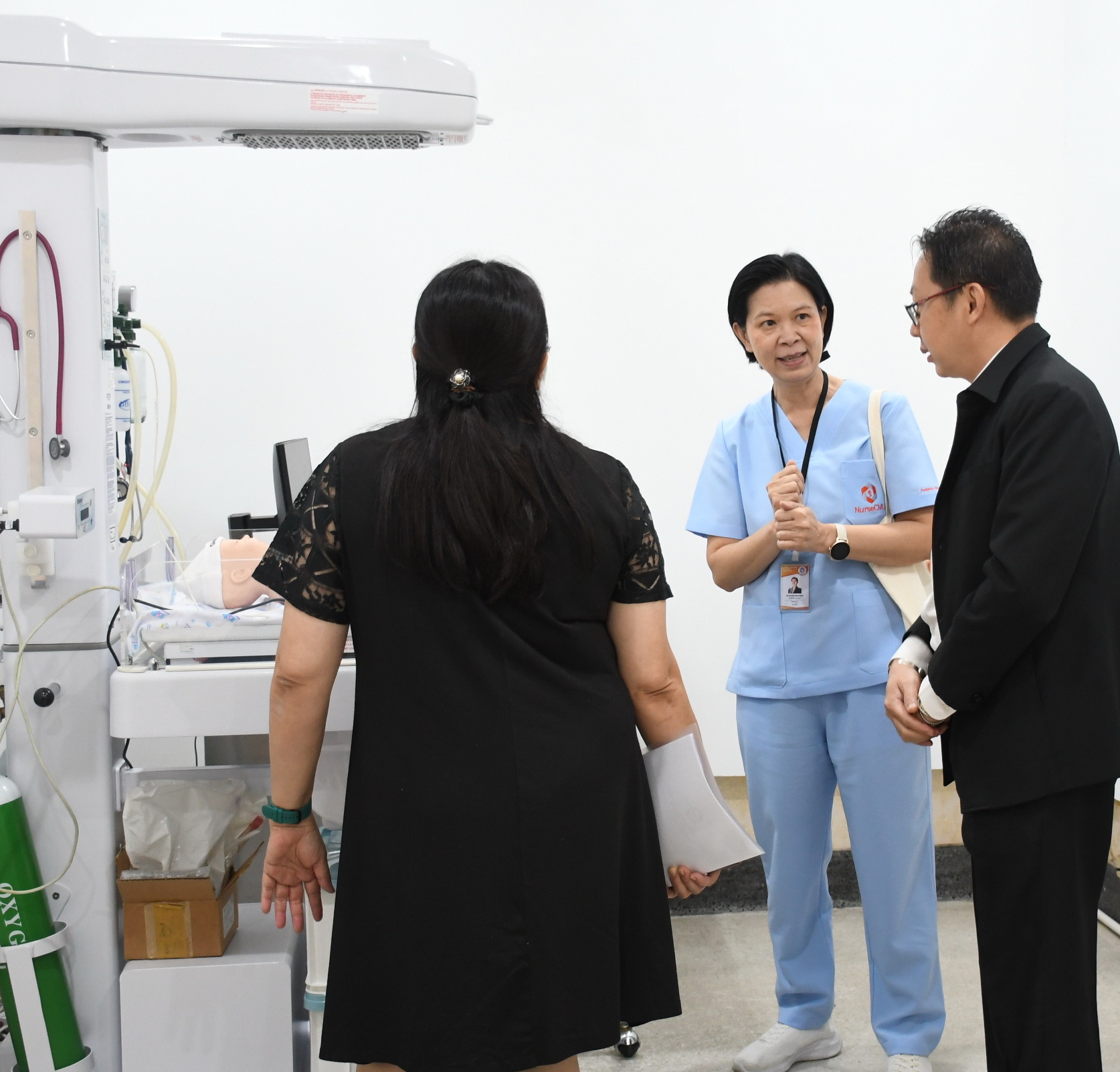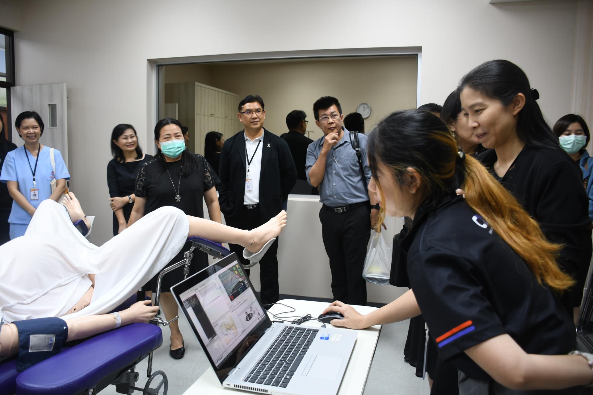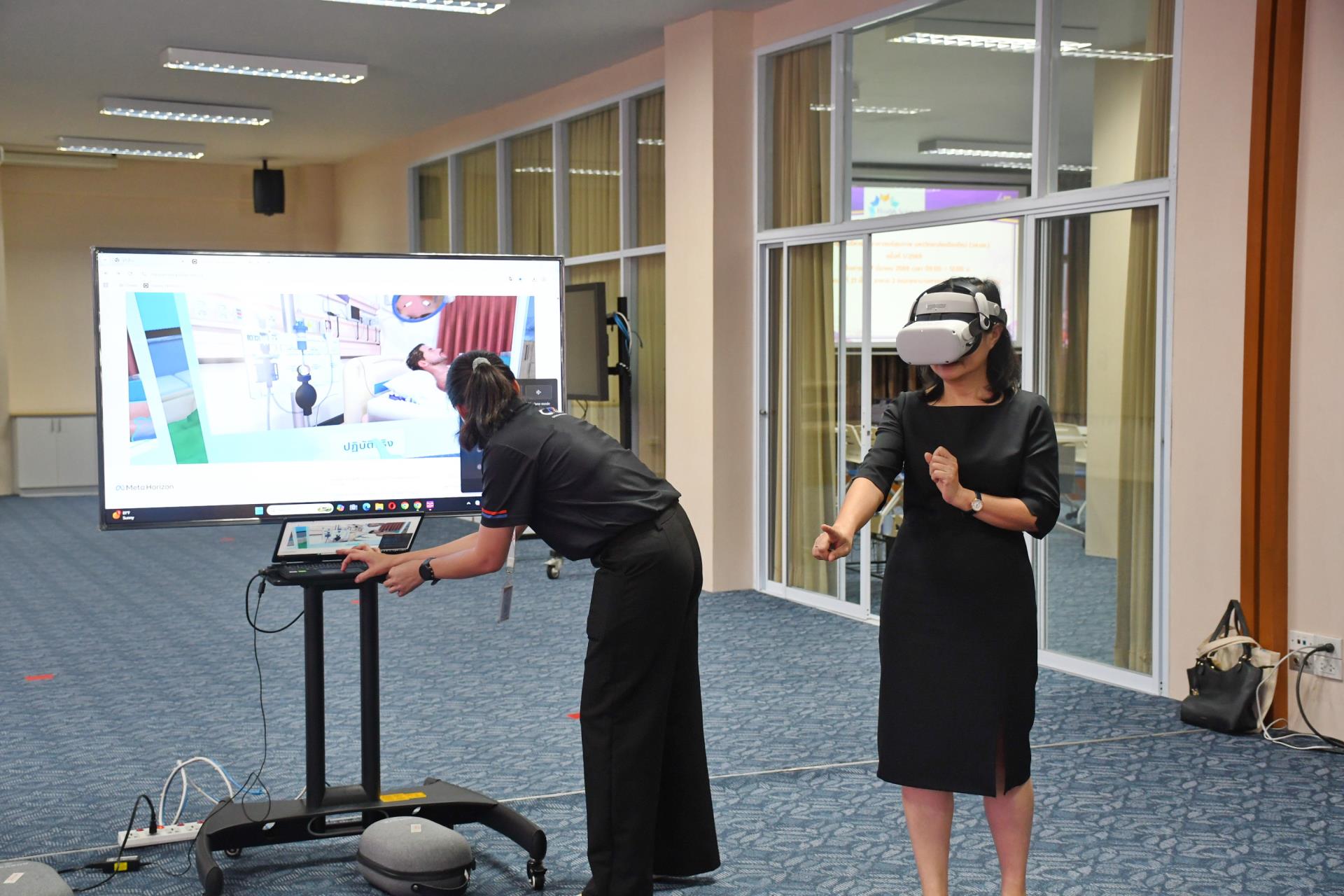 ในโอกาสเดียวกัน คณะผู้บริหารยังได้ร่วมเข้าชม การสาธิตและทดลองใช้อุปกรณ์เทคโนโลยี AR VR Metaverse เพื่อเสริมทักษะและเพิ่มประสิทธิภาพในการเรียนรู้ภาคปฏิบัติทางการพยาบาลในยุคดิจิทัล รวมทั้งเยี่ยมชมหน่วยเรียนรู้ทางการพยาบาล และพิพิธภัณฑ์ประวัติคณะพยาบาลศาสตร์ มหาวิทยาลัยเชียงใหม่ โดยมี ผู้ช่วยศาสตราจารย์ ดร. สุภารัตน์ วังศรีคูณ คณบดี คณะพยาบาลศาสตร์ มหาวิทยาลัยเชียงใหม่ ให้การต้อนรับและนำชม
