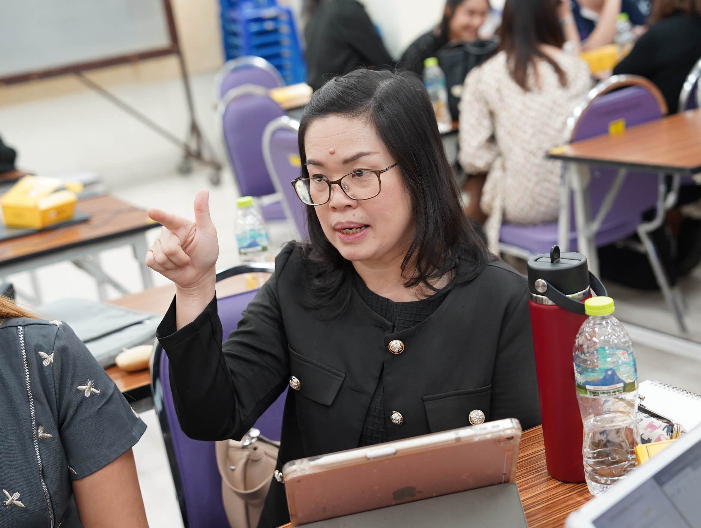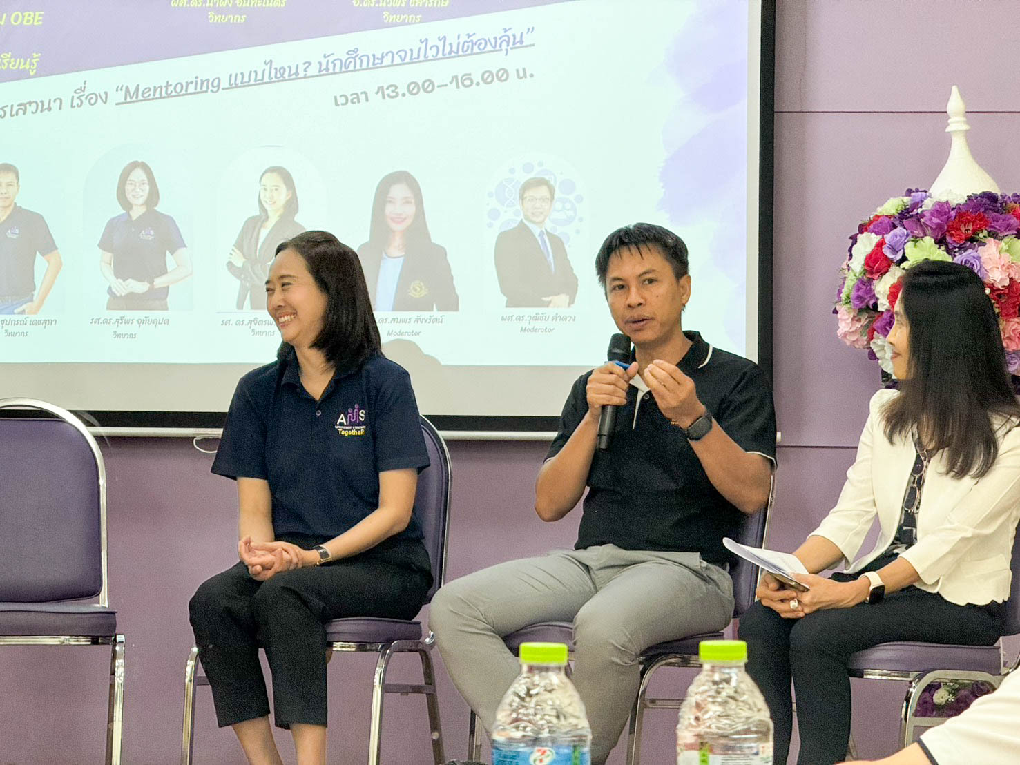 ในโอกาสเดียวกันนี้ ยังมีเสวนาและแลกเปลี่ยนประสบการณ์: Process and Mentoring System for Timely Graduation โดย ศาสตราจารย์ (เชี่ยวชาญพิเศษ) ดร.สาคร พรประเสริฐ คณบดี คณะเทคนิคการแพทย์ มหาวิทยาลัยเชียงใหม่ ผู้ช่วยศาสตราจารย์ ดร.ณฐุปกรณ์ เดชสุภา หัวหน้าภาควิชารังสีเทคนิค รองศาสตราจารย์ ดร.สุรีพร อุทัยคุปต์ หัวหน้าภาควิชากายภาพบำบัด รองศาสตราจารย์ ดร.สุจิตรพร เลอศิลป์ อาจารย์ประจำภาควิชากิจกรรมบำบัด เพื่อแลกเปลี่ยนเรียนรู้ถึงบทบาทของอาจารย์ที่ปรึกษาปริญญานิพนธ์ในการดูแล ให้คำปรึกษาและติดตามการทำวิทยานิพนธ์ของนักศึกษาเพื่อให้สำเร็จการศึกษาตามระยะเวลาของหลักสูตร