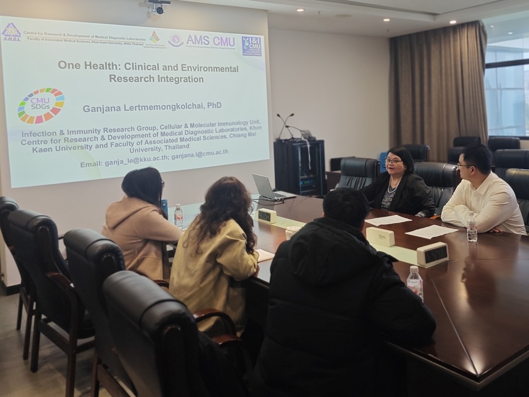 กลุ่มวิจัยโรคติดเชื้อและภูมิคุ้มกัน คณะเทคนิคการแพทย์ มหาวิทยาลัยเชียงใหม่ นําโดย ดร.กาญจนา เลิศมีมงคลชัย เข้าเยี่ยมติดตามการสร้างความร่วมมือและประชุมแลกเปลี่ยนทางวิชาการ พร้อมนำเสนอภาพรวมผลวิจัยของกลุ่ม ภายใต้แนวคิดสุขภาพหนึ่งเดียว (One Health) รวมถึงความคืบหน้า การแลกเปลี่ยนนักวิจัยและนักศึกษา ตลอดจนการจัดทําโครงการเสนอแหล่งทุนสนับสนุนกิจกรรม ร่วมกับสถาบันวิจัยระดับแนวหน้าทั้ง 3 แห่ง ณ สาธารณรัฐประชาชนจีน ได้แก่