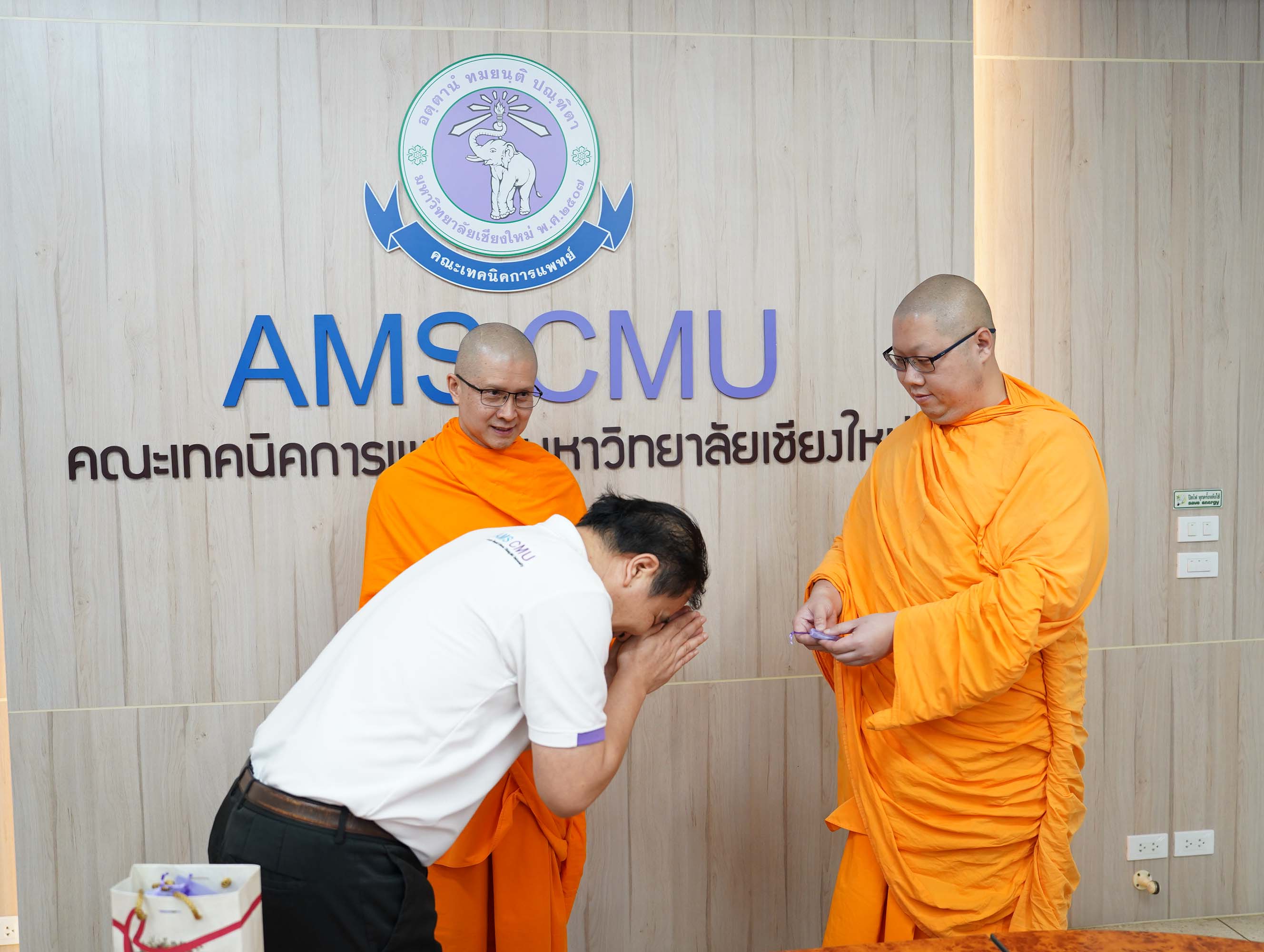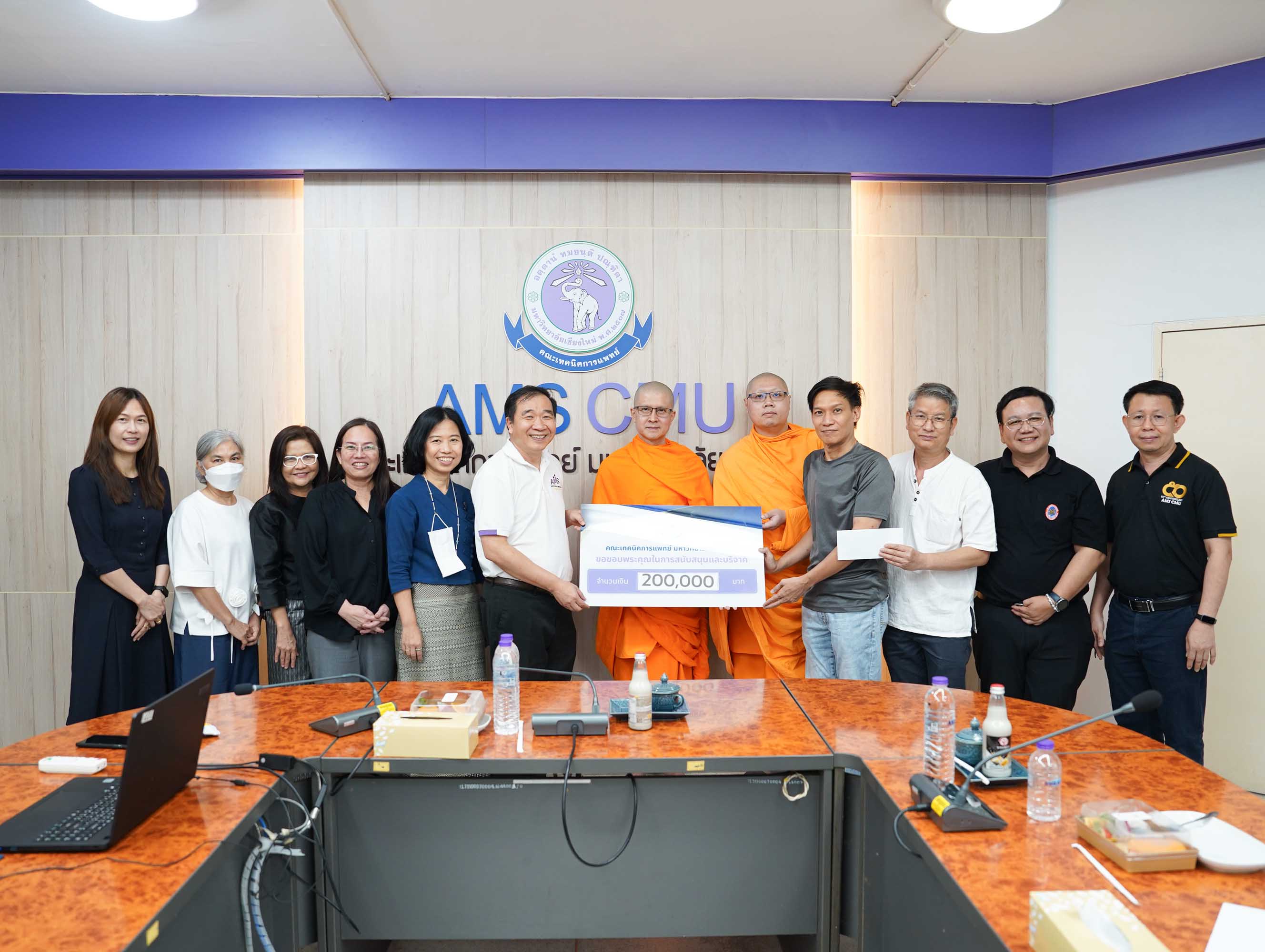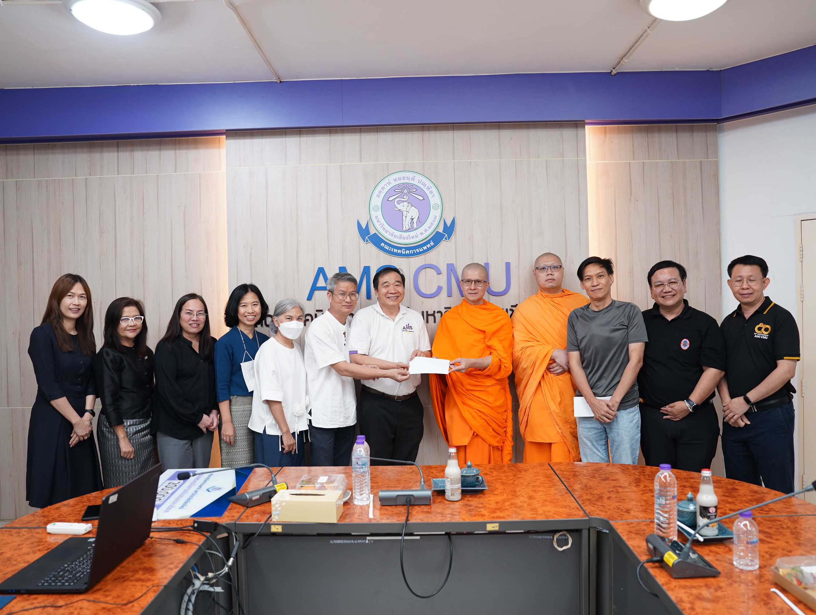 พระอาจารย์ ดร.ณรงค์ชัย ฐานชโย และศิษย์เก่าคณะเทคนิคการแพทย์ มหาวิทยาลัยเชียงใหม่ รหัส 33 มอบเงินจำนวน 200,000 บาท เพื่อสมทบทุนโครงการปรับปรุงห้องประชุมและห้องบรรยายของคณะเทคนิคการแพทย์ มหาวิทยาลัยเชียงใหม่ พร้อมกันนี้ คุณสว่าง ไชยโส ได้ร่วมมอบเงินสมทบทุนเพิ่มเติมอีกจำนวน 5,000 บาท รวมเป็นเงินทั้งสิ้น 205,000 บาท โดยมี ศาสตราจารย์ (เชี่ยวชาญพิเศษ) ดร.สาคร พรประเสริฐ คณบดี ผู้ช่วยศาสตราจารย์ ดร.เพ็ญนภา คลังสินศิริกุล รองคณบดี พร้อมด้วยผู้บริหาร คณะเทคนิคการแพทย์ มหาวิทยาลัยเชียงใหม่ เป็นผู้รับมอบ ณ ห้องประชุมชั้น 1 อาคาร 2 คณะเทคนิคการแพทย์ มหาวิทยาลัยเชียงใหม่ เมื่อวันศุกร์ที่ 3 เมษายน 2569