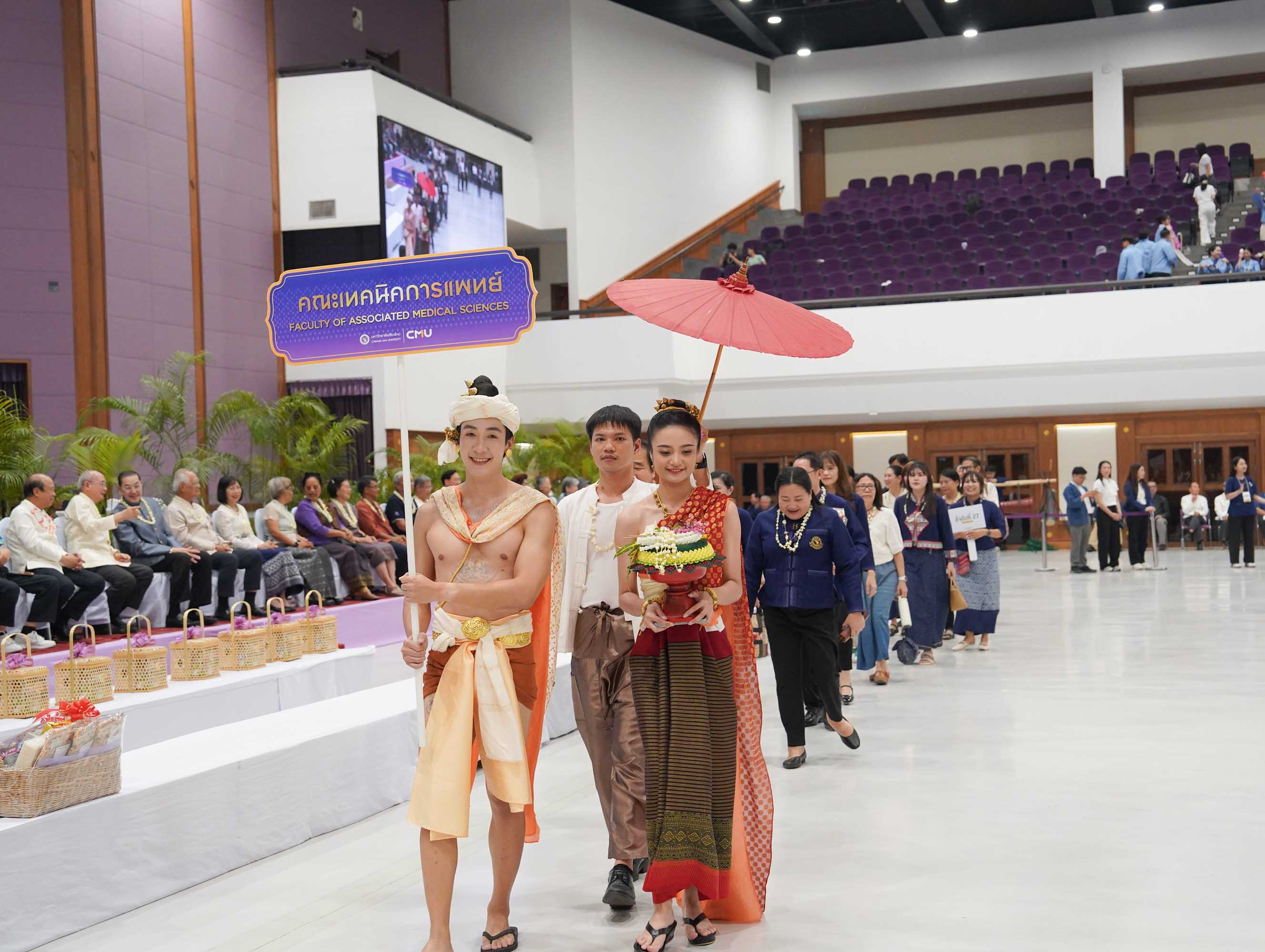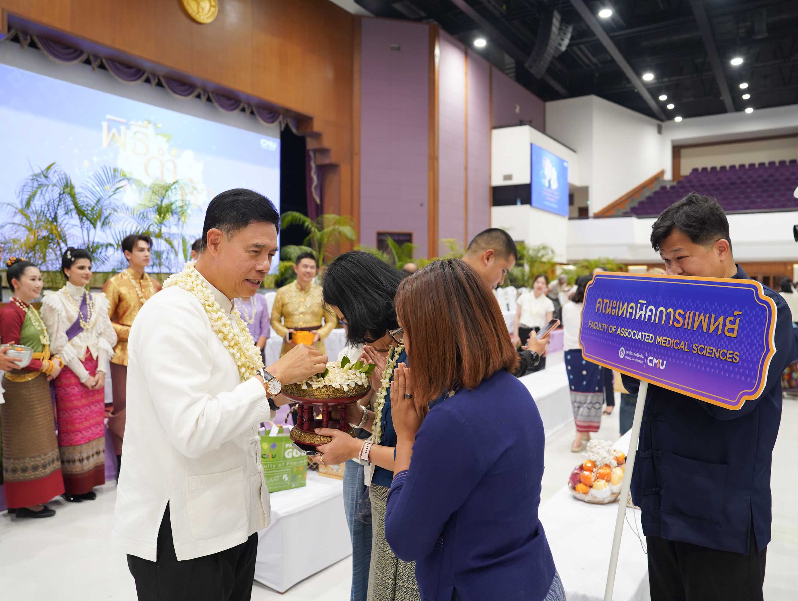 คณะเทคนิคการแพทย์ มหาวิทยาลัยเชียงใหม่ นำโดย ศาสตราจารย์ (เชี่ยวชาญพิเศษ) ดร.สาคร พรประเสริฐ คณบดี พร้อมด้วยคณะผู้บริหารและบุคลากร เข้าร่วมพิธีดำหัวอดีตอธิการบดี อธิการบดี และอาจารย์อาวุโส เนื่องในประเพณีปีใหม่เมือง ประจำปี 2569 บรรยากาศภายในงานเต็มไปด้วยความอบอุ่นและความเคารพ โดยมีคณาจารย์ บุคลากร นักศึกษาปัจจุบัน และศิษย์เก่ามหาวิทยาลัยเชียงใหม่ เข้าร่วมอย่างคับคั่ง เพื่อร่วมกันอนุรักษ์และสืบสานวัฒนธรรม ขนบธรรมเนียมประเพณีล้านนาให้คงอยู่สืบไป ณ หอประชุมมหาวิทยาลัยเชียงใหม่ เมื่อวันศุกร์ที่ 24 เมษายน 2569