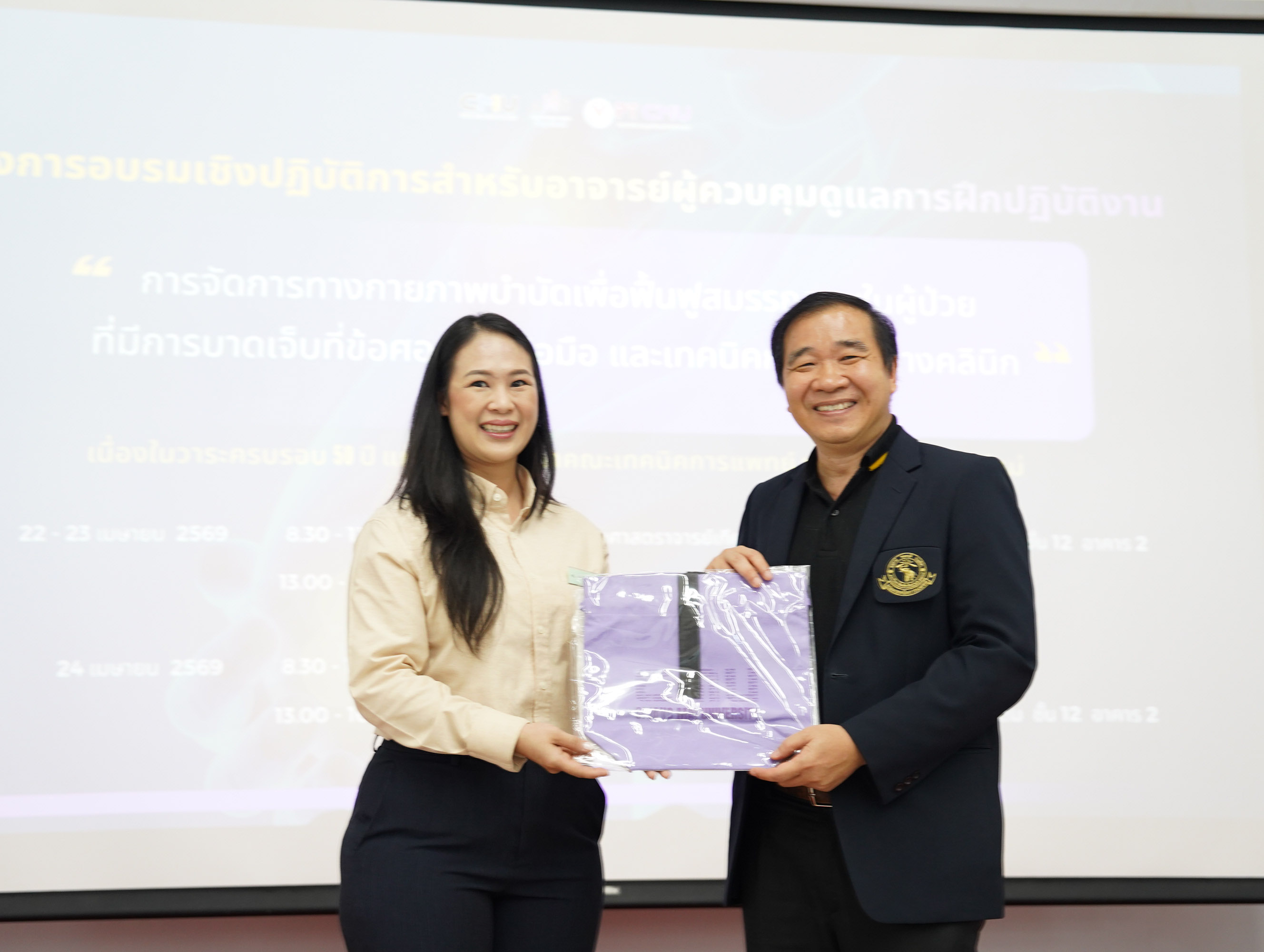 การอบรมครั้งนี้มีวัตถุประสงค์เพื่อเสริมสร้างความรู้และทักษะด้านการจัดการทางกายภาพบำบัดในการฟื้นฟูผู้ป่วยที่มีการบาดเจ็บบริเวณข้อศอกและข้อมือ ตลอดจนพัฒนาเทคนิคการสอนทางคลินิกให้แก่อาจารย์พิเศษผู้ควบคุมการฝึกปฏิบัติงาน และนักกายภาพบำบัดที่สนใจ ณ ห้องประชุมศาสตราจารย์เกียรติคุณ นายแพทย์ชัยโรจน์ แสงอุดม ชั้น 12 อาคาร 2 และห้องปฏิบัติการ ชั้น 4 ภาควิชากายภาพบำบัด คณะเทคนิคการแพทย์ มหาวิทยาลัยเชียงใหม่ ระหว่างวันที่ 22 – 24 เมษายน 2569